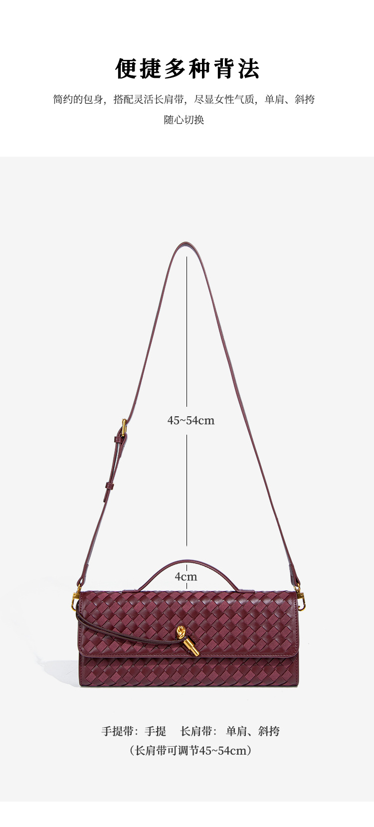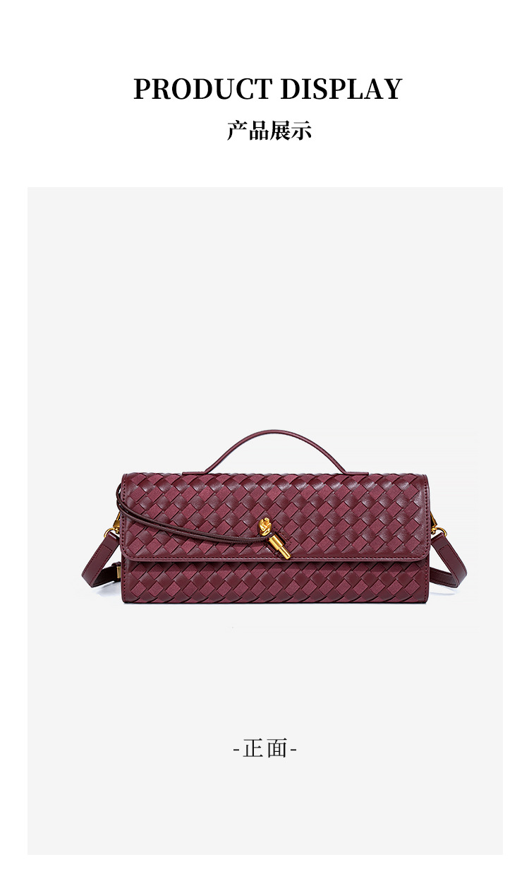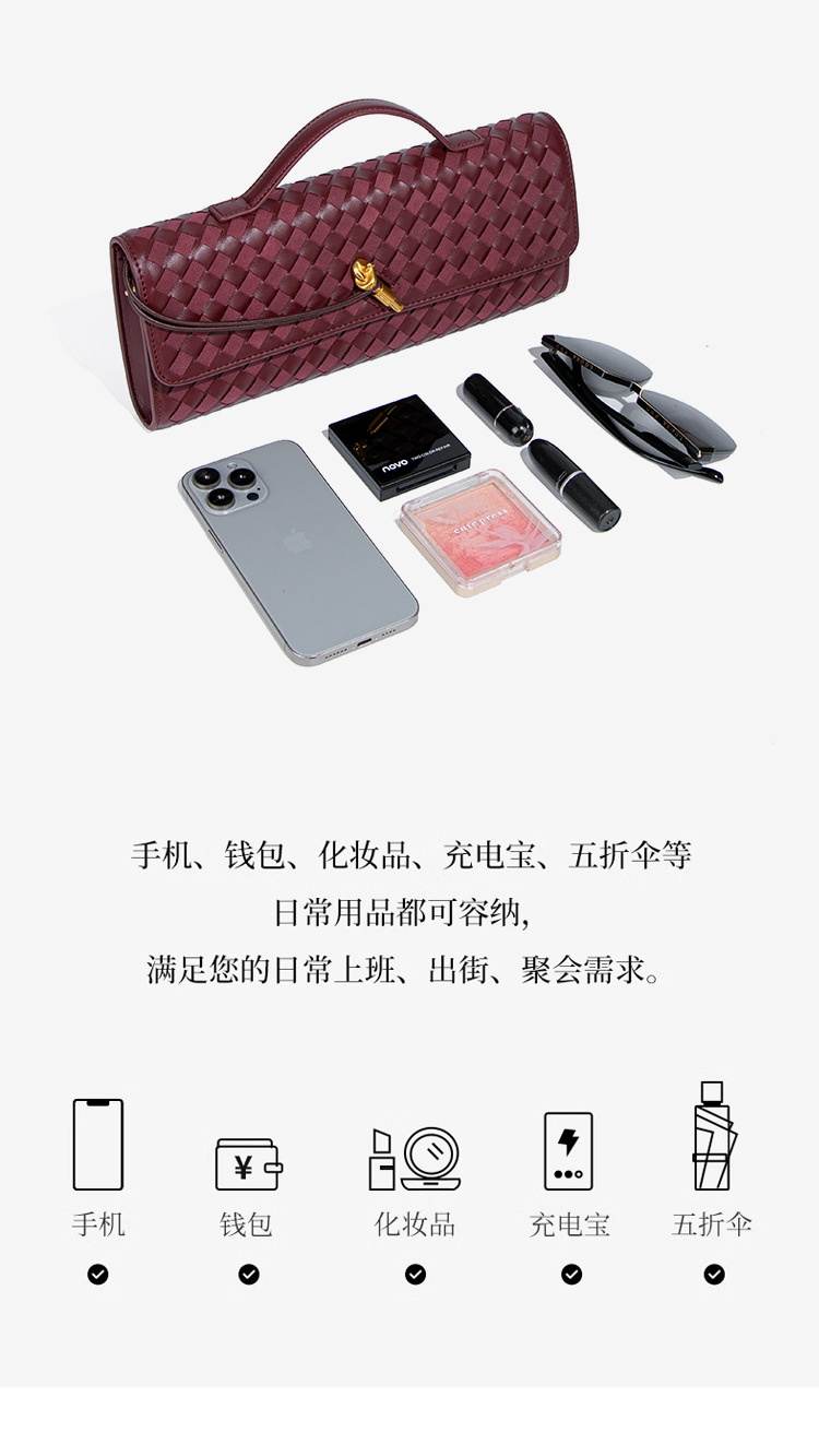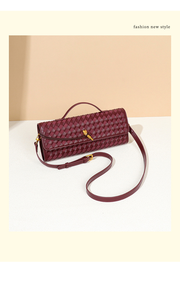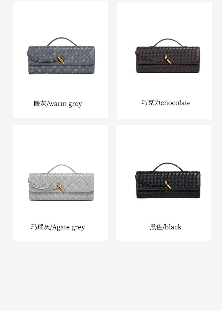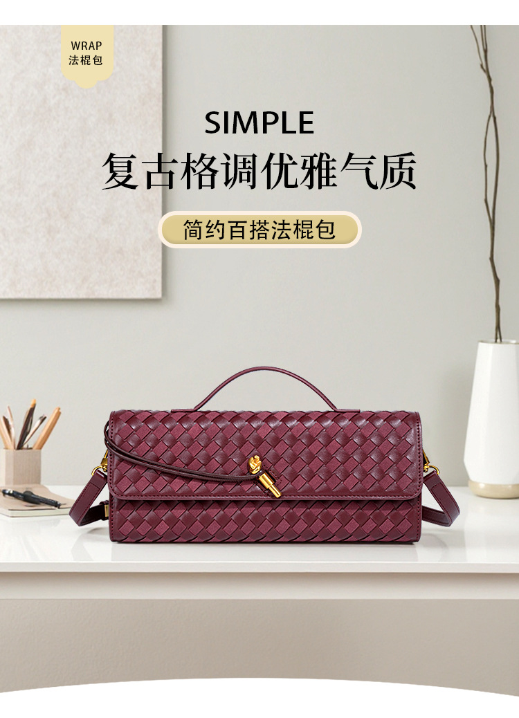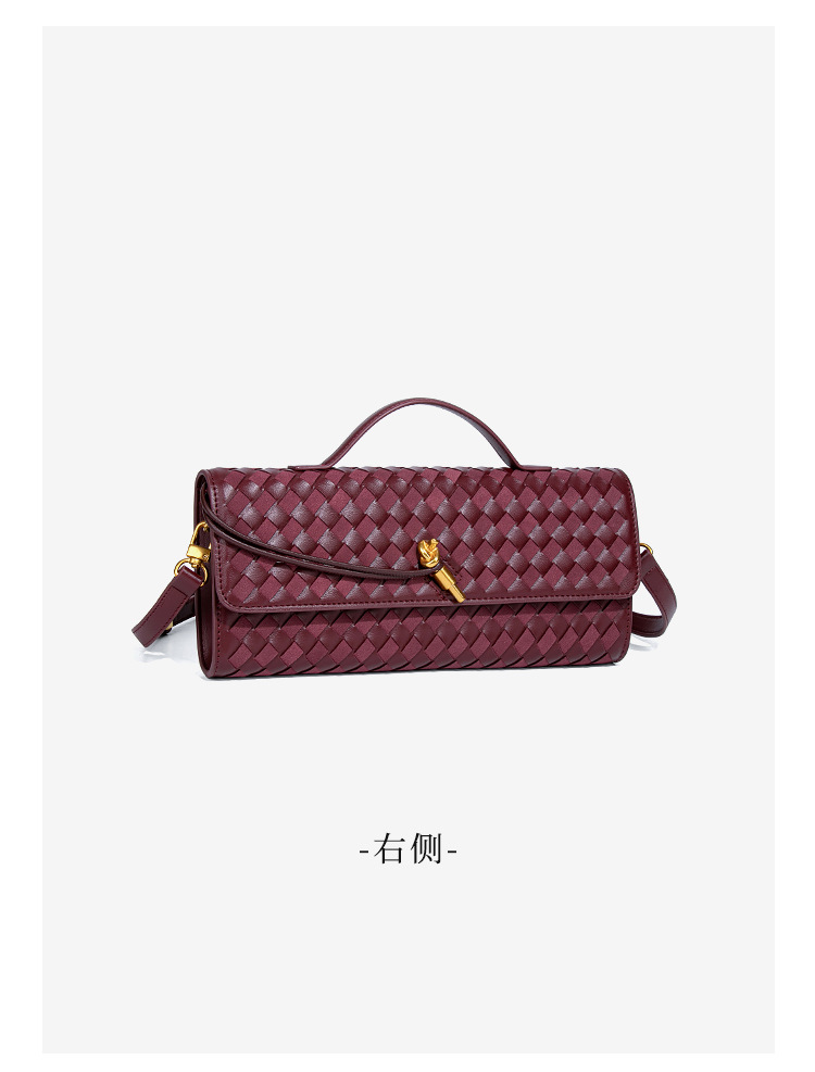 个性时尚双拼编织晚宴包时尚横版手拿法棍包休闲百搭单肩斜挎女包
