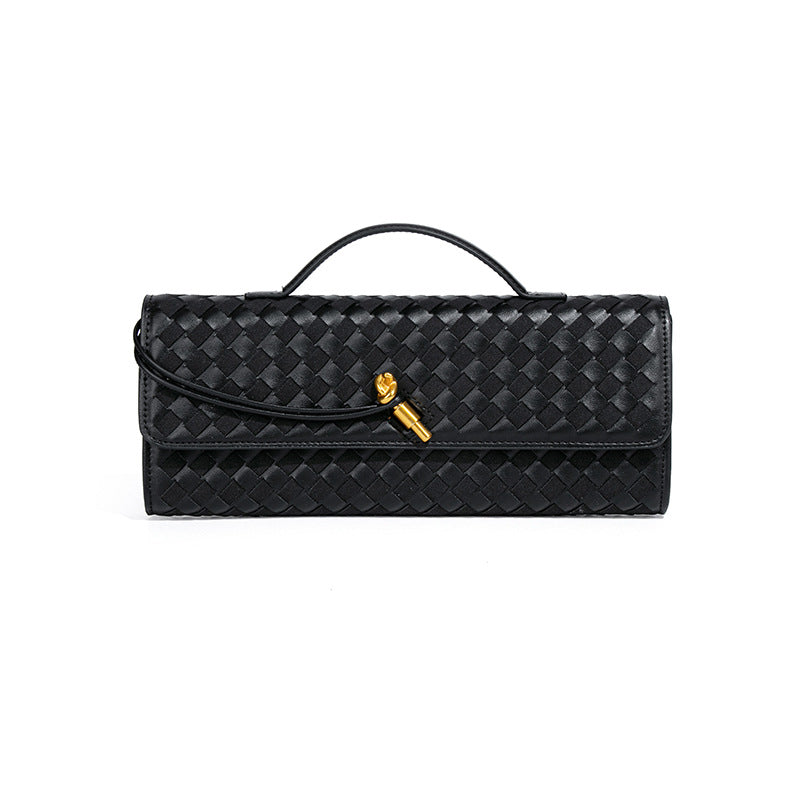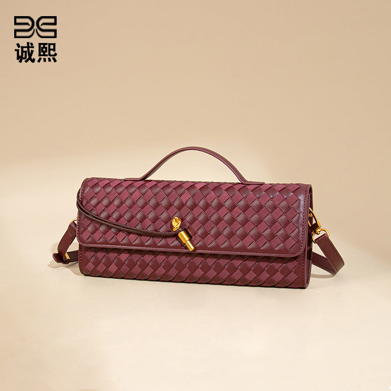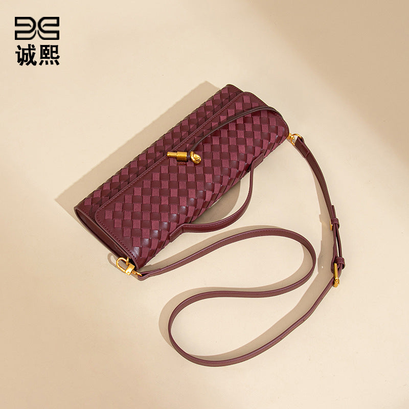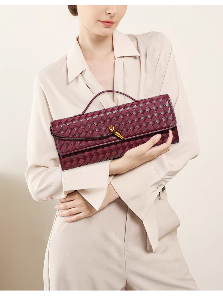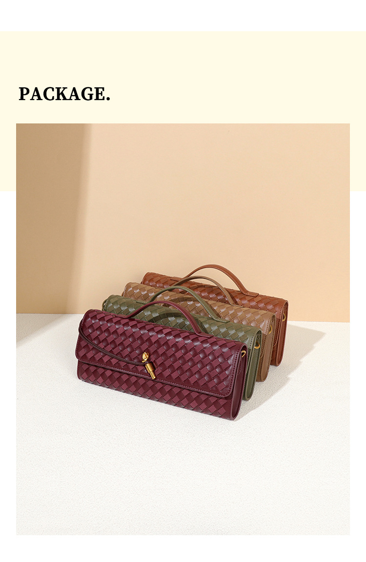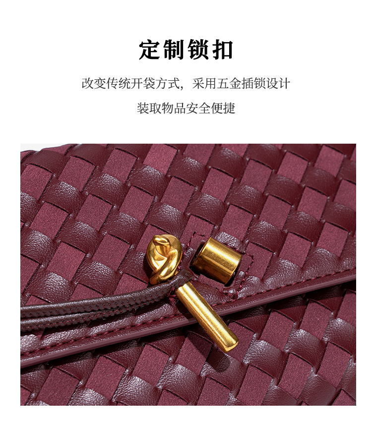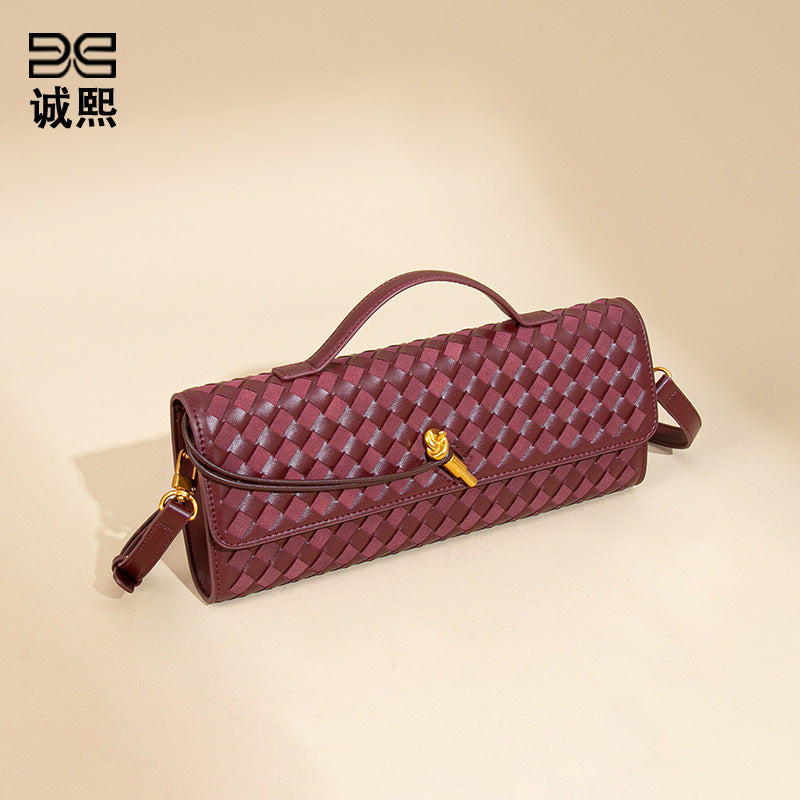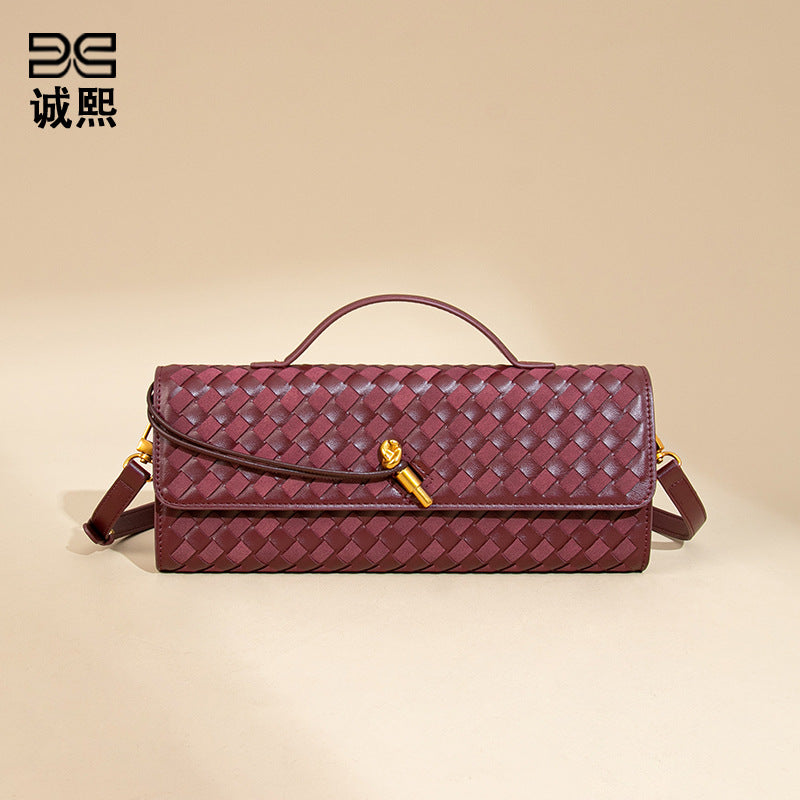 个性时尚双拼编织晚宴包时尚横版手拿法棍包休闲百搭单肩斜挎女包