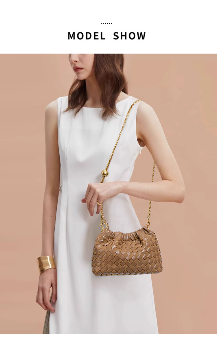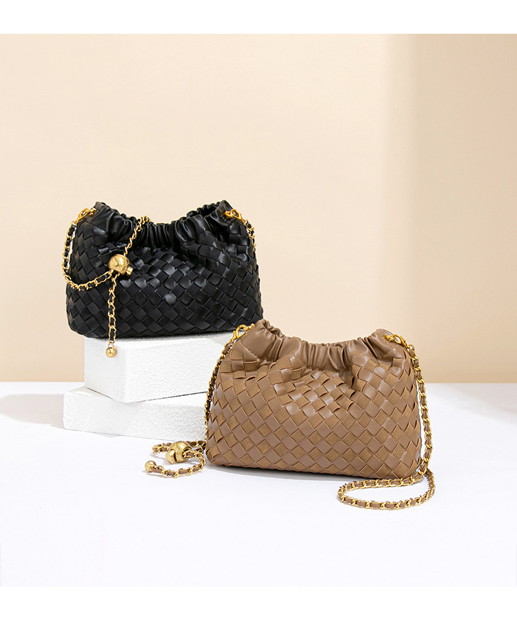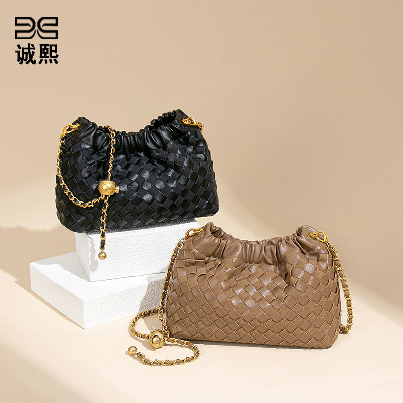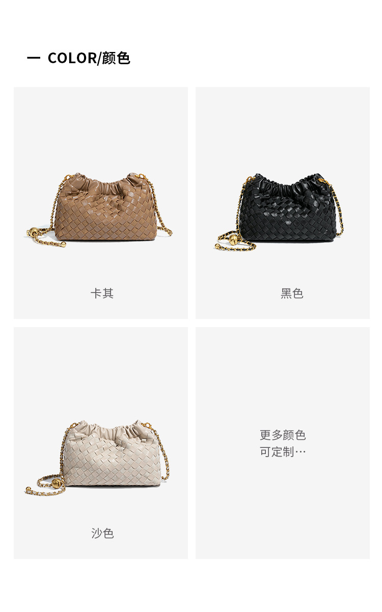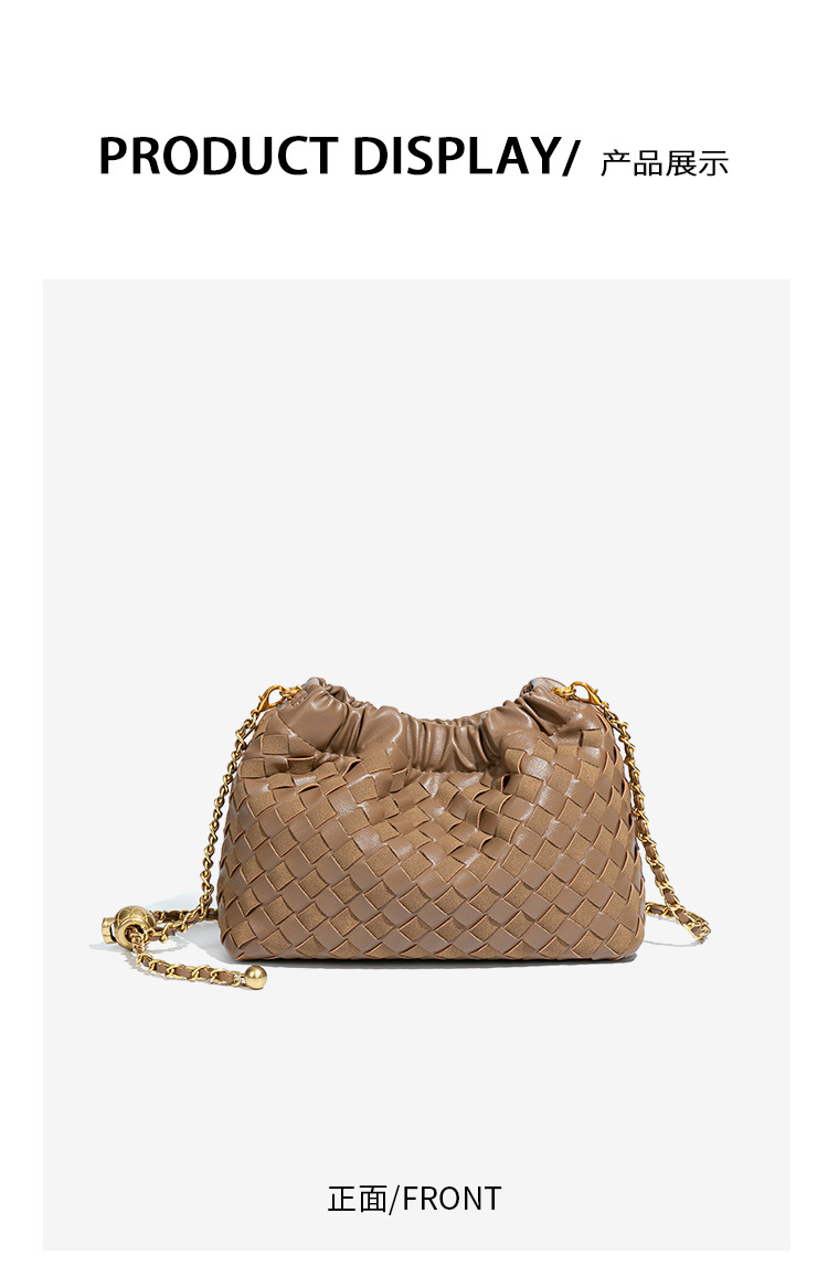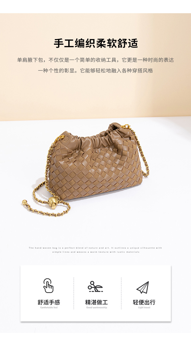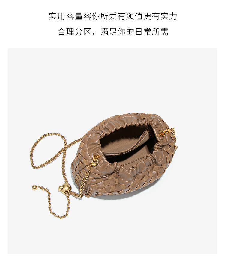 个性时尚小金球皱褶云朵包质感潮流手工编织包休闲女单肩斜跨包
