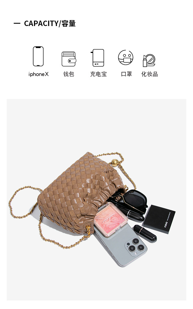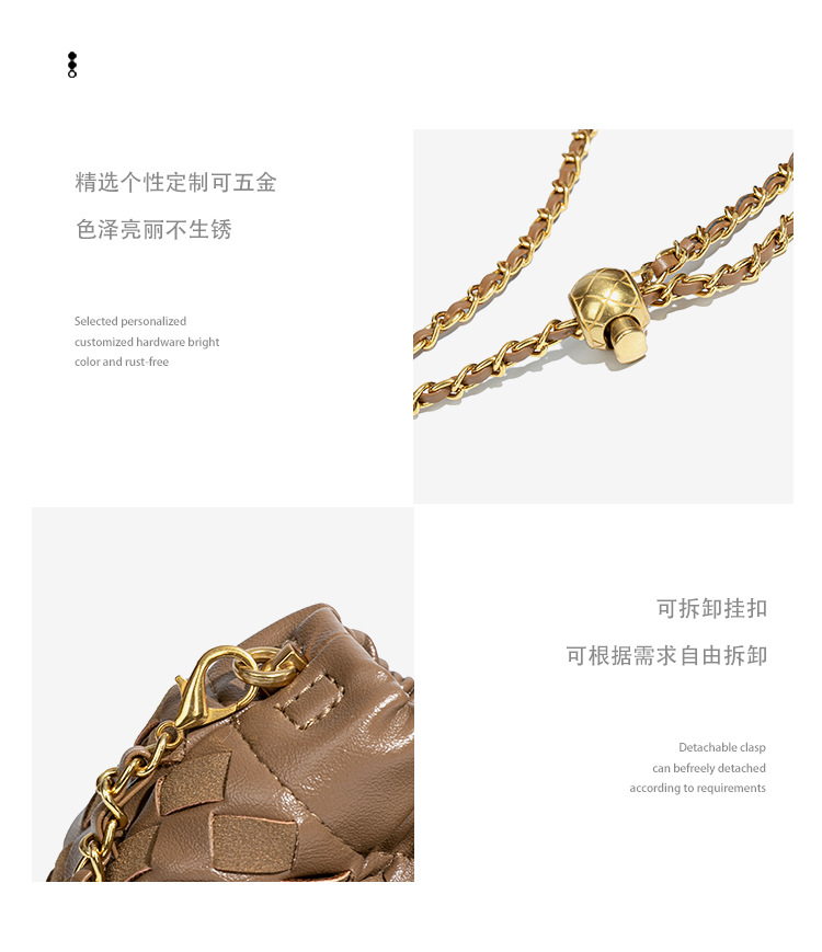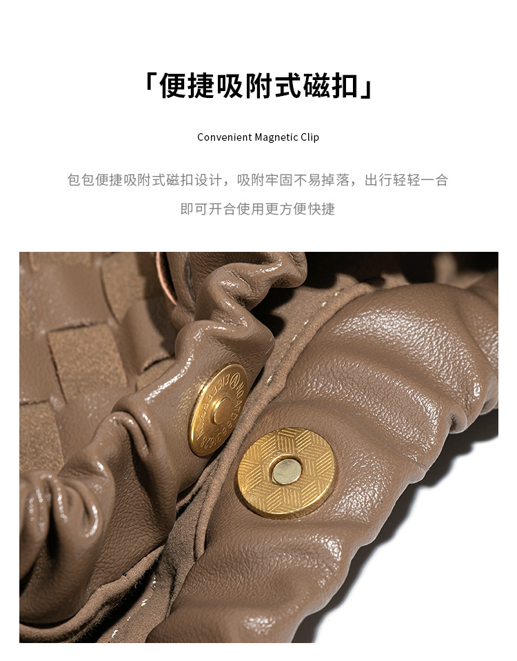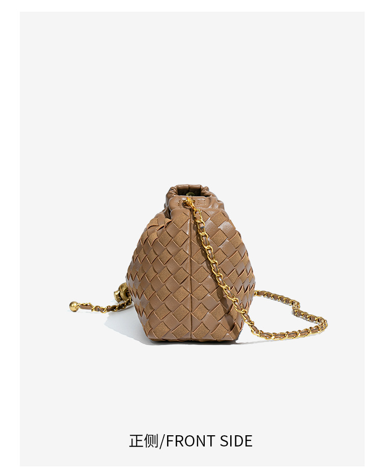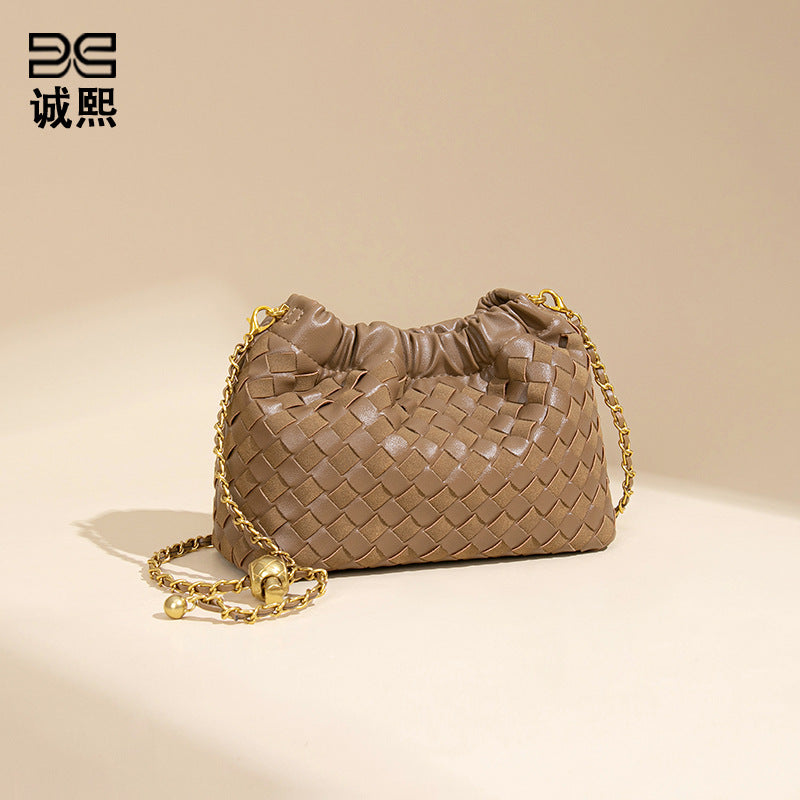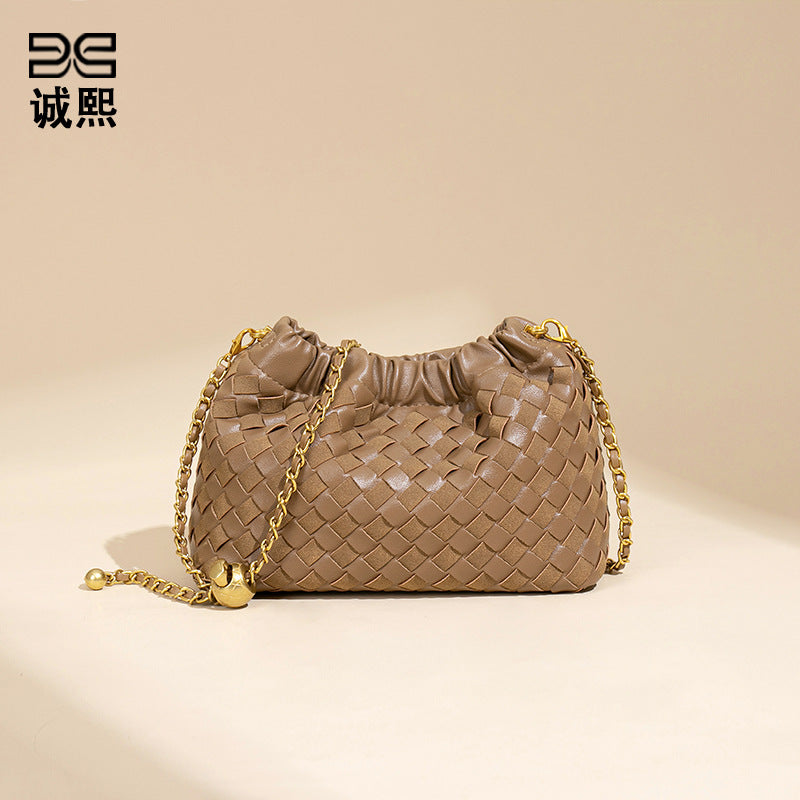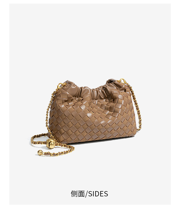 个性时尚小金球皱褶云朵包质感潮流手工编织包休闲女单肩斜跨包
