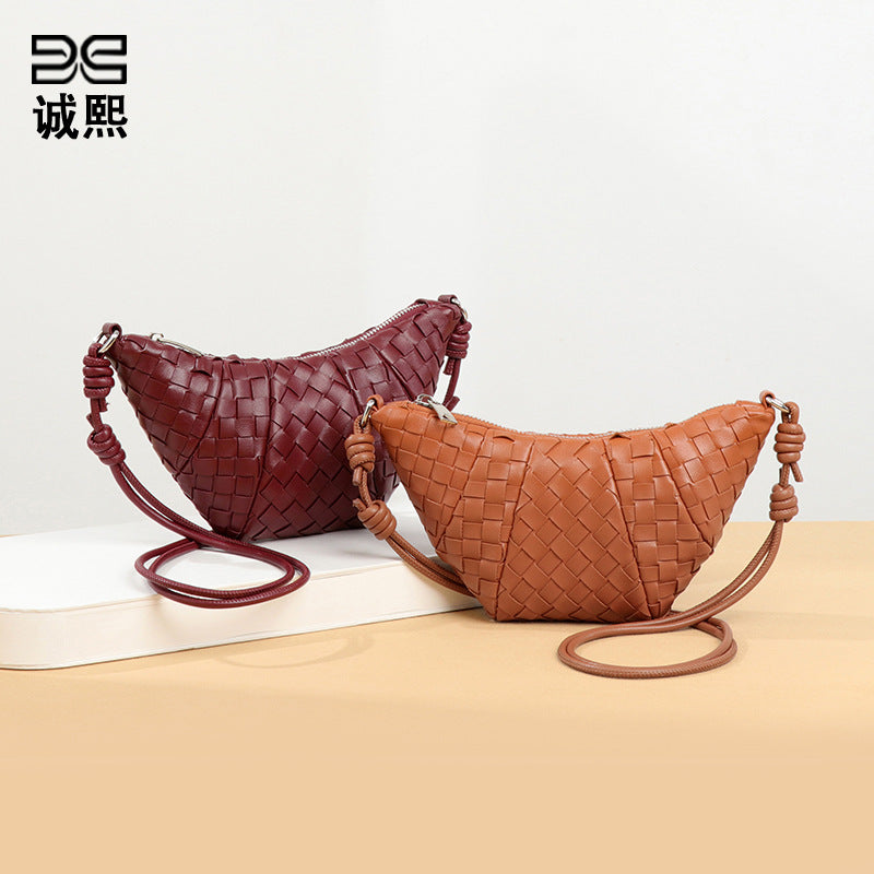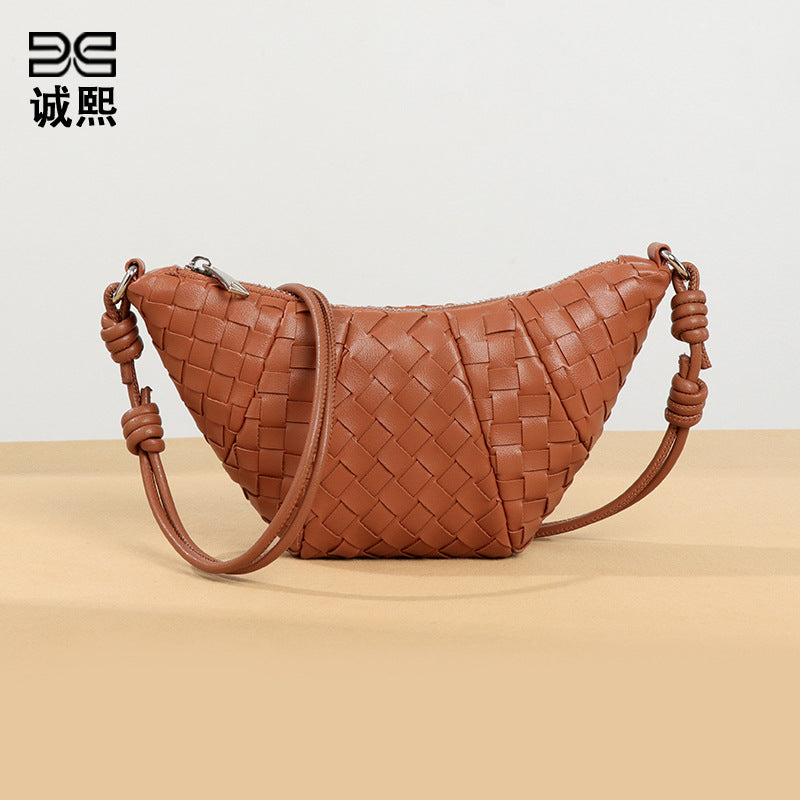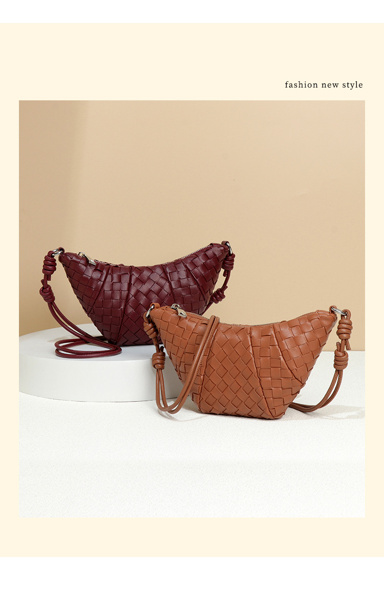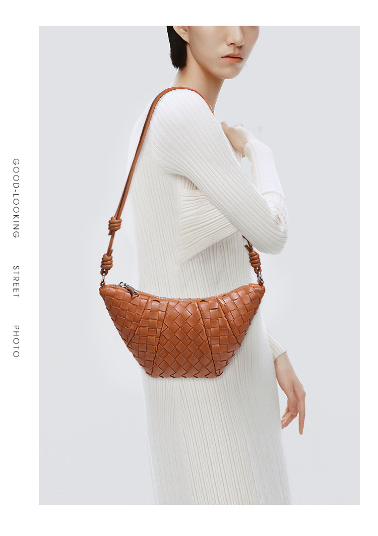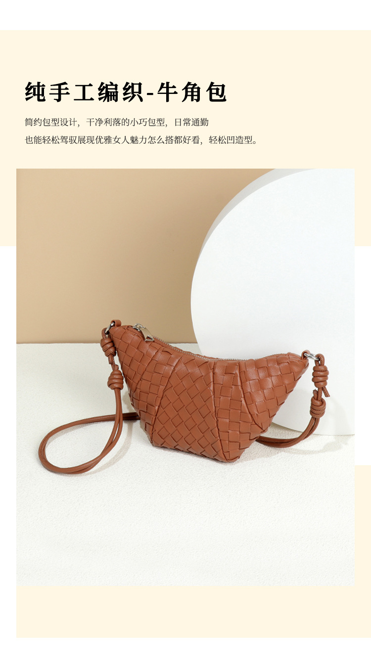 个性潮流新款手工编织牛角包时尚高级感单肩包复古质感软皮斜挎包
