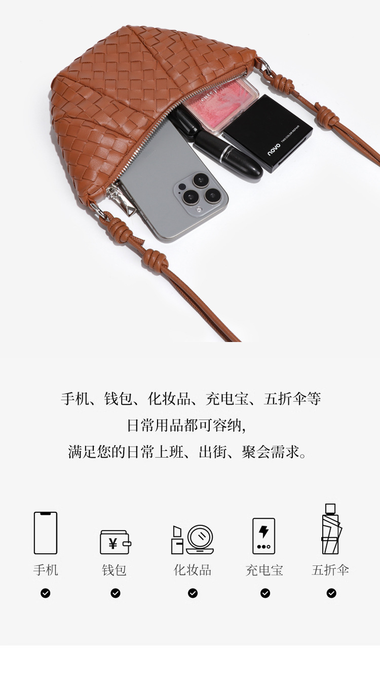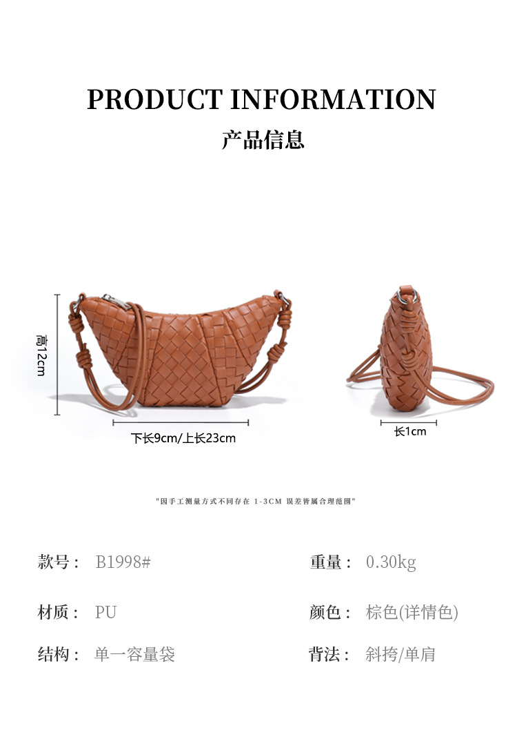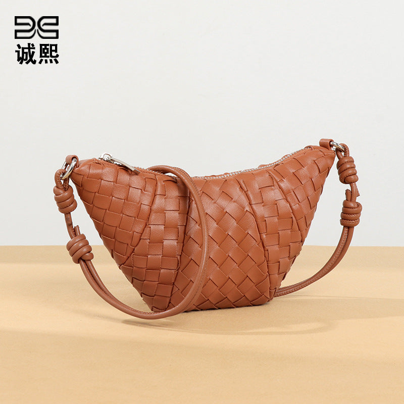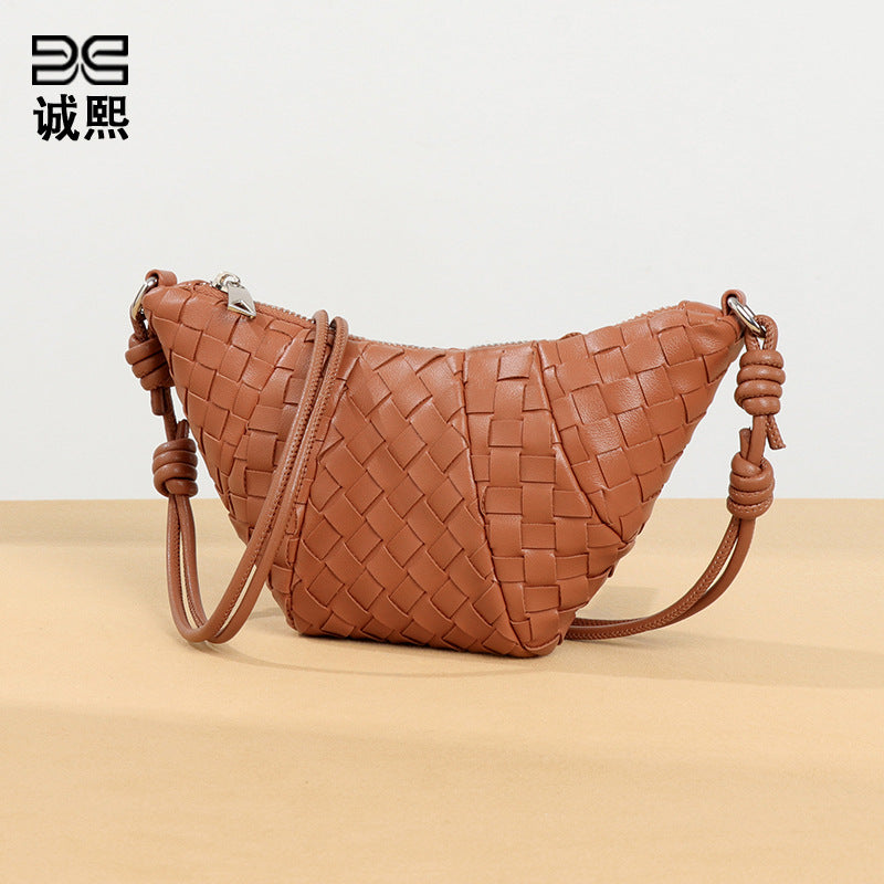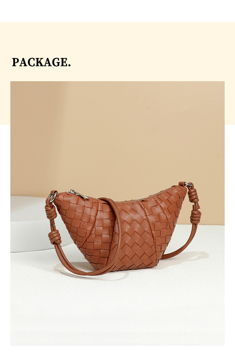 个性潮流新款手工编织牛角包时尚高级感单肩包复古质感软皮斜挎包