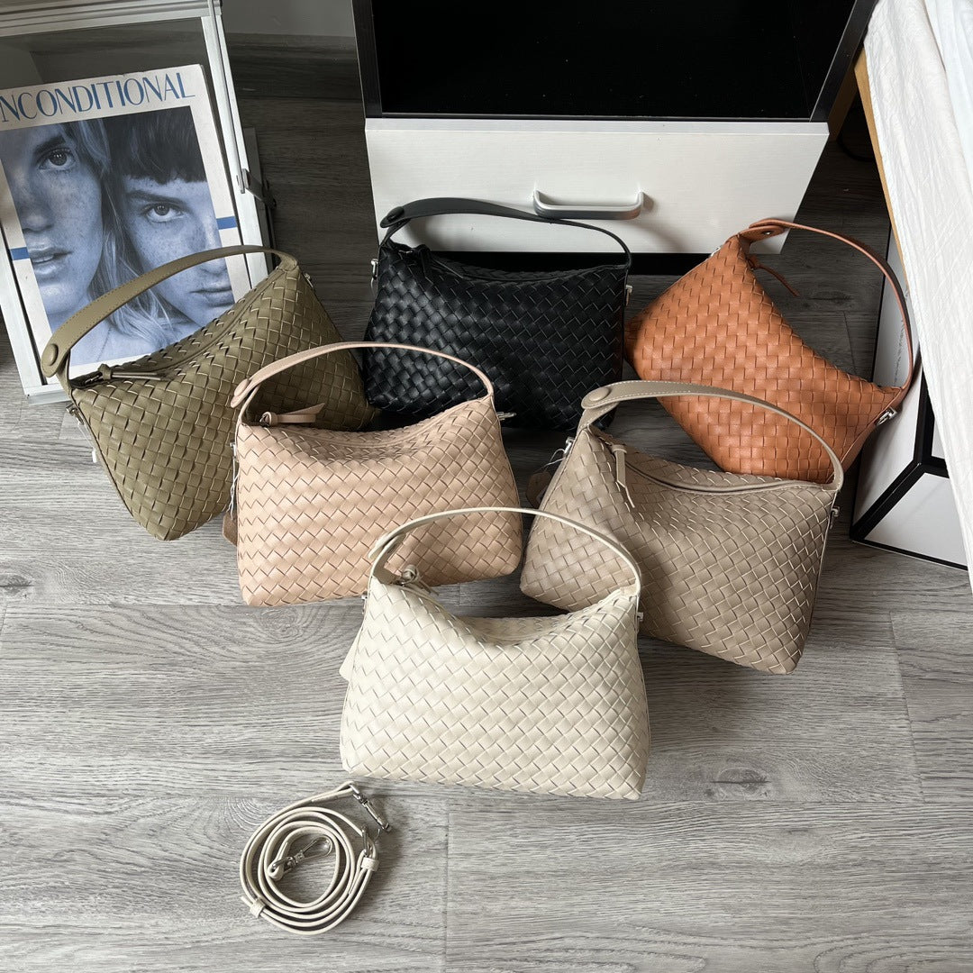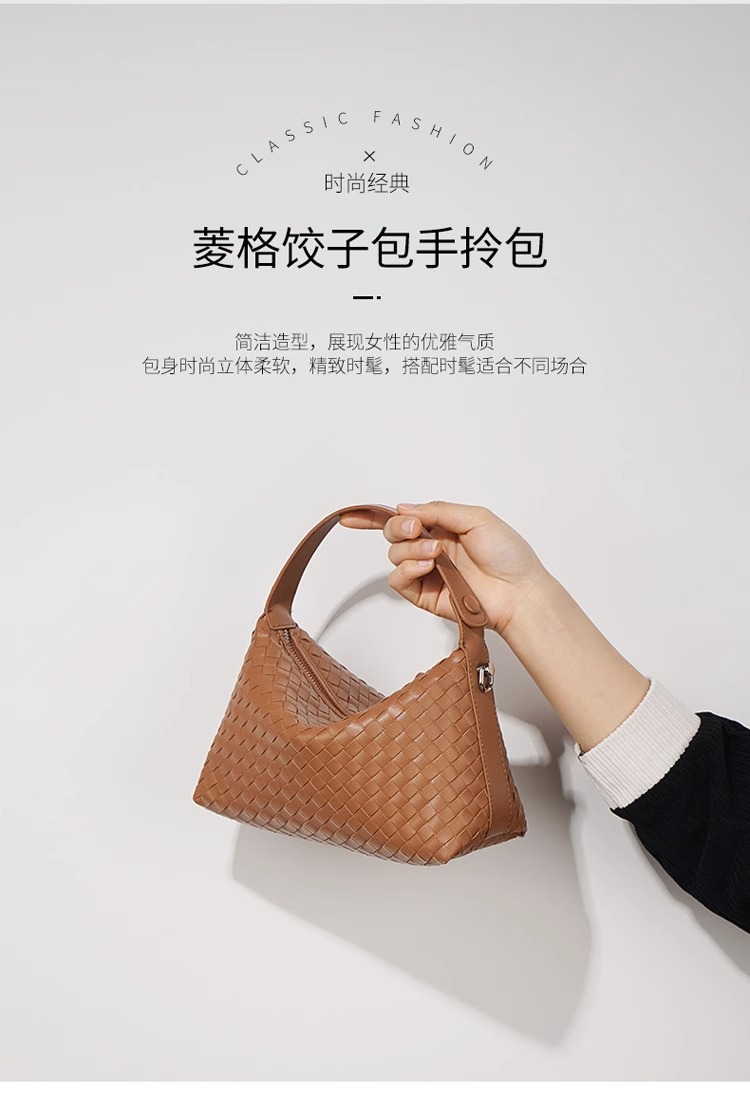 亚马逊小众真皮编织饺子包牛皮流浪风斜挎包女枕头包手拎包批发