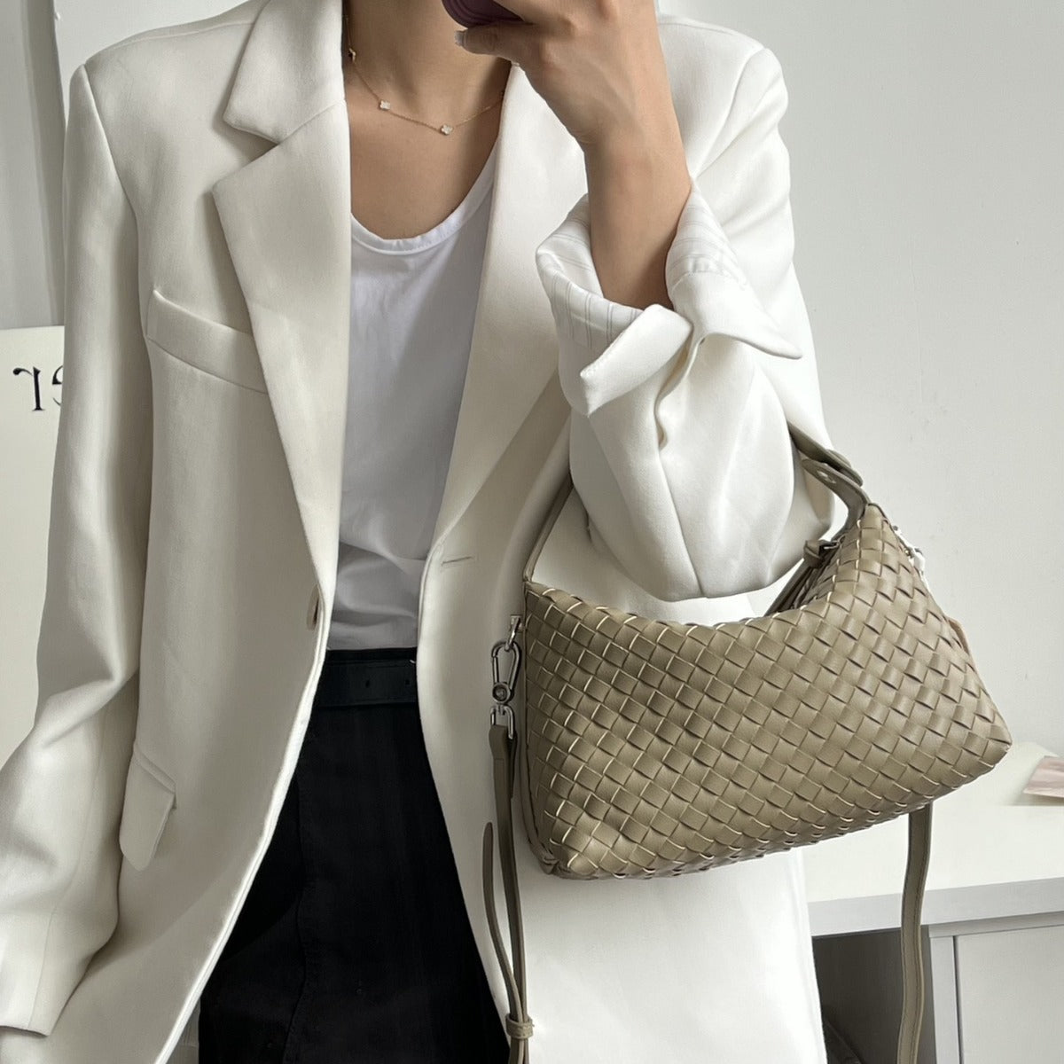 全牛皮定制款,手工编织款,时尚潮流百搭款,单肩斜挎包,