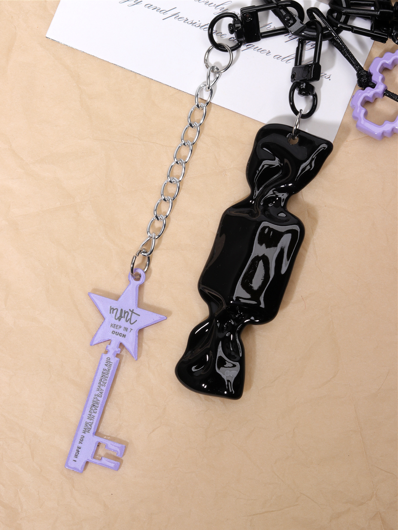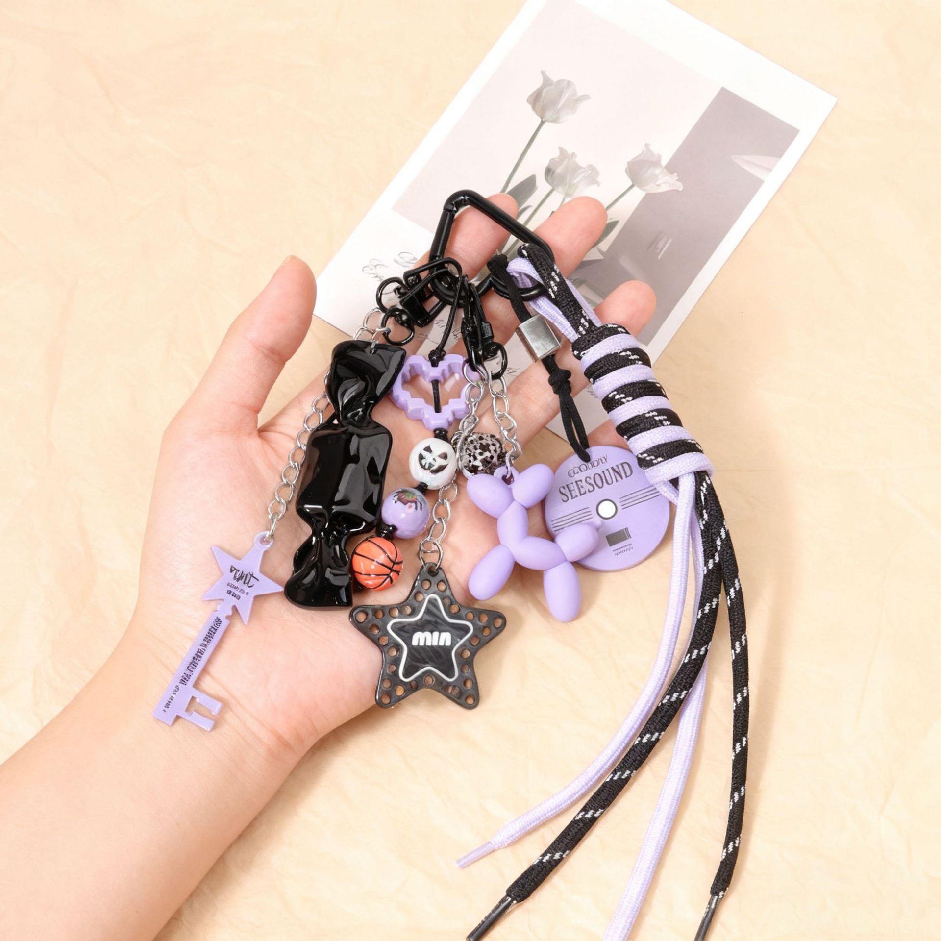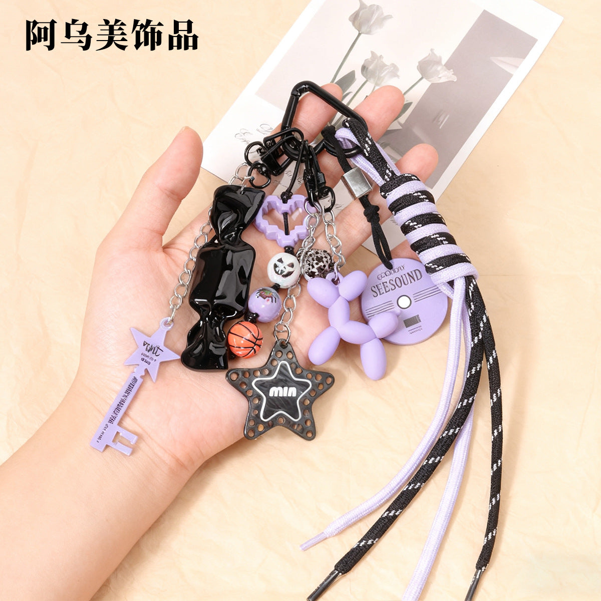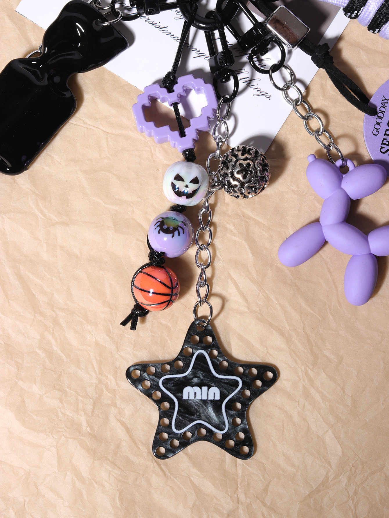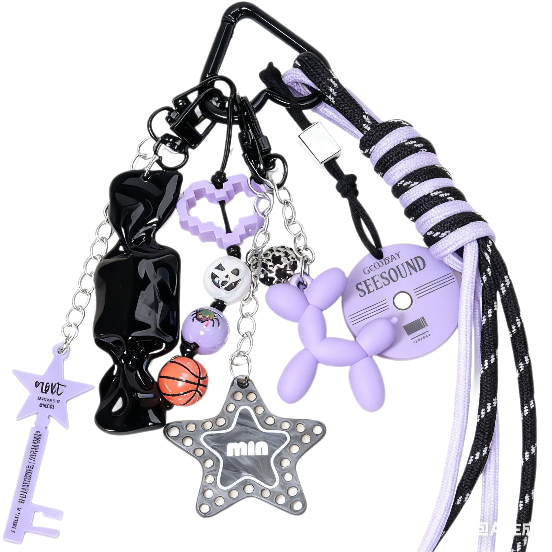 亚马逊网红爆款彩色尼龙绳万圣节串珠钥匙扣挂件情侣款包包挂绳