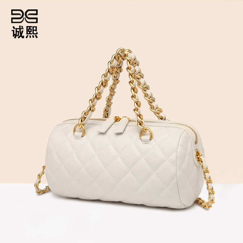 今年流行小众菱格链条枕头包夏季新款手提斜挎包网红爆款圆筒包女