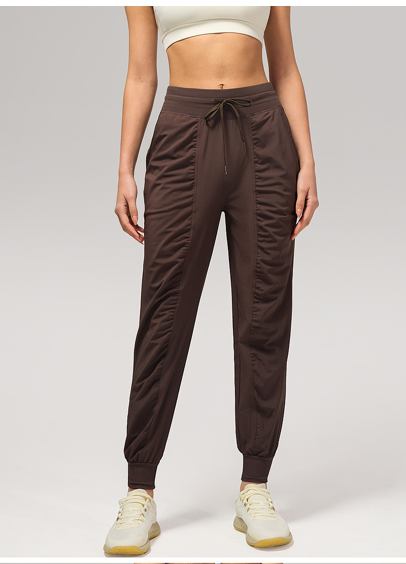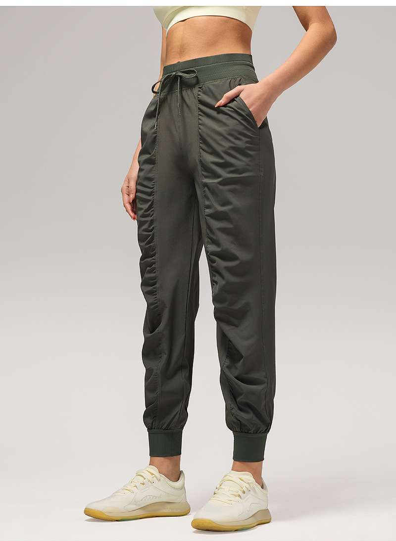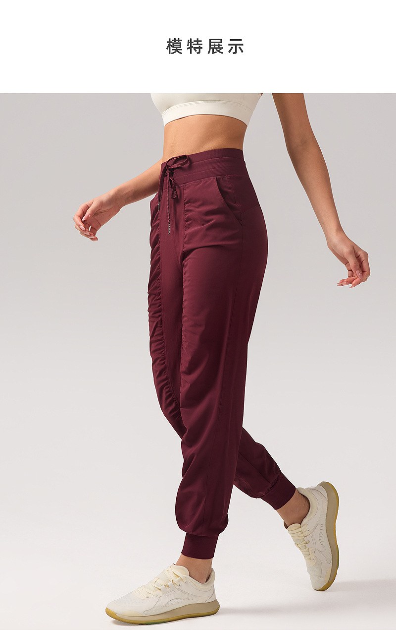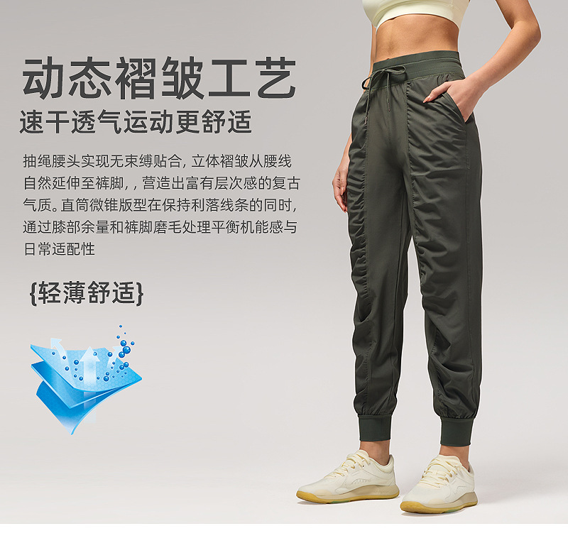 休闲宽松运动裤女压褶跑步瑜伽健身裤九分口袋速干透气束脚卫裤
