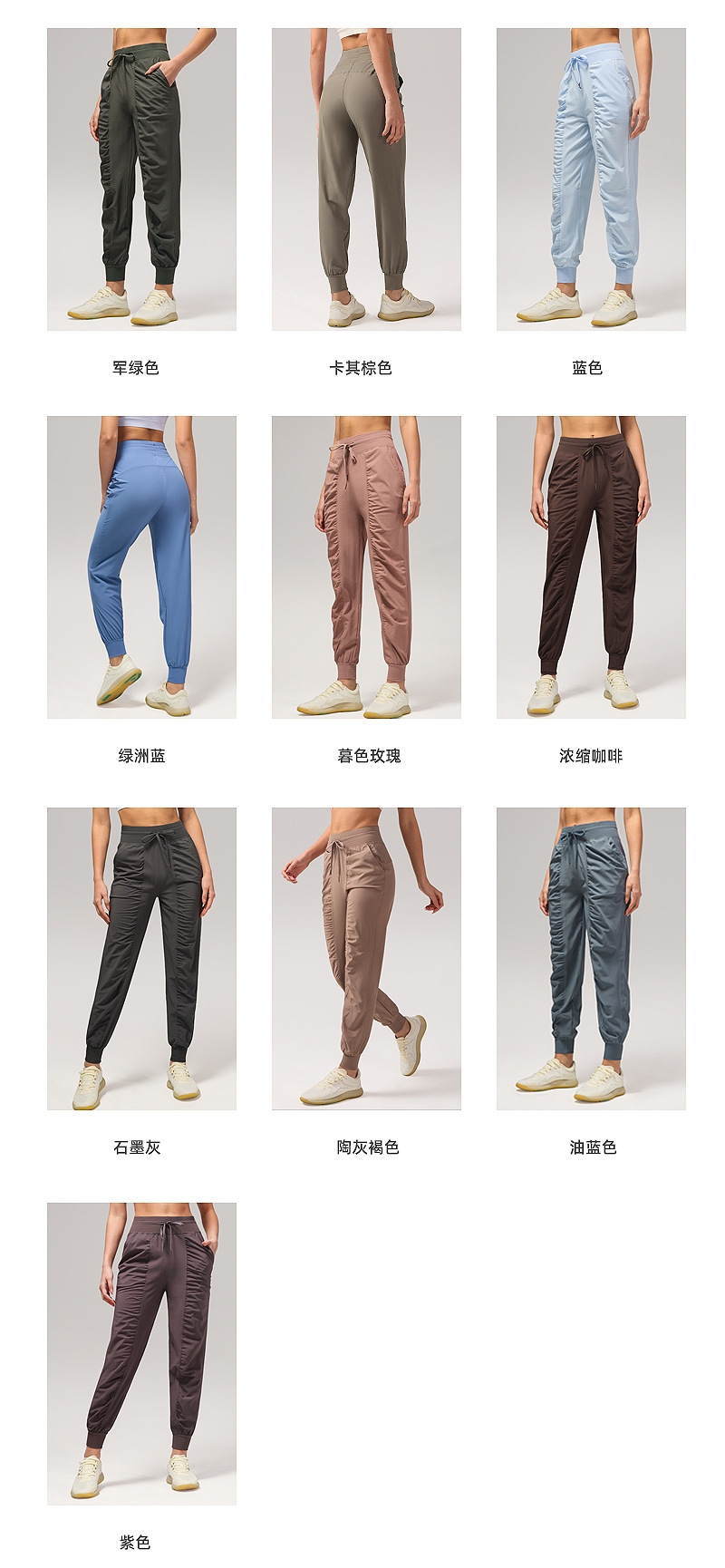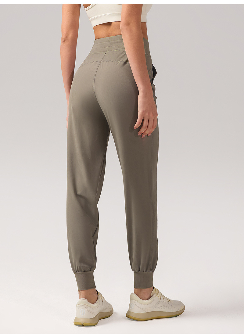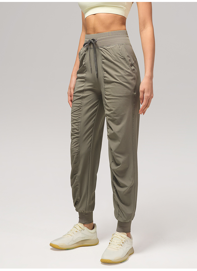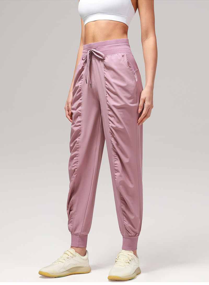 休闲宽松运动裤女压褶跑步瑜伽健身裤九分口袋速干透气束脚卫裤