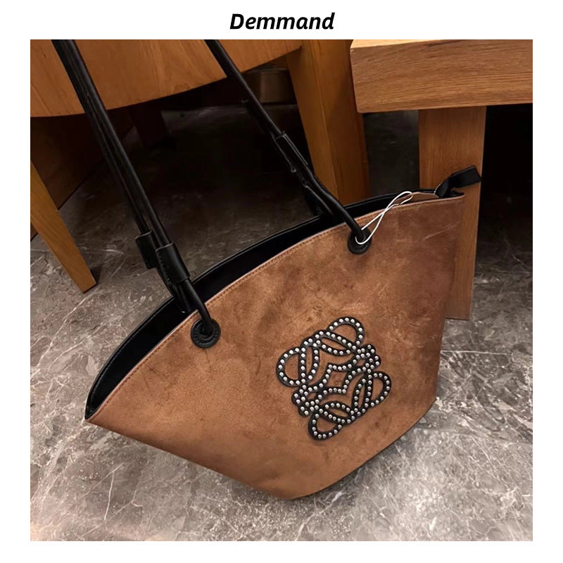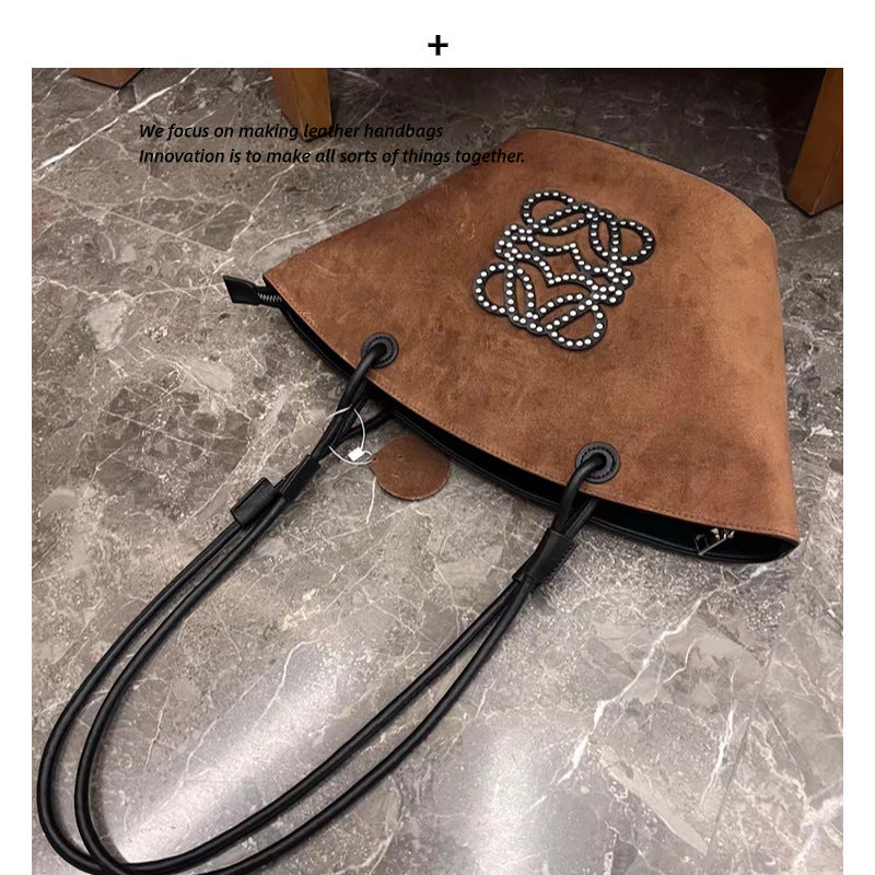 冬季新款磨砂牛皮托特包大容量单肩腋下包时尚百搭麂皮绒购物包包