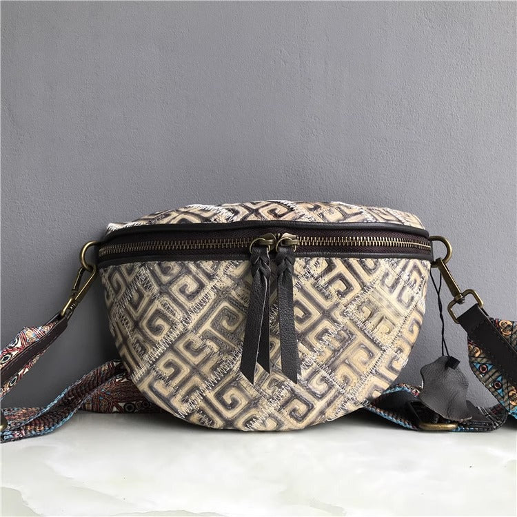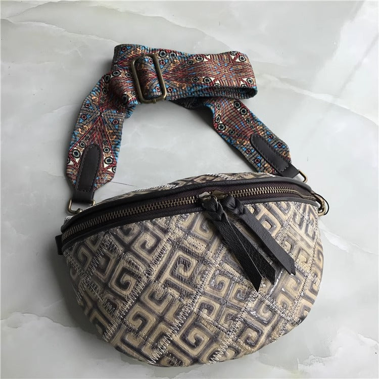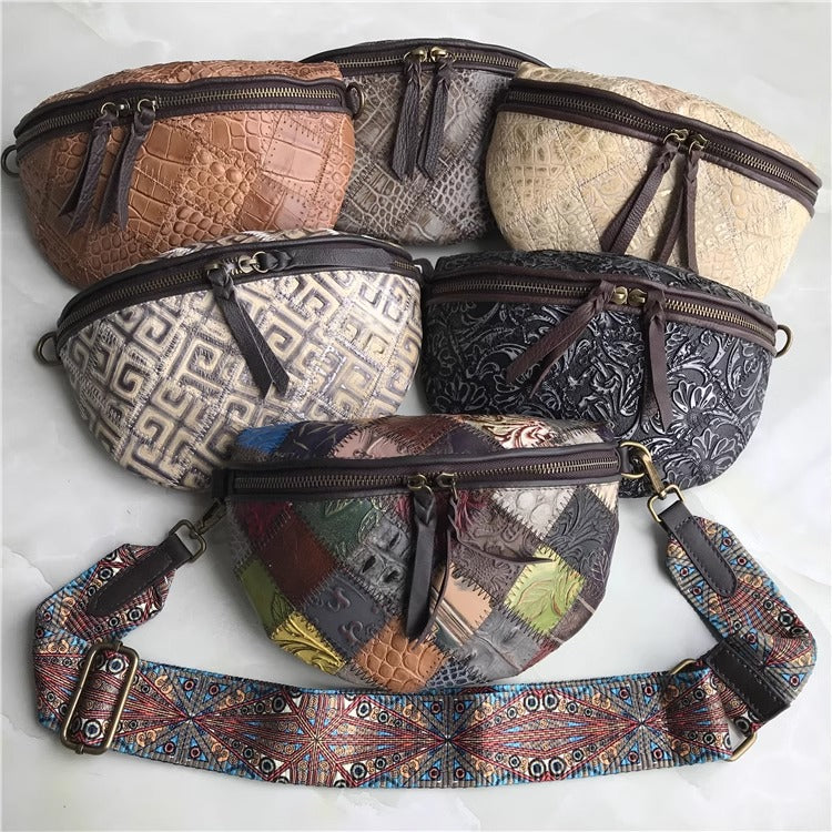 出口法国外贸真皮复古胸包欧美时尚百搭斜跨包腰包女酷包直播代发