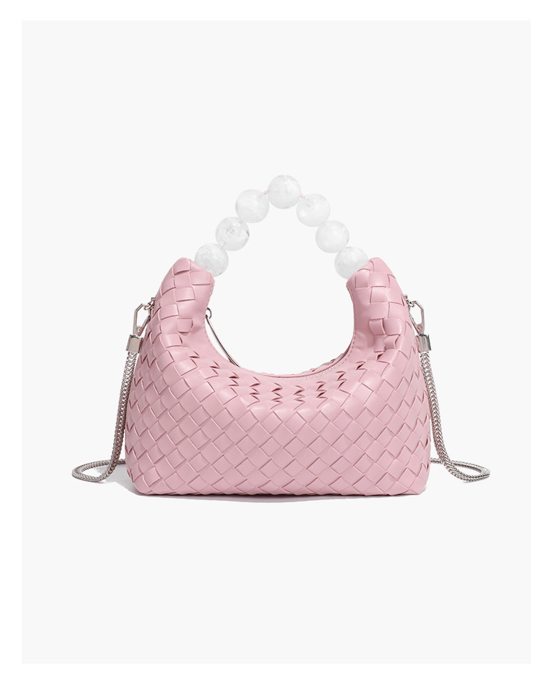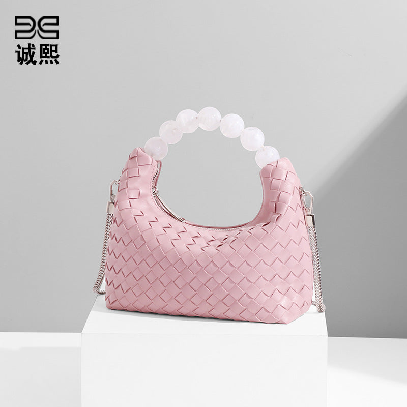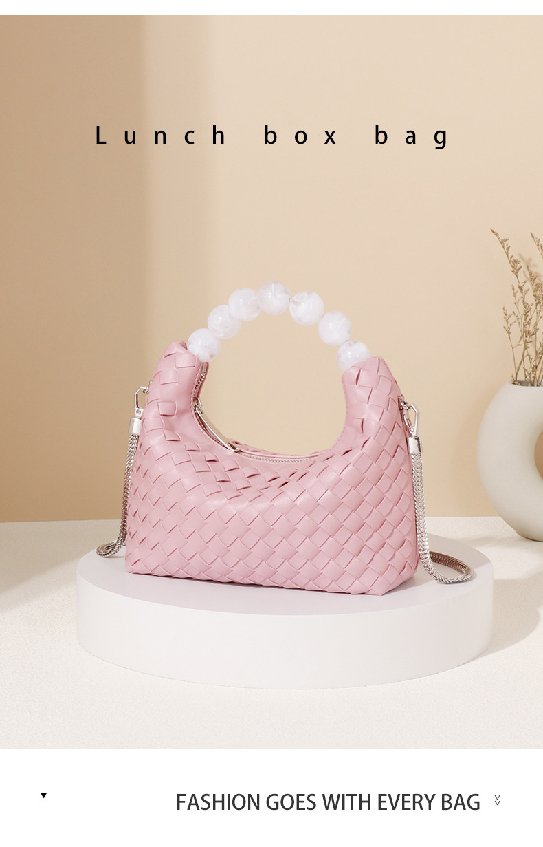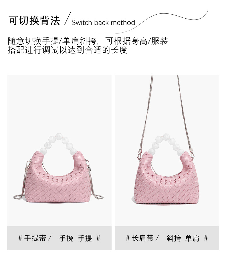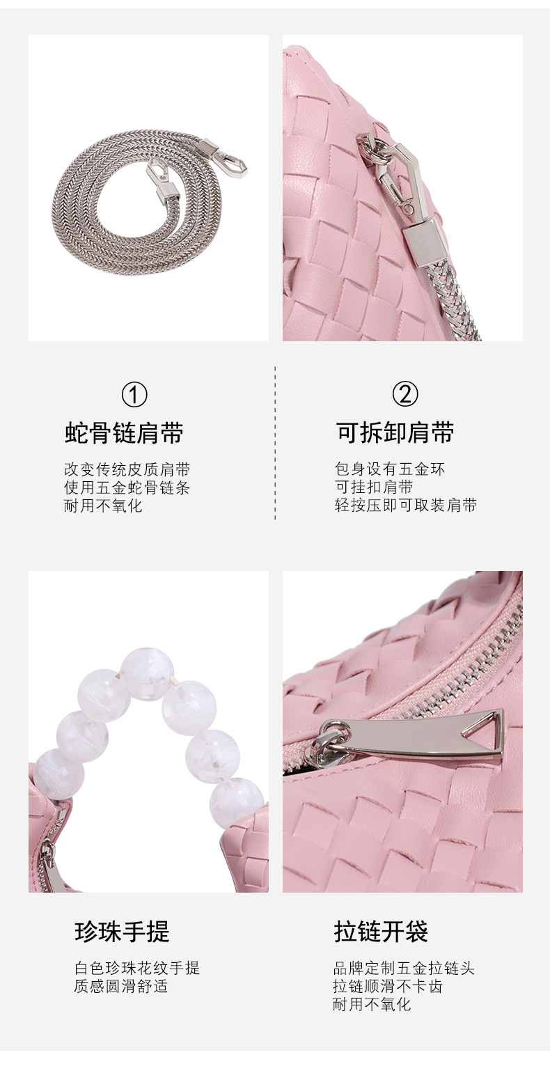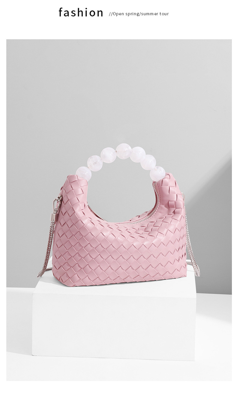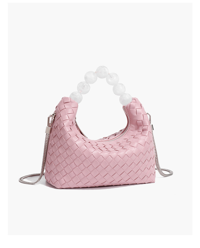 包包女小众高级时尚简约可爱手工编织单肩斜挎包珍珠奶油泡芙包包
