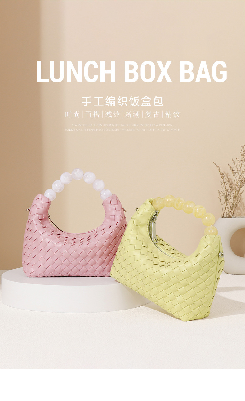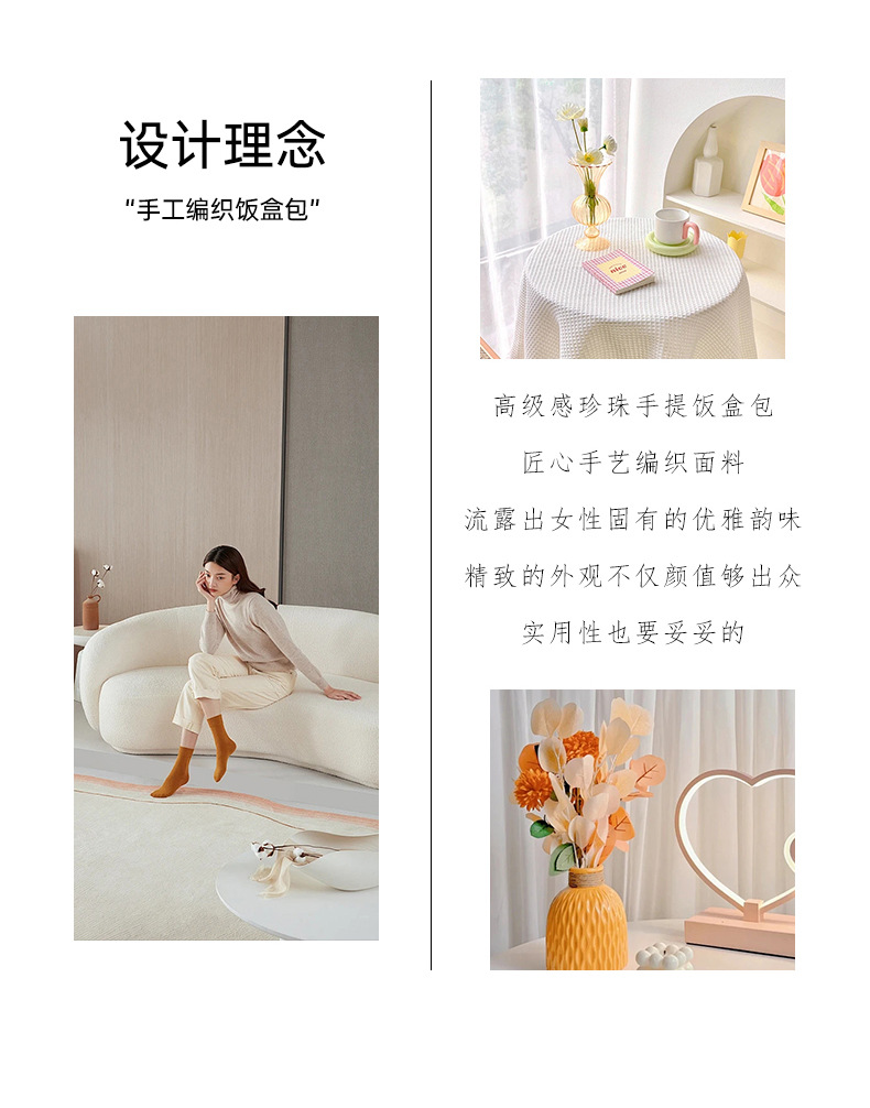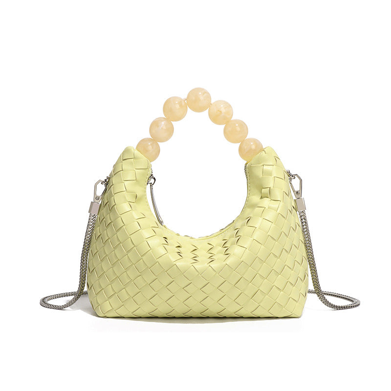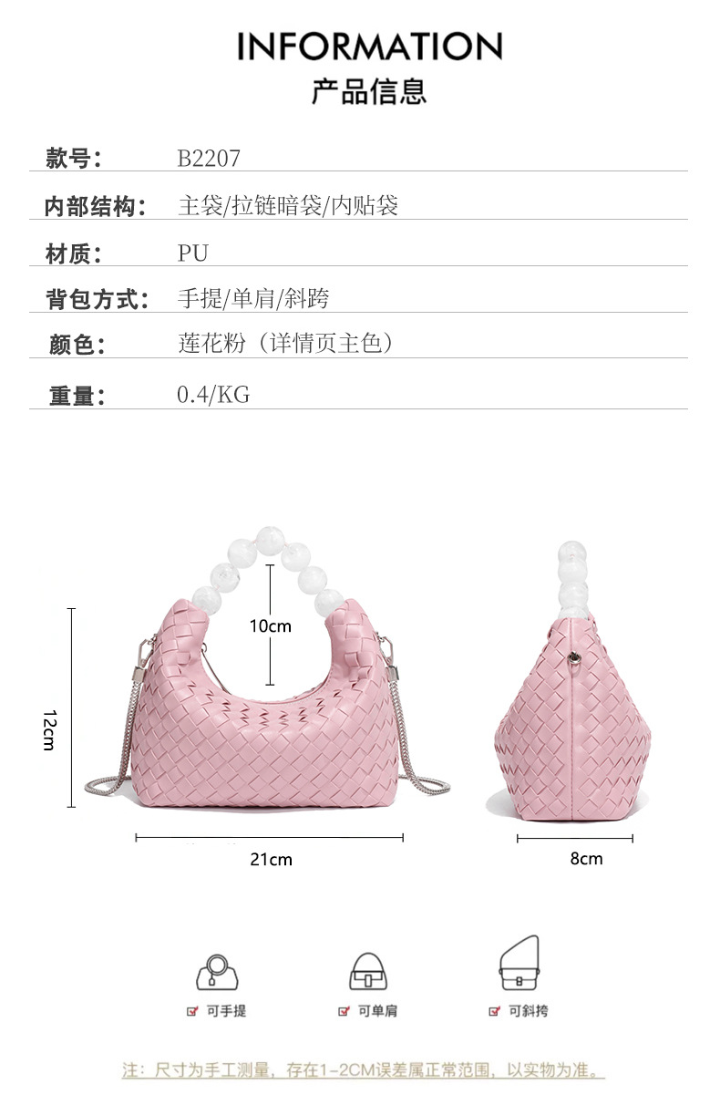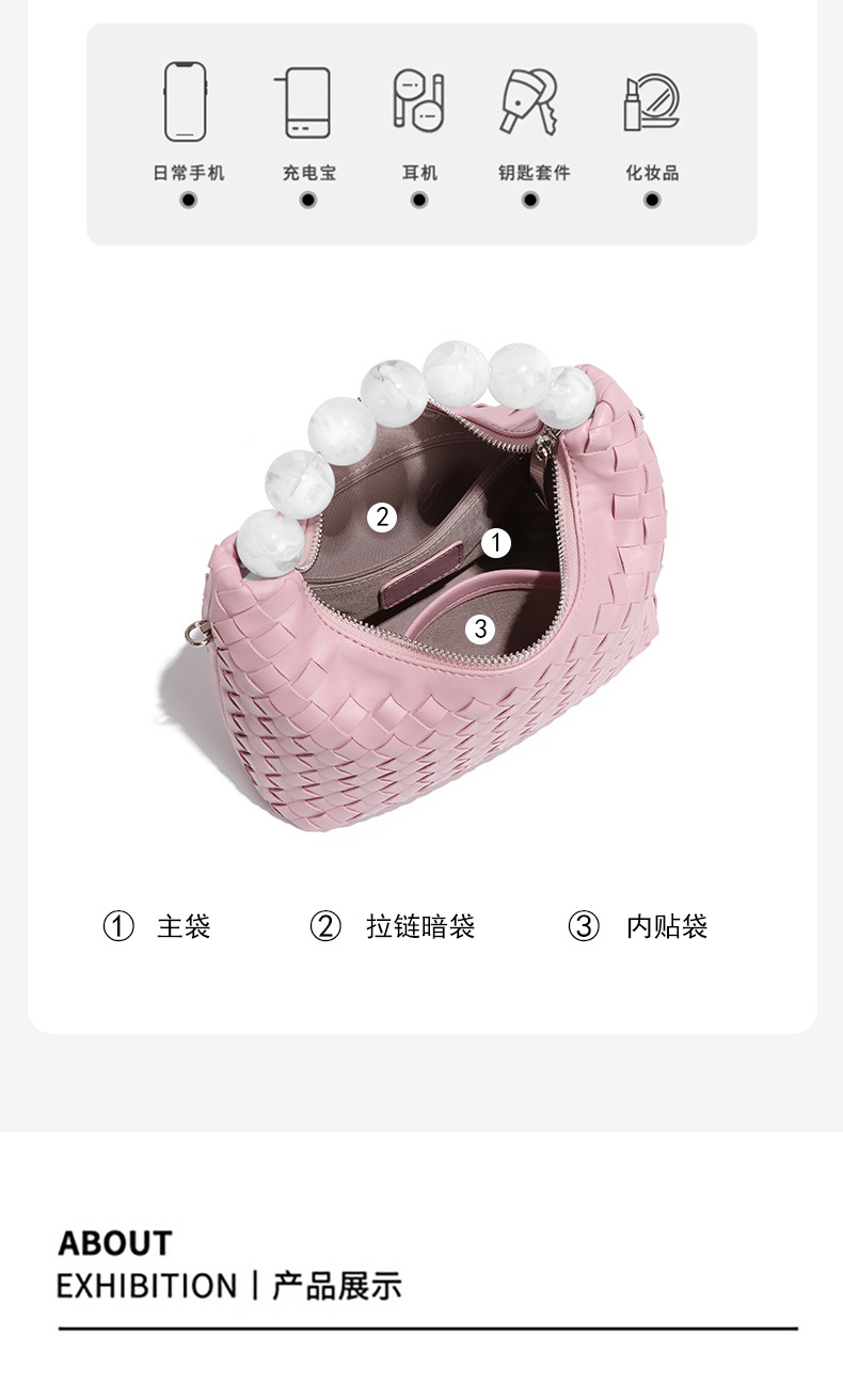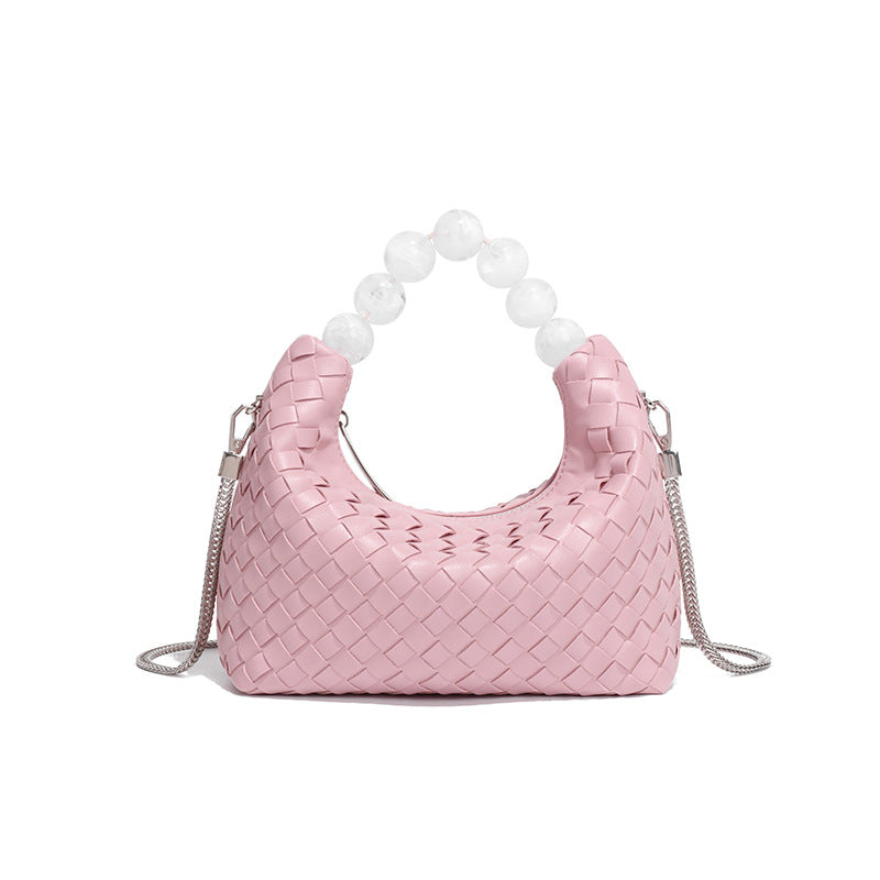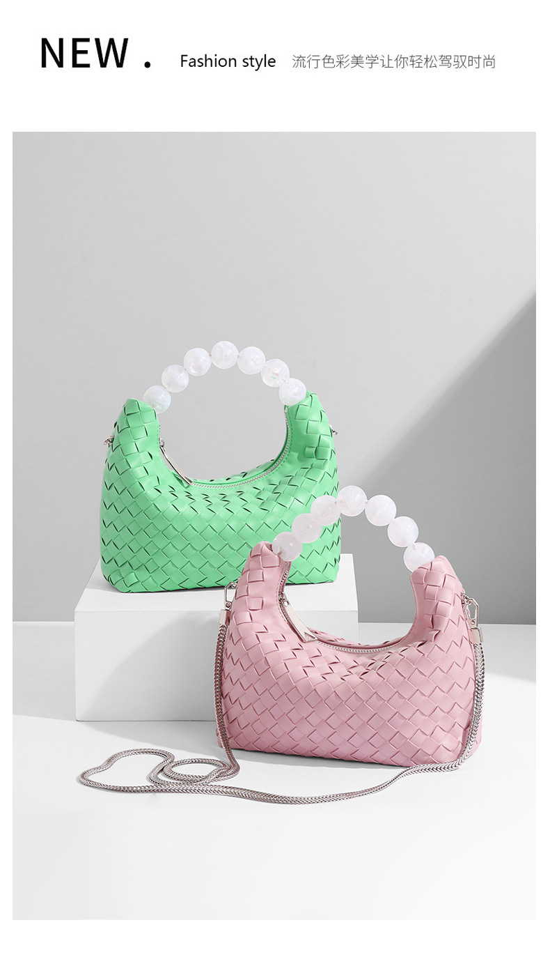 包包女小众高级时尚简约可爱手工编织单肩斜挎包珍珠奶油泡芙包包