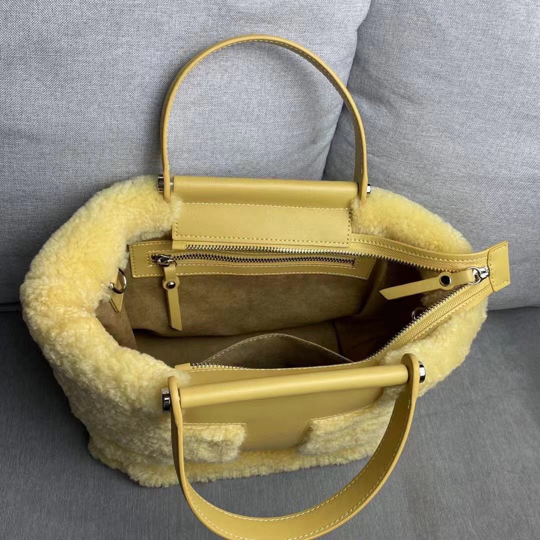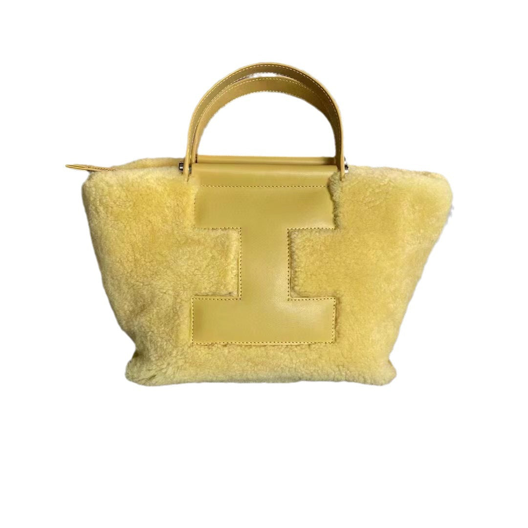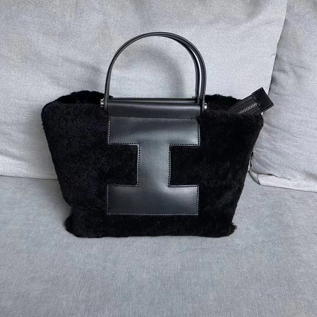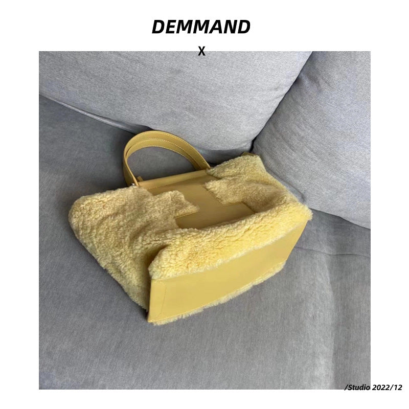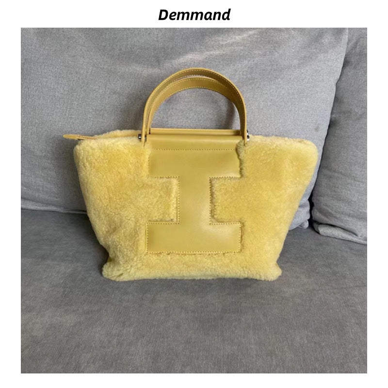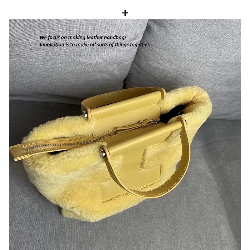 包包女2023秋冬新品网红撞色复古牛皮羊毛大容量托特包单肩斜挎包