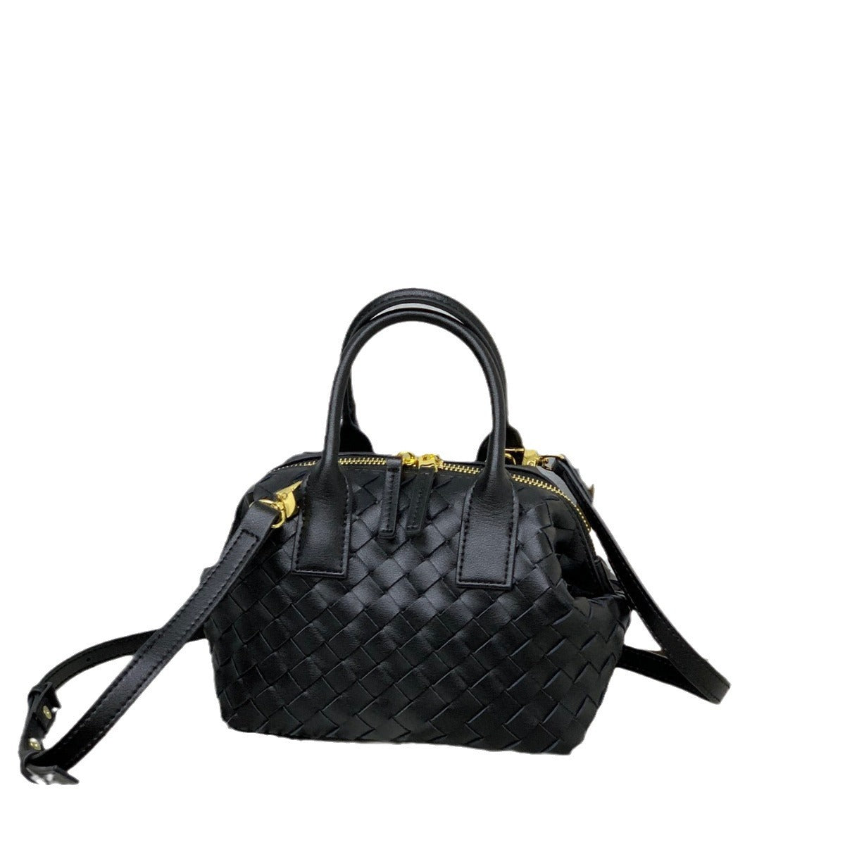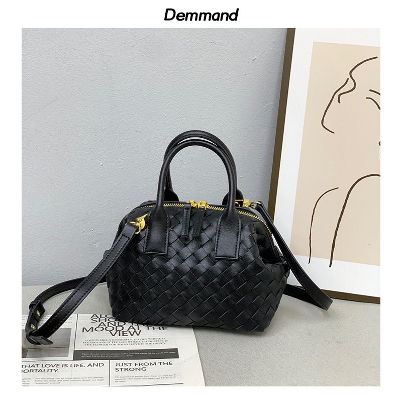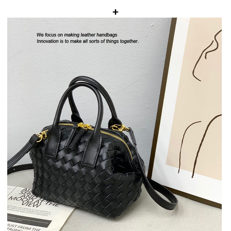 包包女2024新款真皮手工编织保龄球包女斜挎单肩小众波士顿手提包