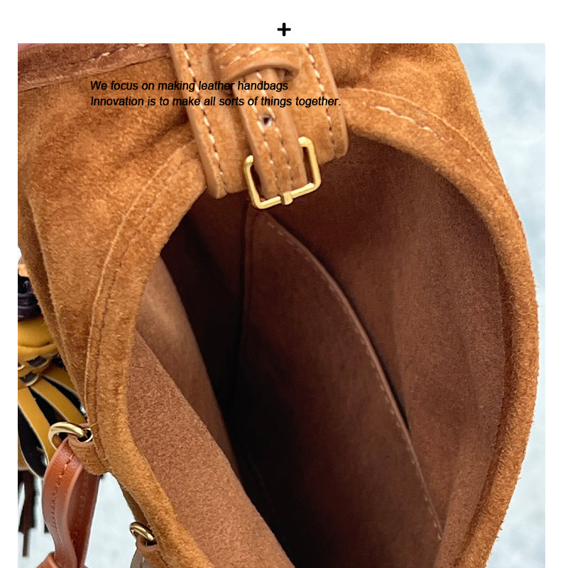 包包女2025新品网红撞色牛皮小众设计流苏手拎包简约时尚手提包潮