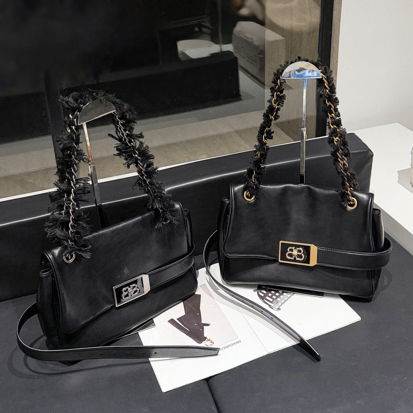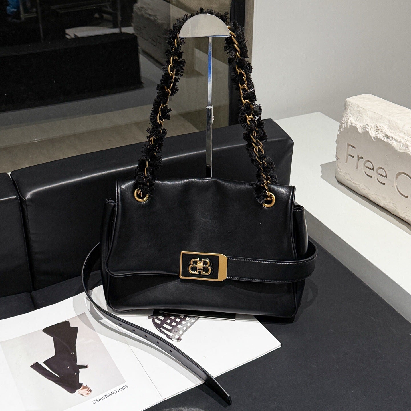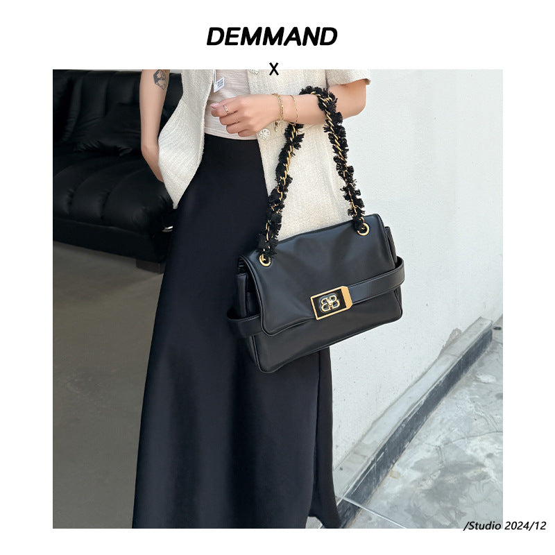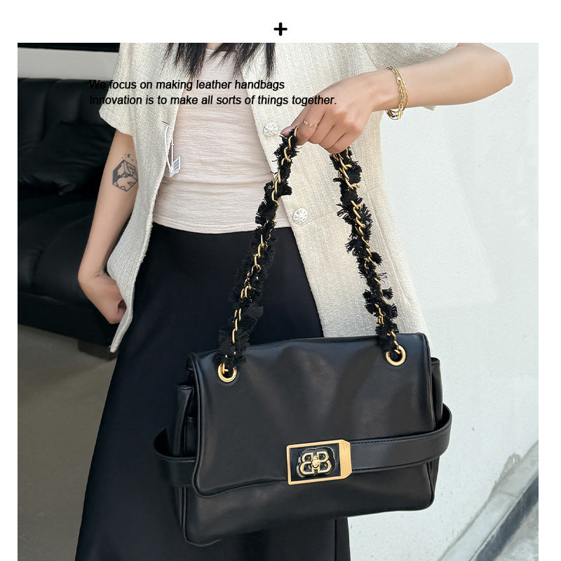 包包女2025新款上班通勤包B家魔都包黑色链条包大容量斜挎包真皮