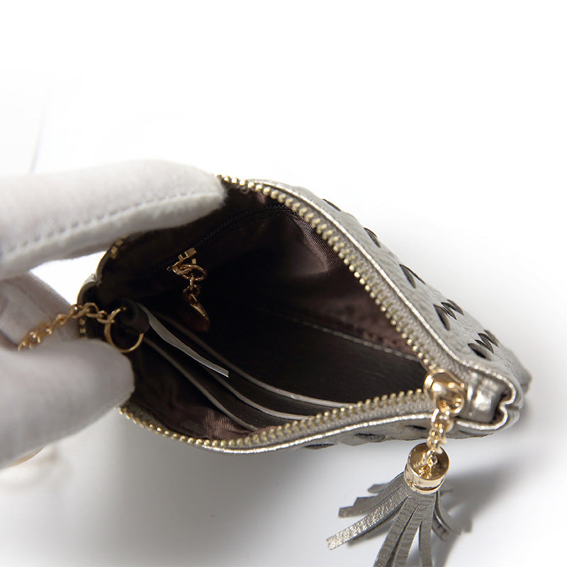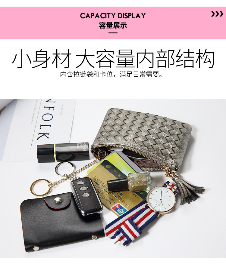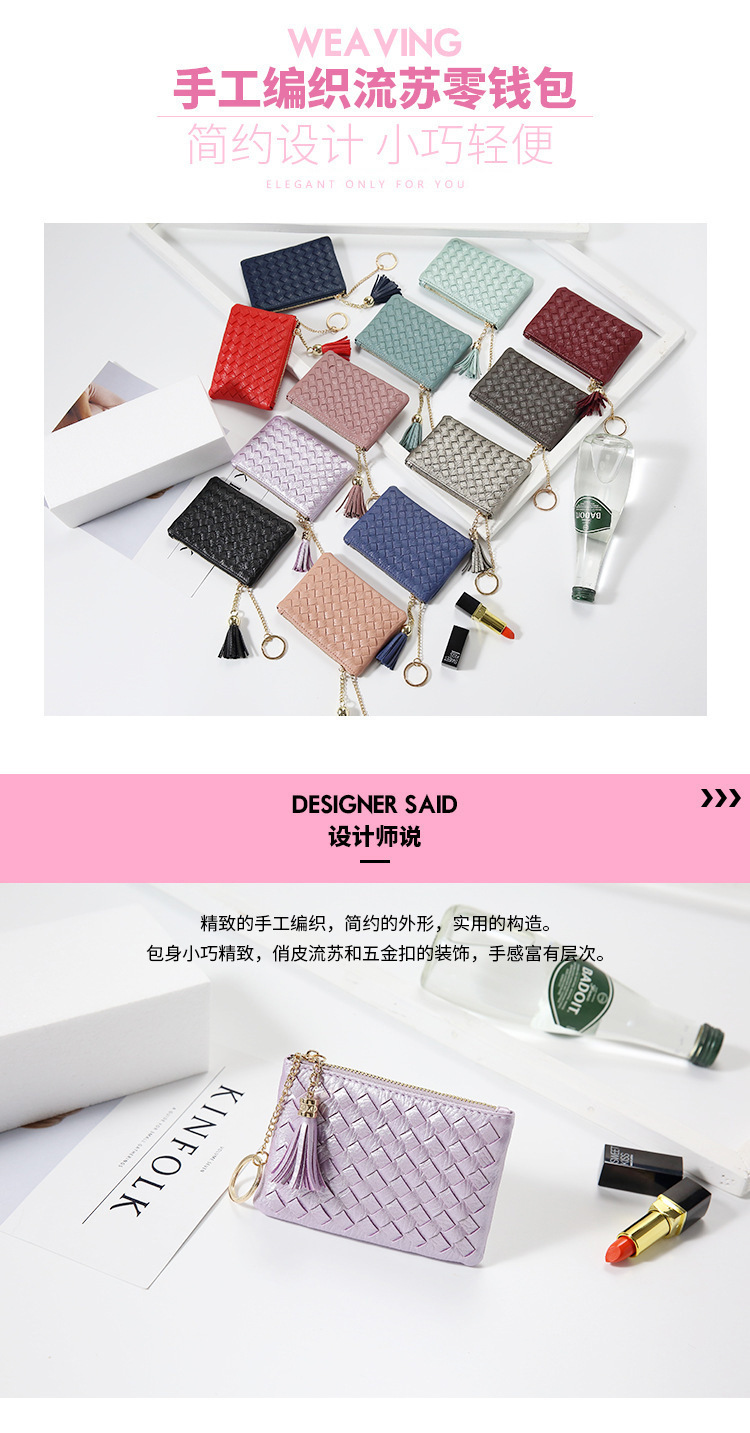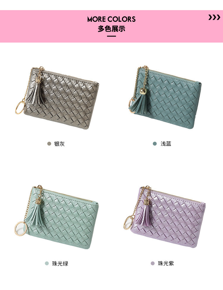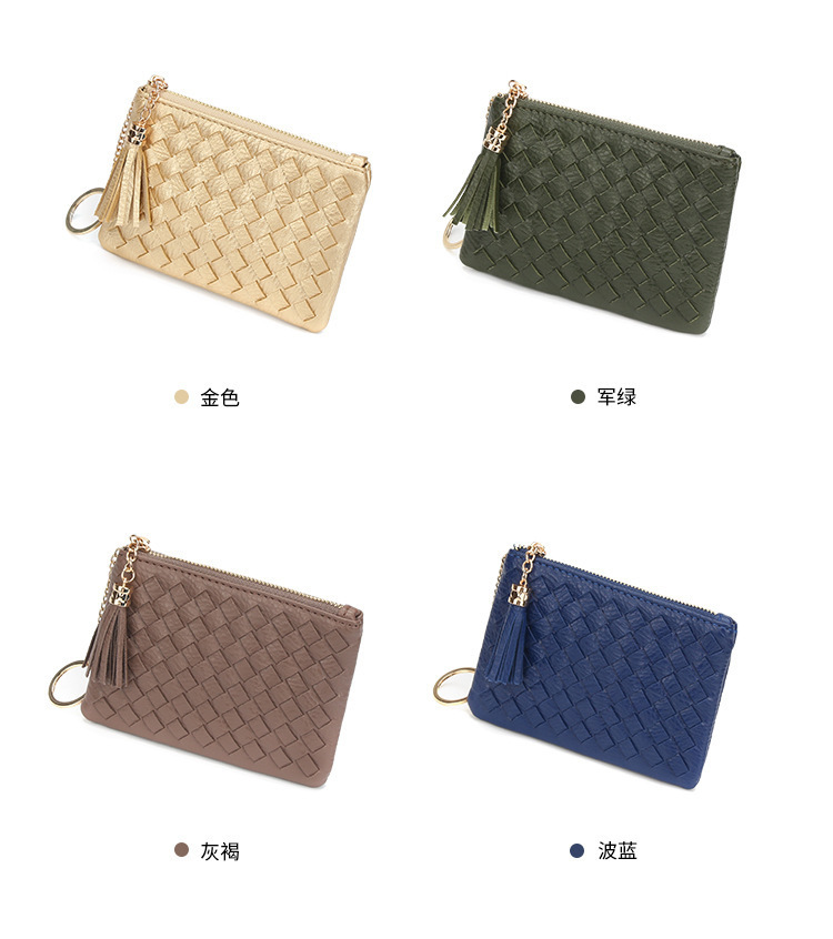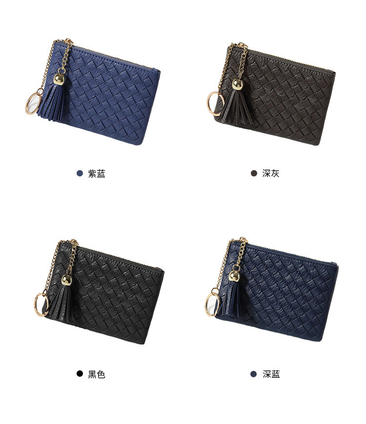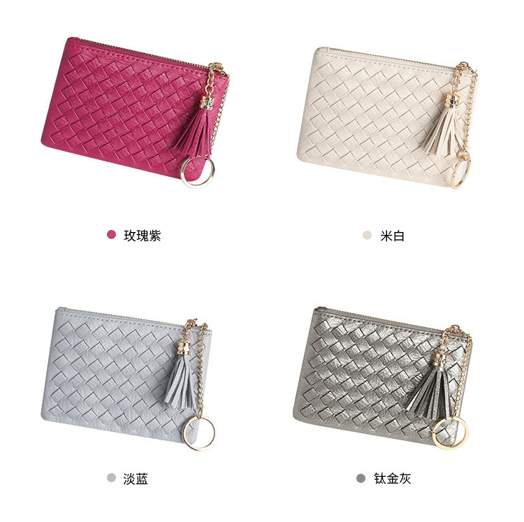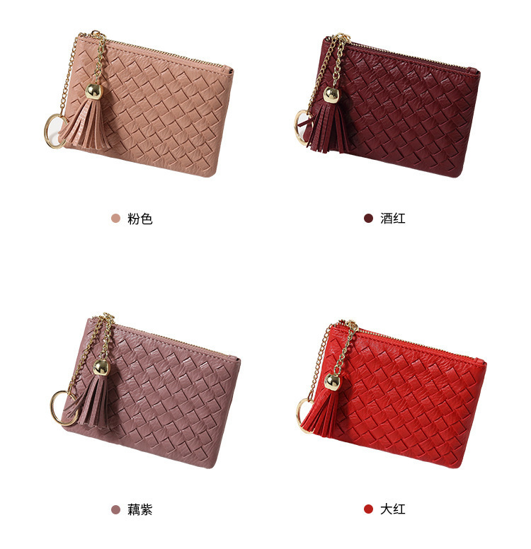包包2025新款简约韩版女包拉链手拿包流苏迷你编织零钱包钥匙卡包
