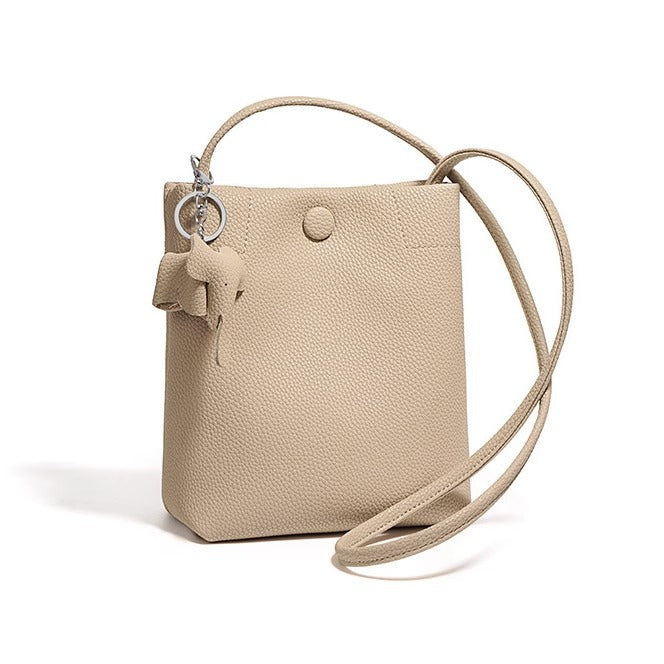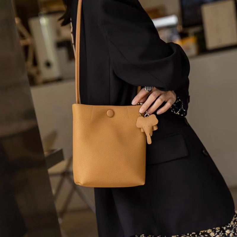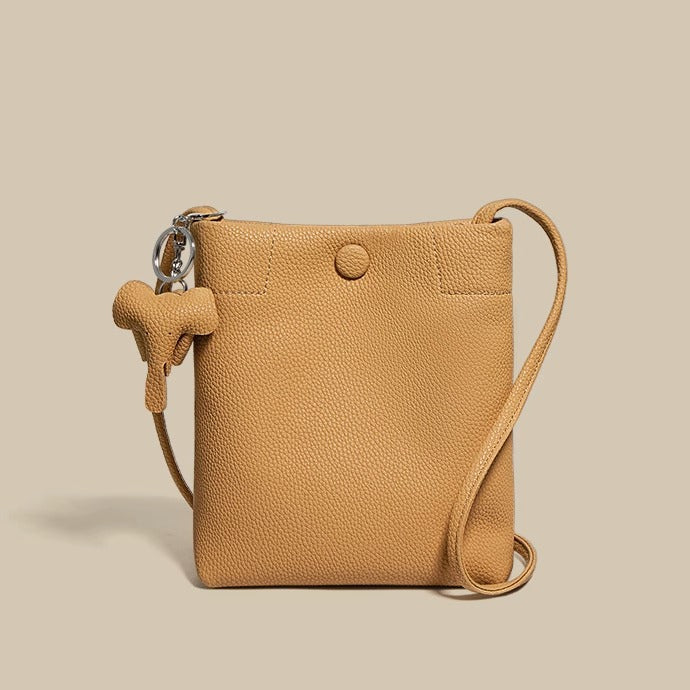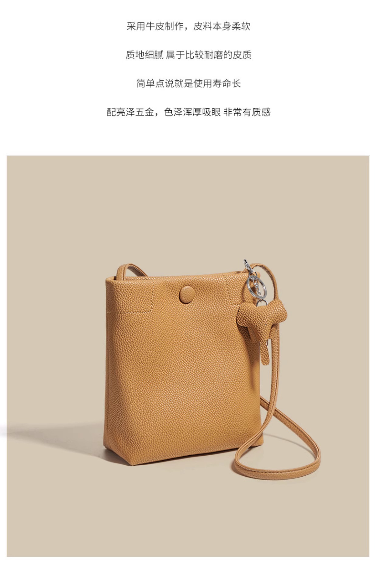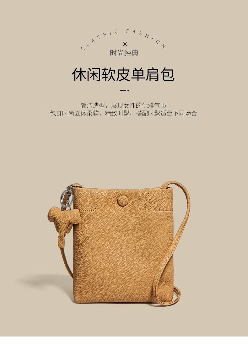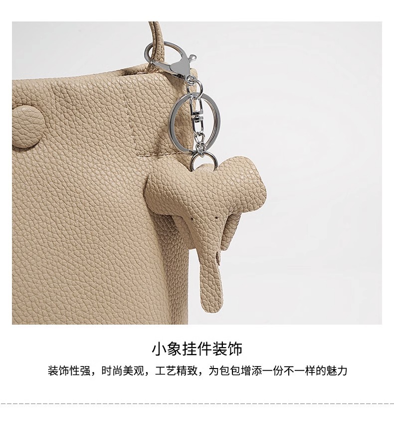 卡通小象真皮斜跨包竖款简约休闲托特包ins软皮女士单肩包小包包