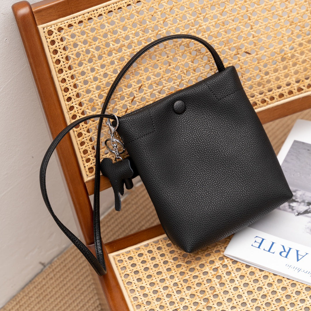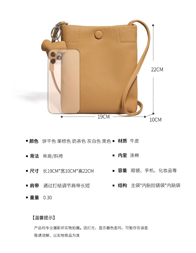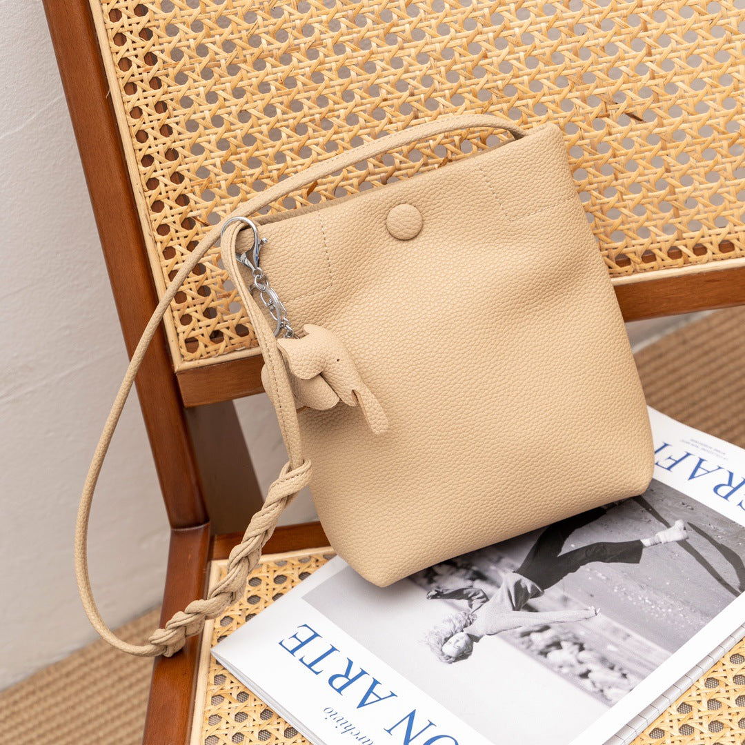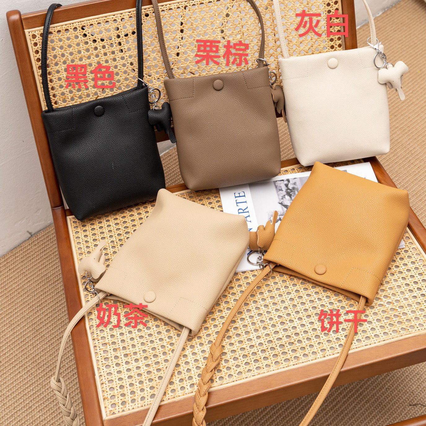 卡通小象真皮斜跨包竖款简约休闲托特包ins软皮女士单肩包小包包
