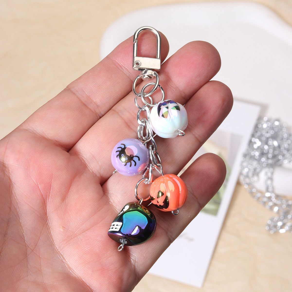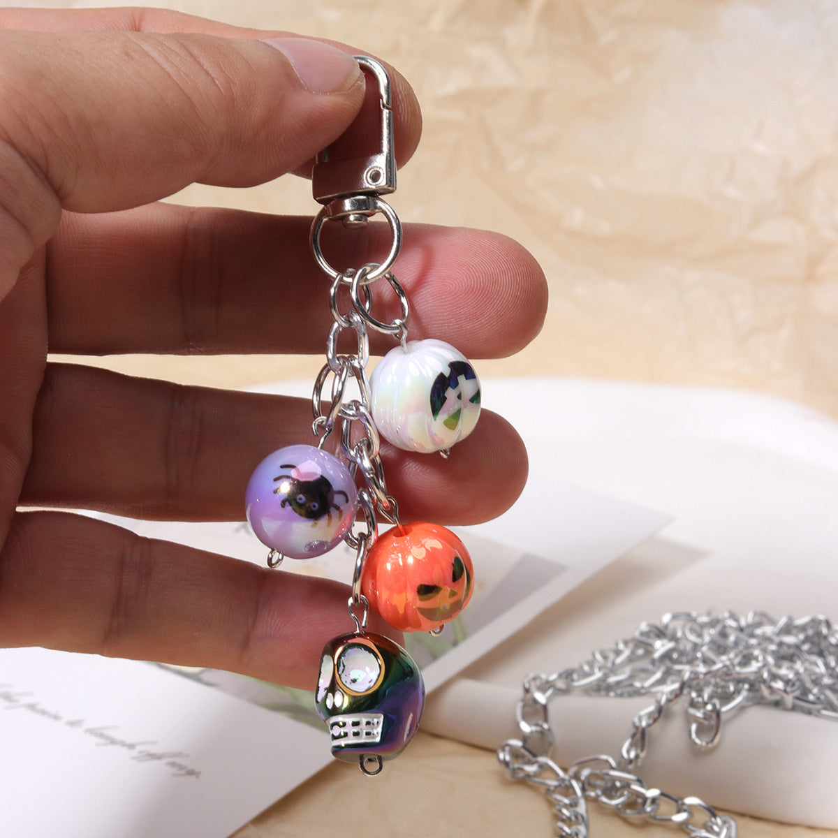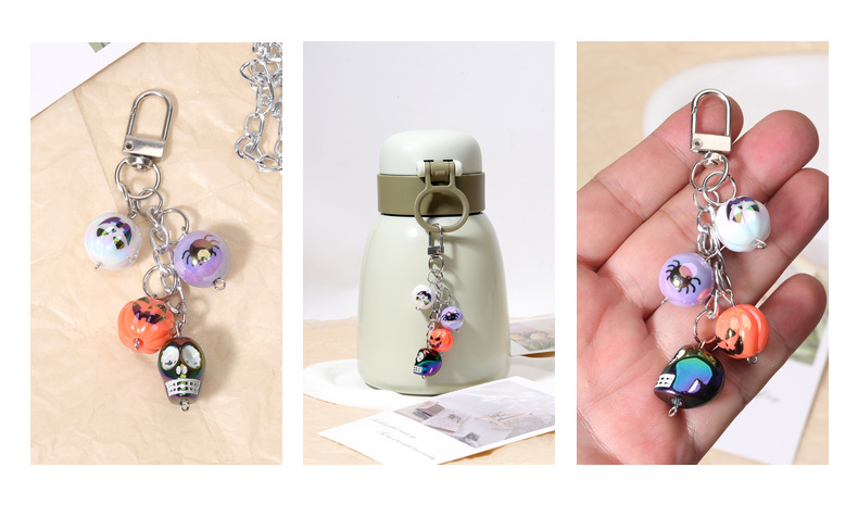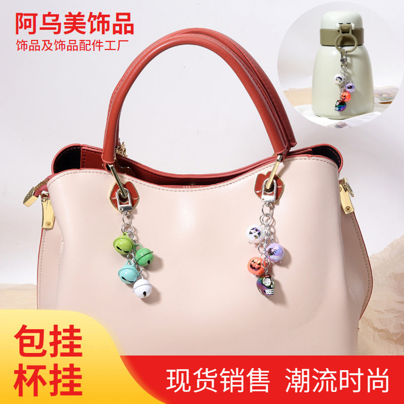 厂家直供合金铃铛链条挂件万圣节骷髅头包挂杯饰礼品挂件可混批
