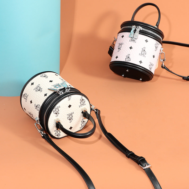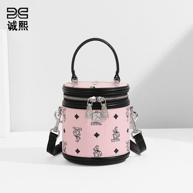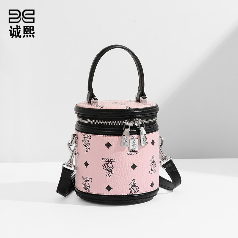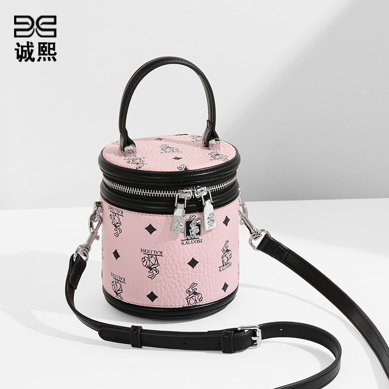 发财水桶包女印花时尚潮流兔兔新款手提圆筒包小众通勤单肩斜挎包