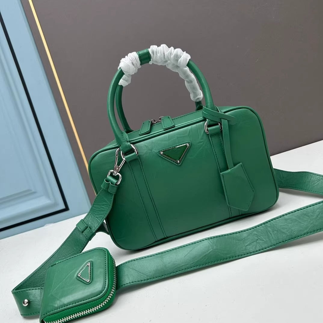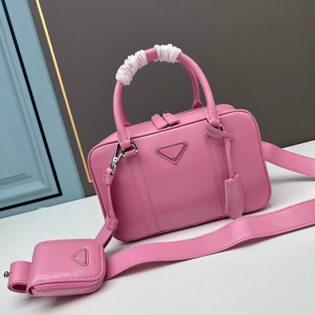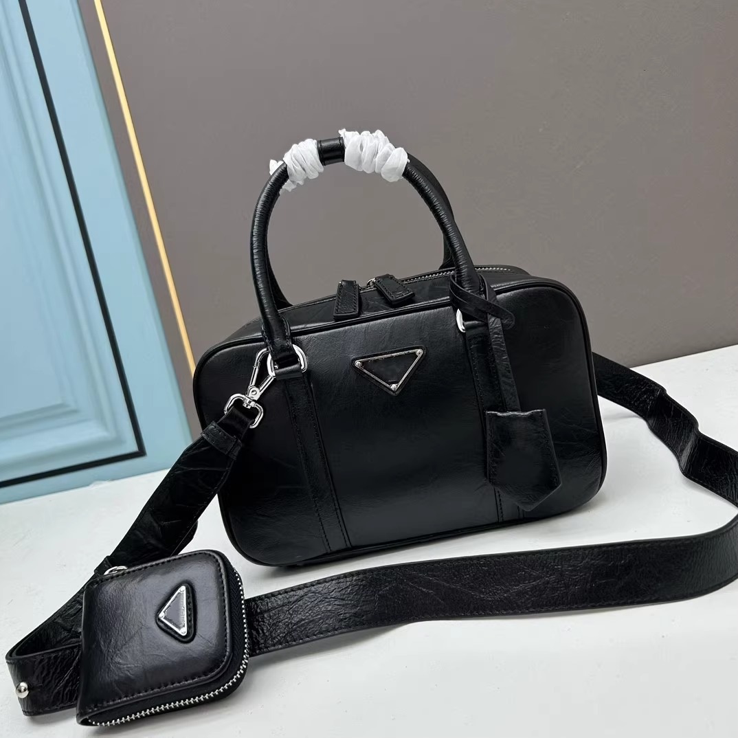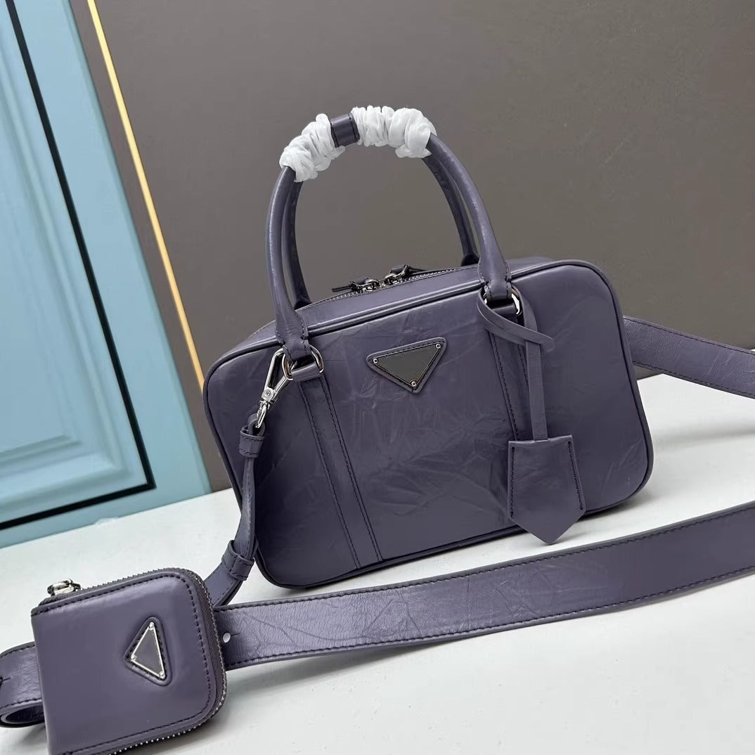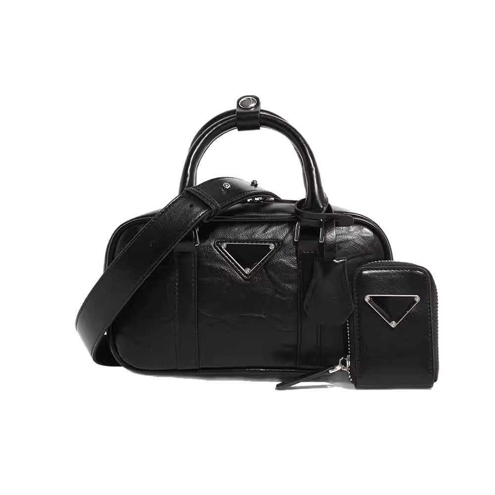 复古手提包包女2025春夏新款百搭保龄球枕头包单肩斜挎包真皮女包