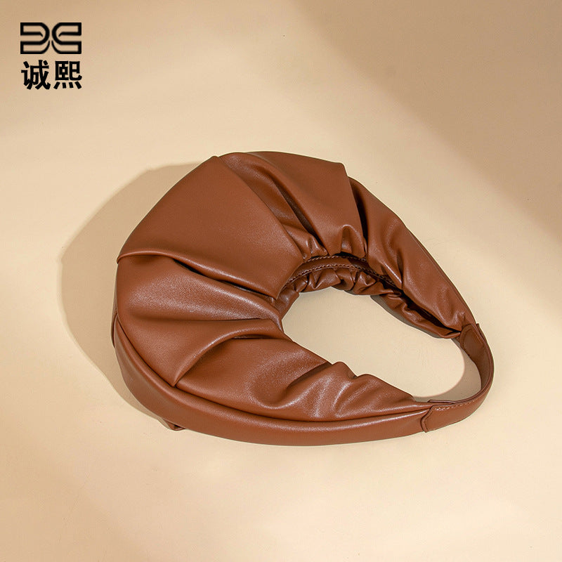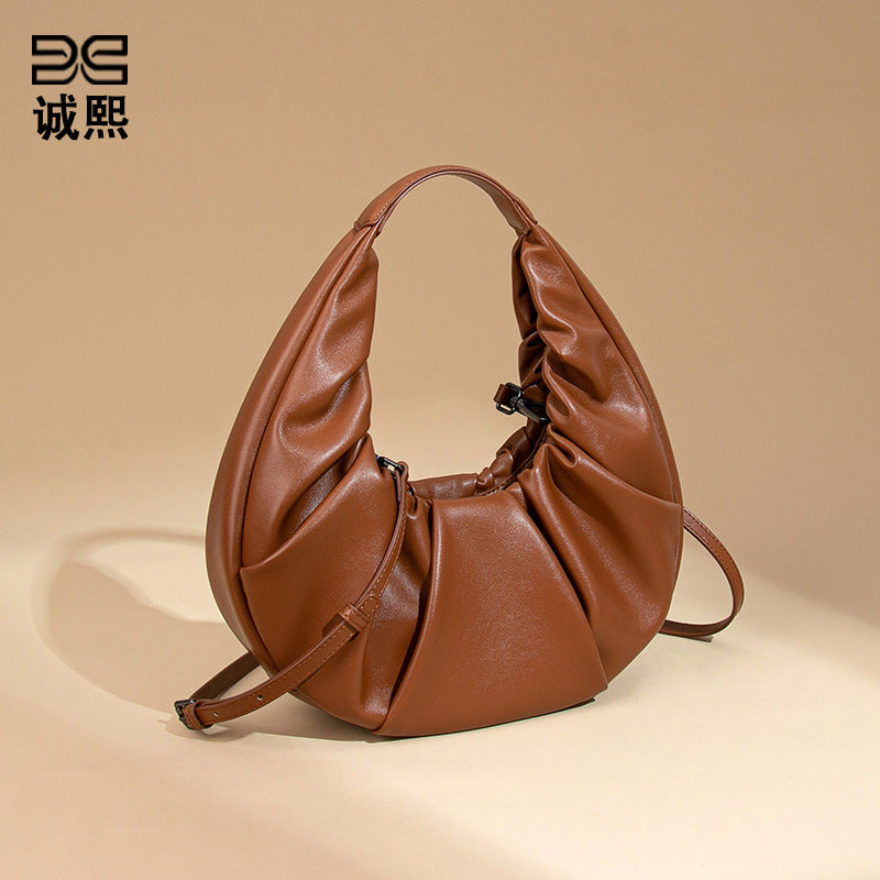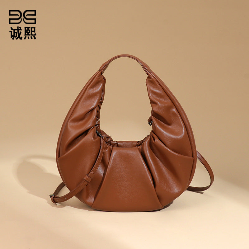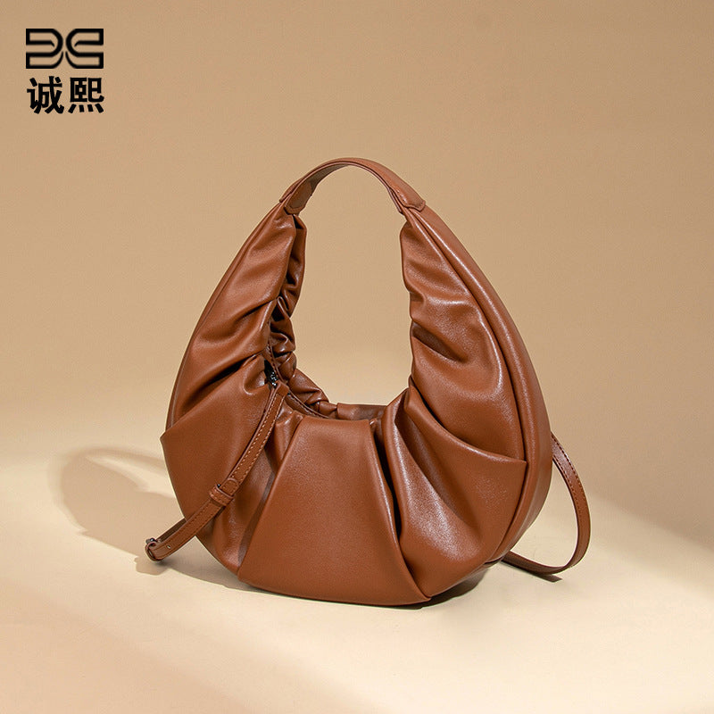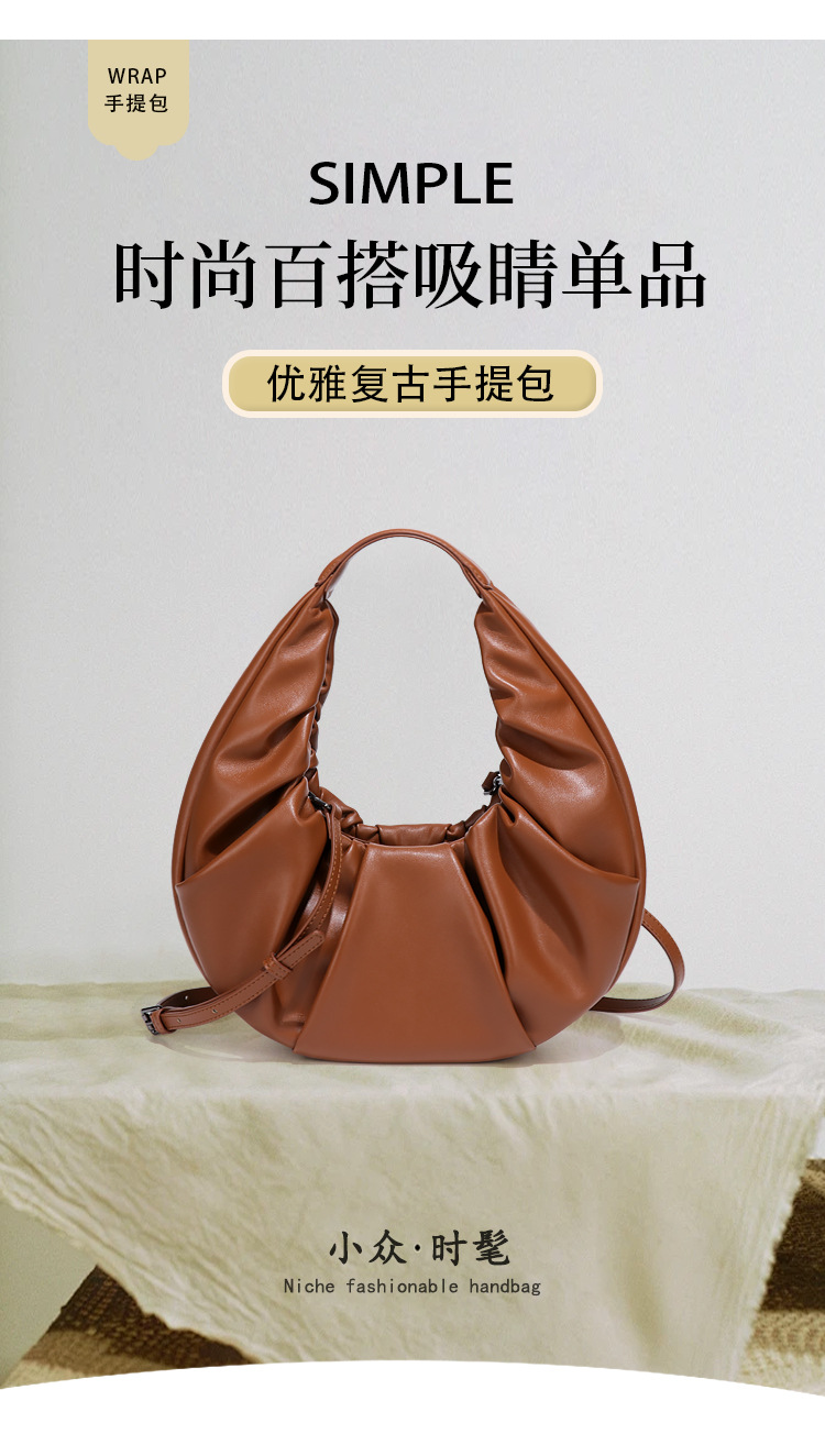 复古百搭皱褶新月包手提简约高级感定制单肩女包新款斜挎饺子包包
