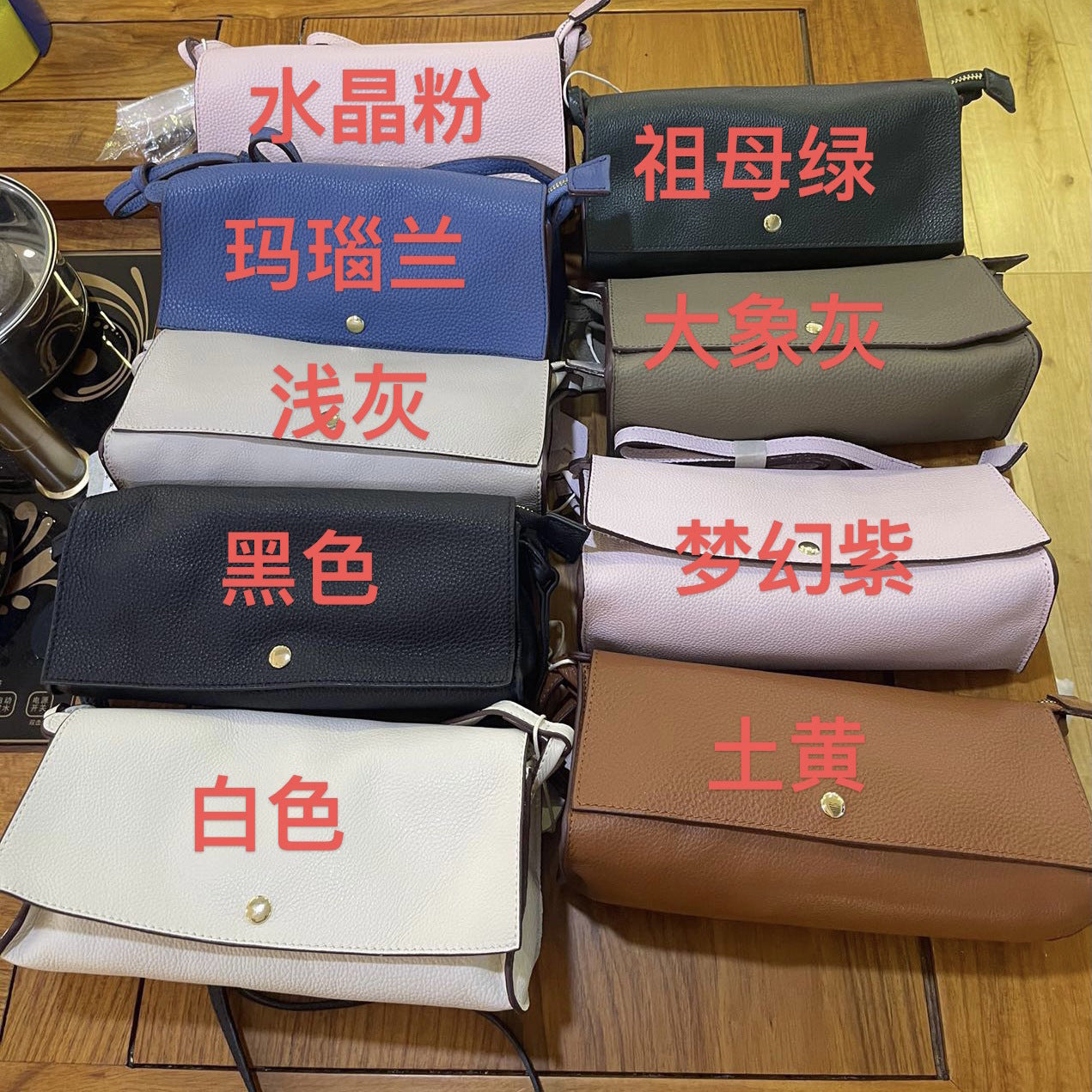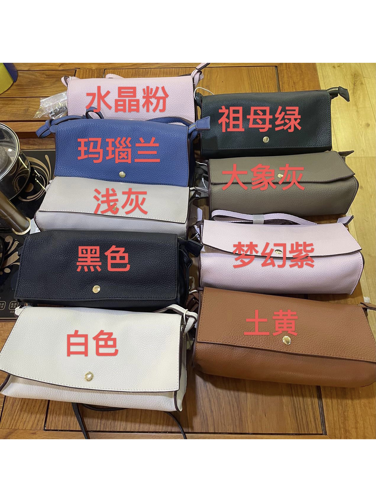 颜色#黑色,棕色,灰色,大红色,土黄色,米白色,牛油果绿色,天方夜谭紫色,葡萄紫色,祖母绿色