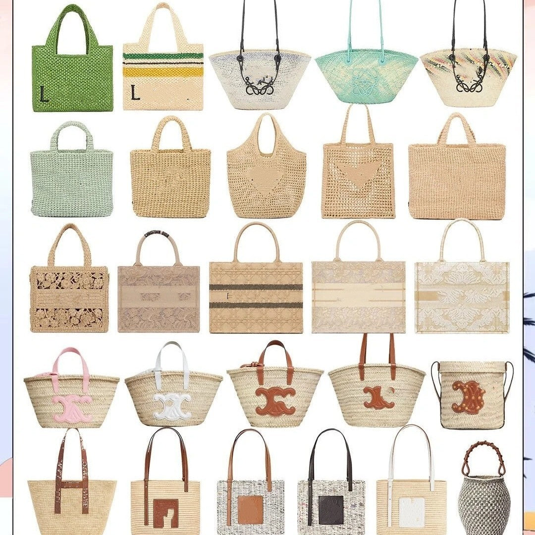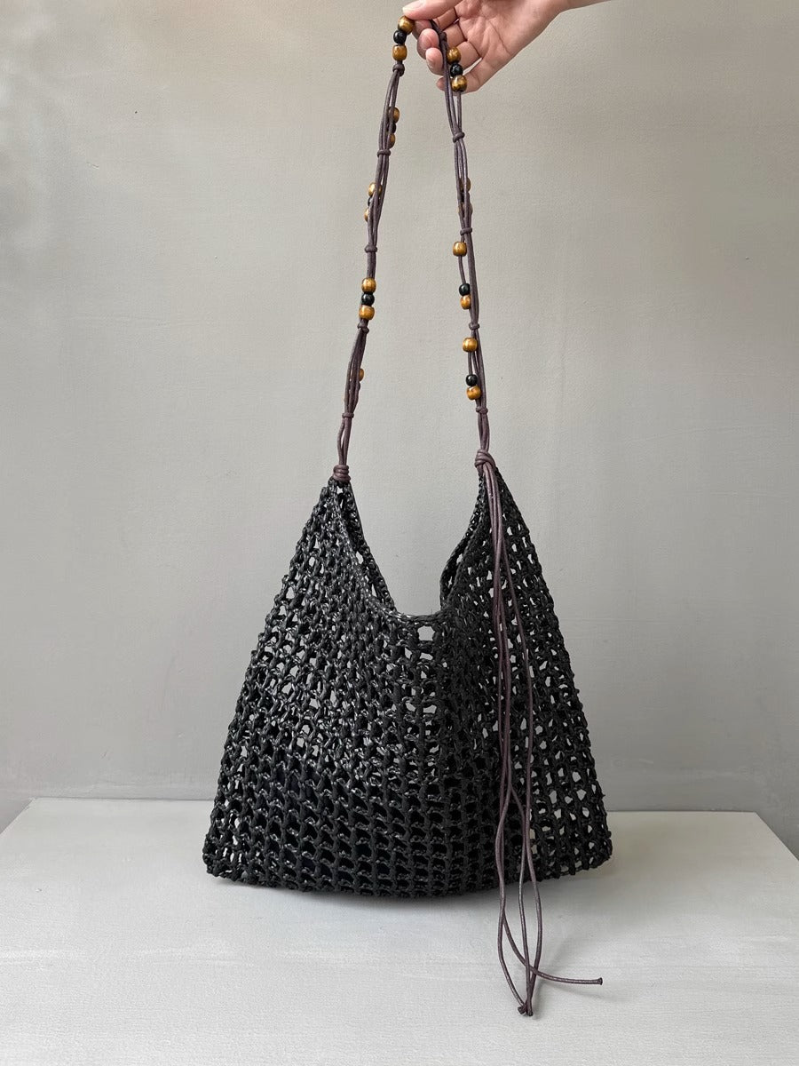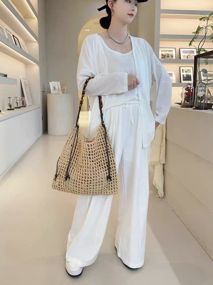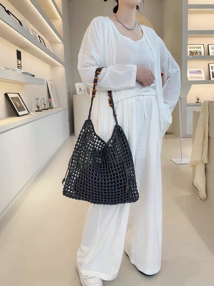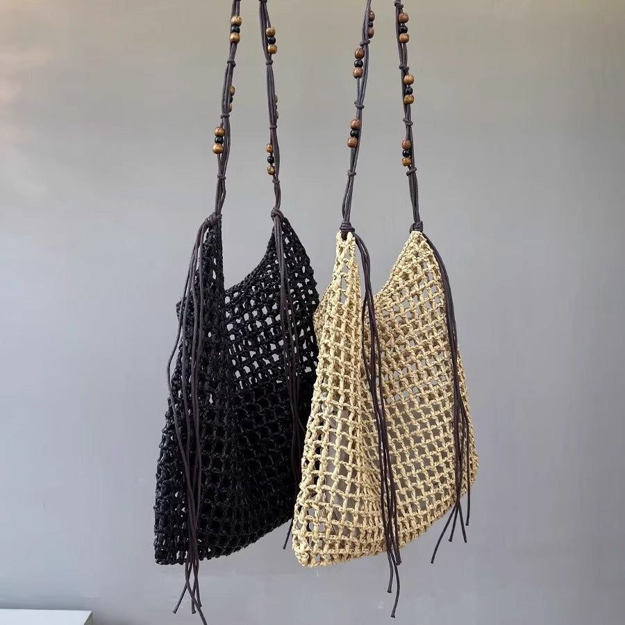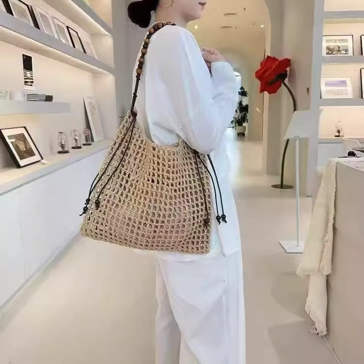 夏天沙滩包拉菲草编织包串珠复古腋下包大容量购物包单肩托特包女