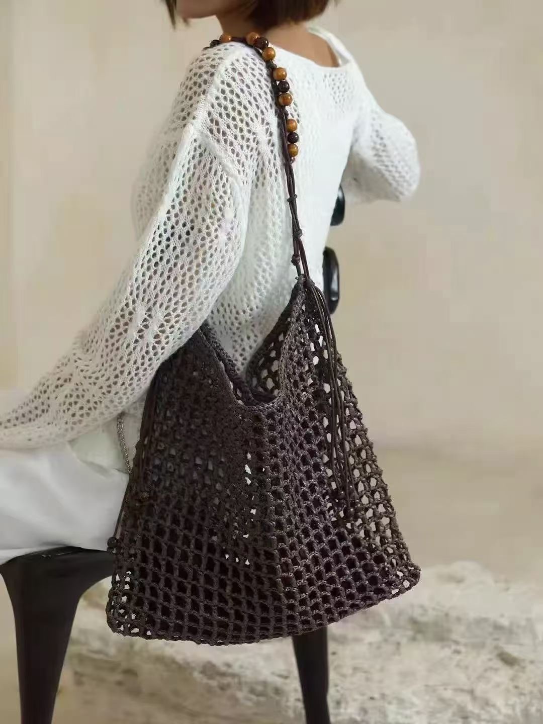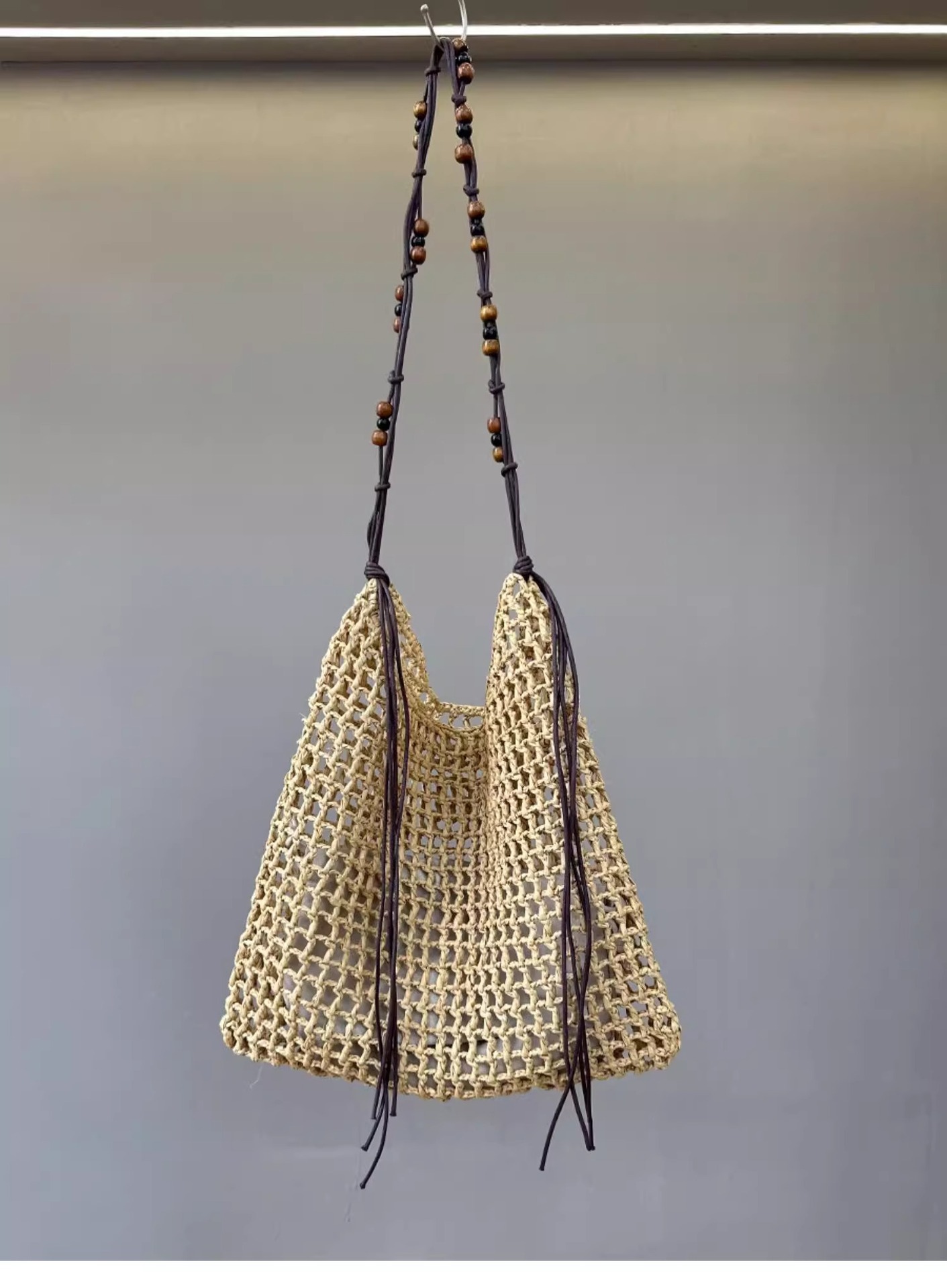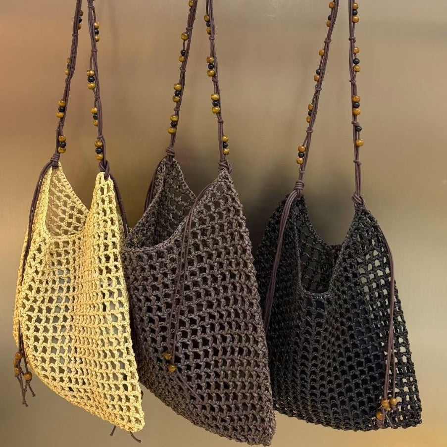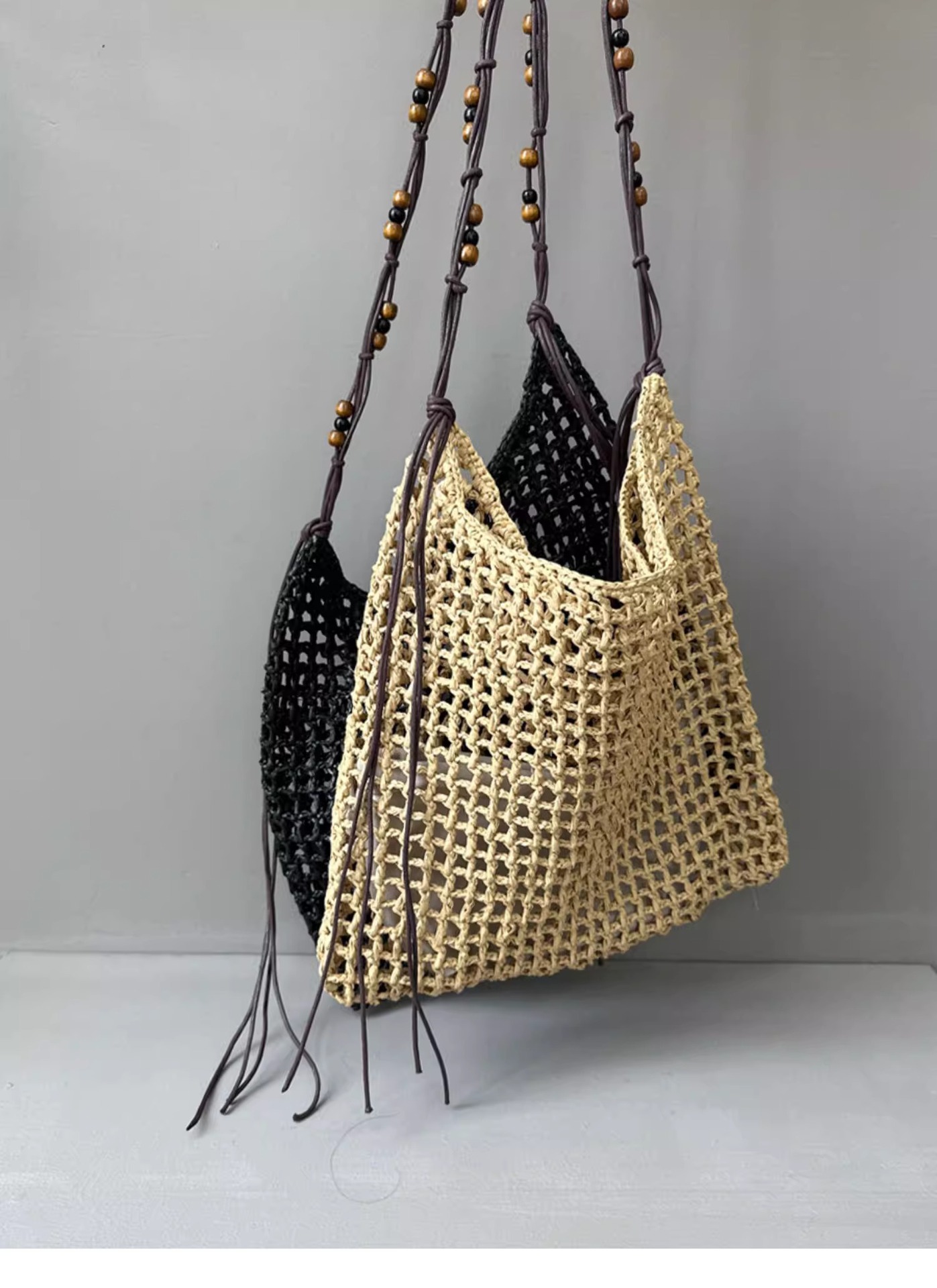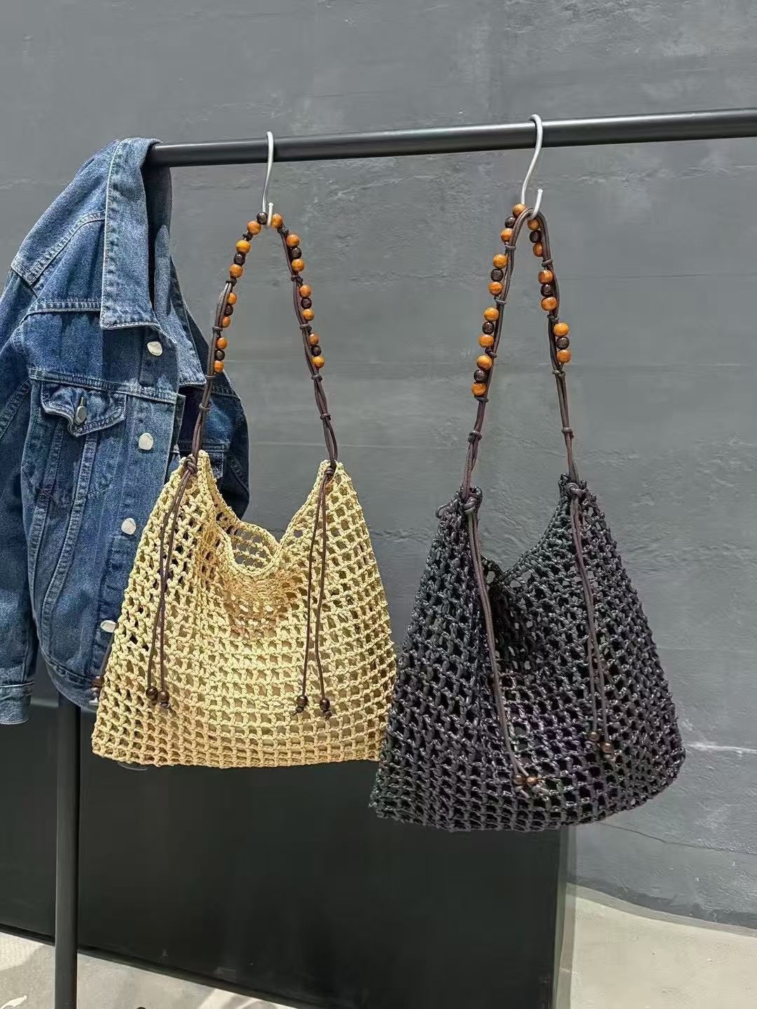 夏天沙滩包拉菲草编织包串珠复古腋下包大容量购物包单肩托特包女