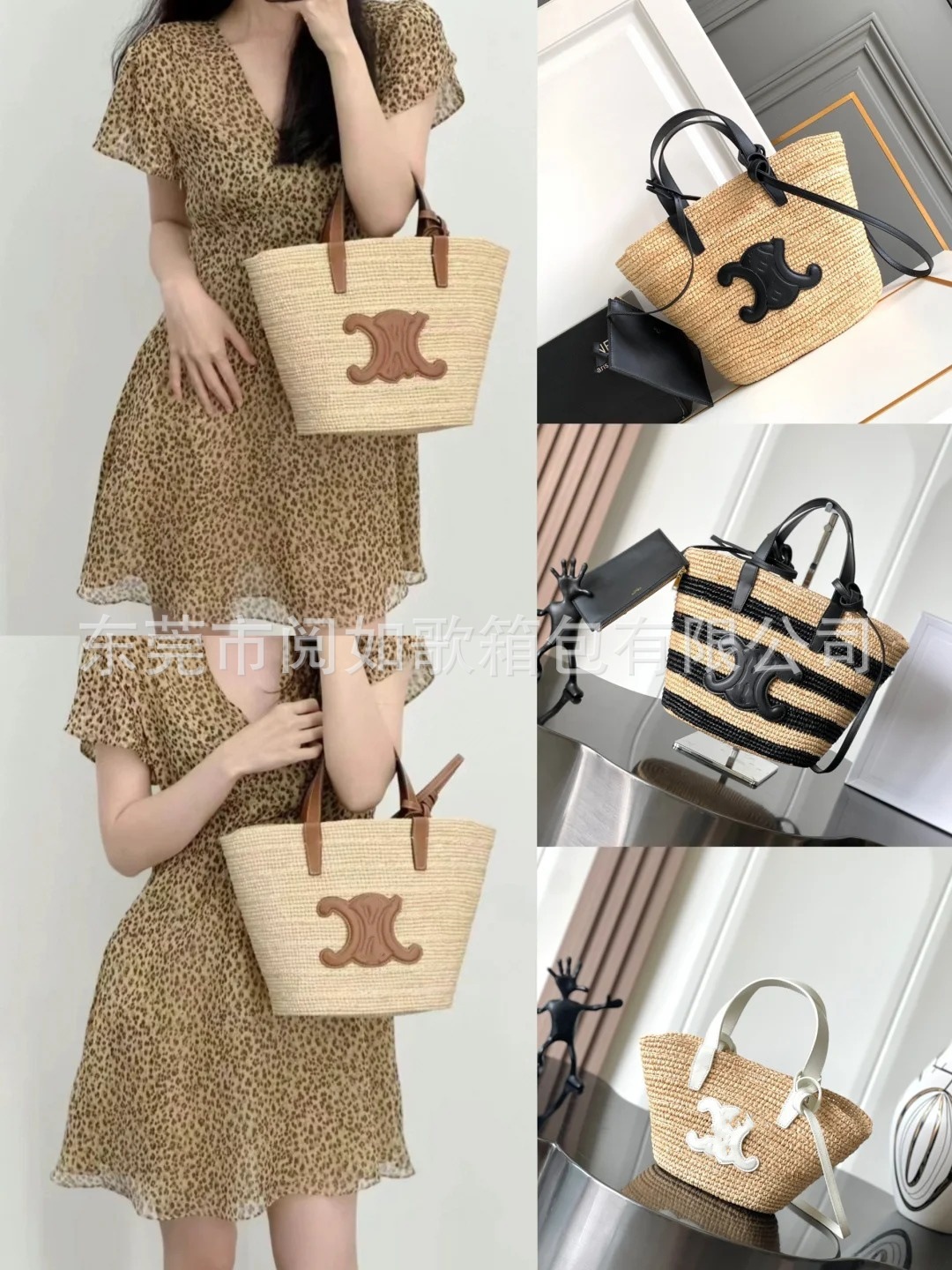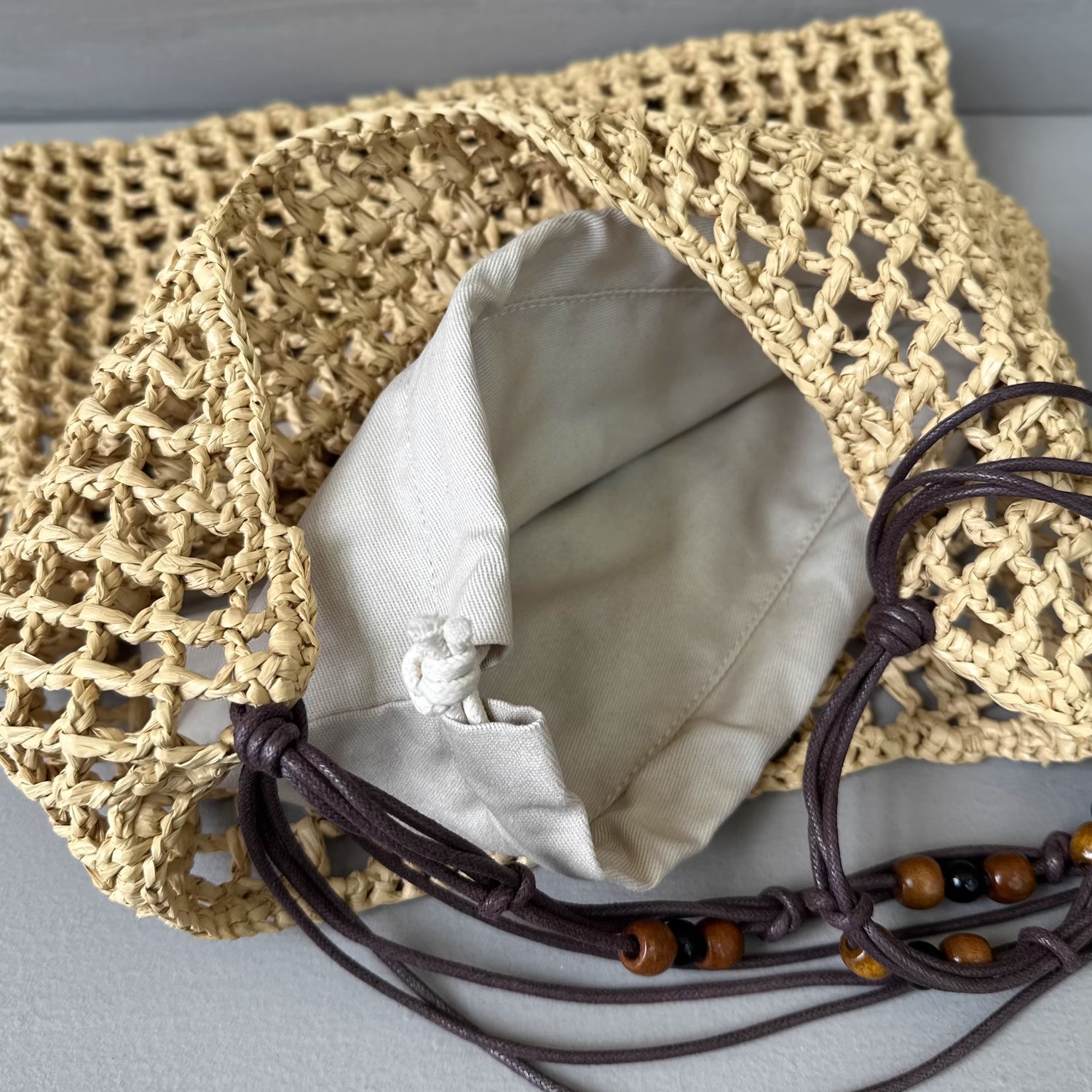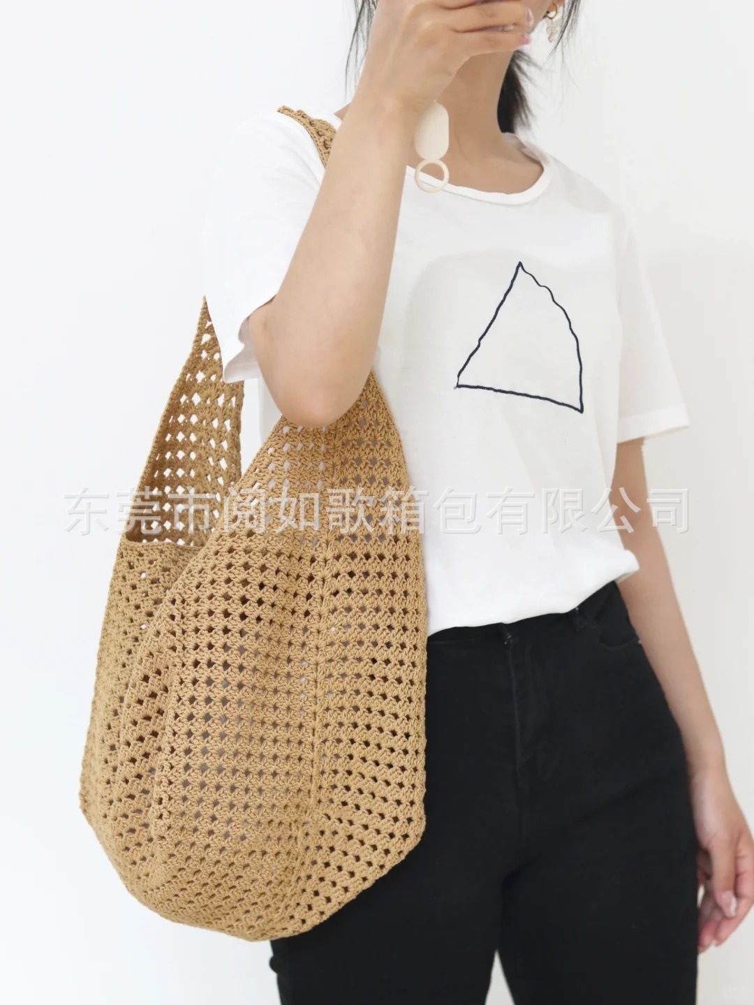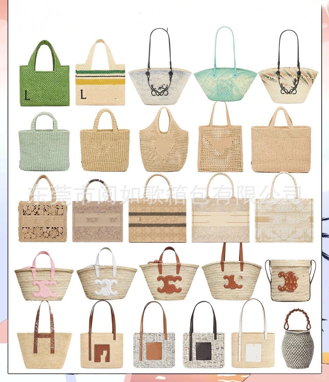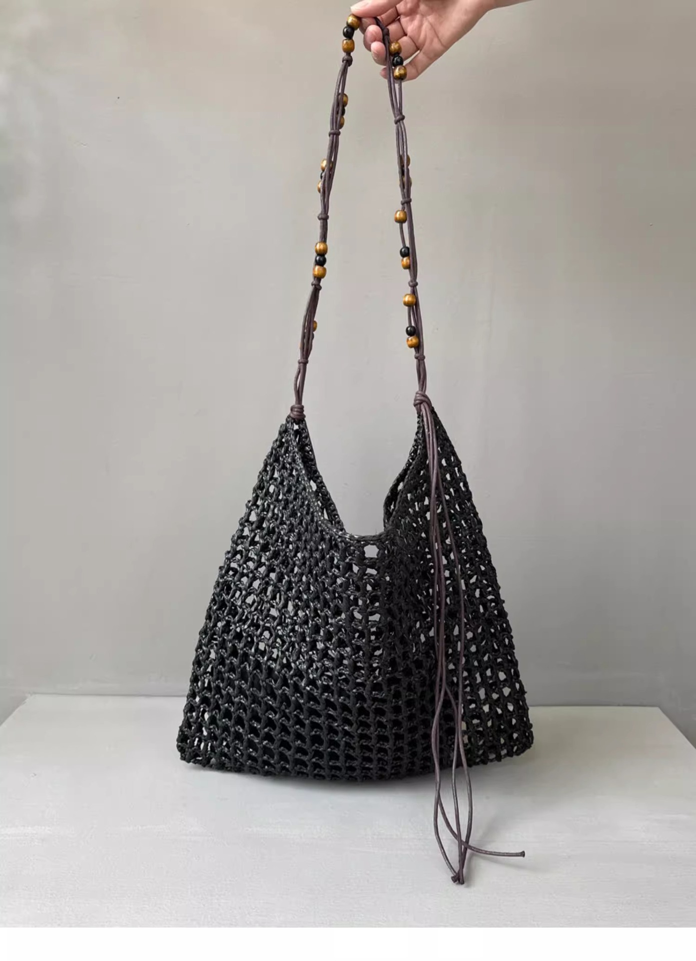 夏天沙滩包拉菲草编织包串珠复古腋下包大容量购物包单肩托特包女