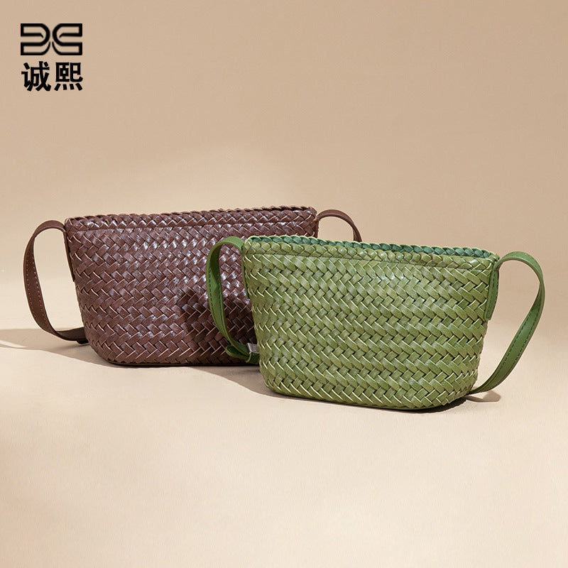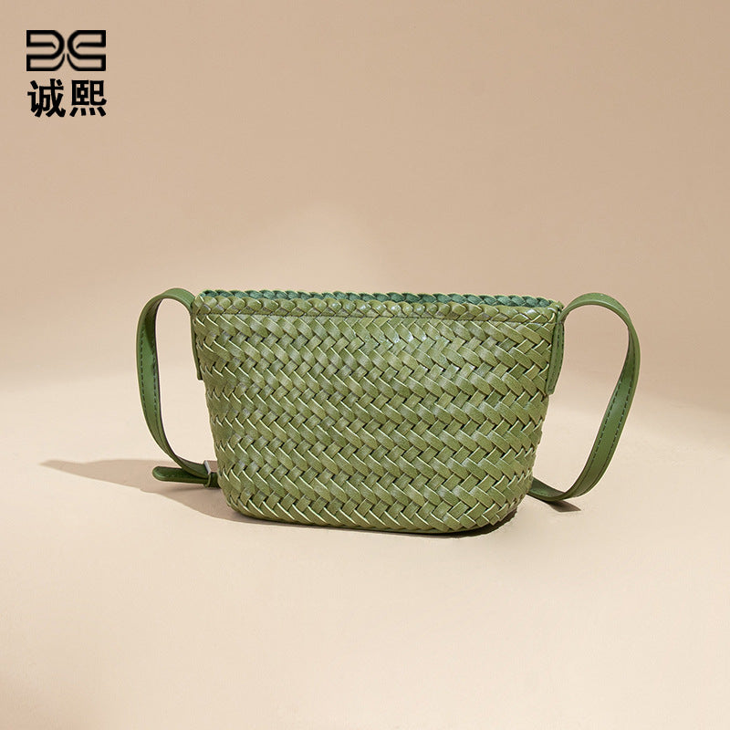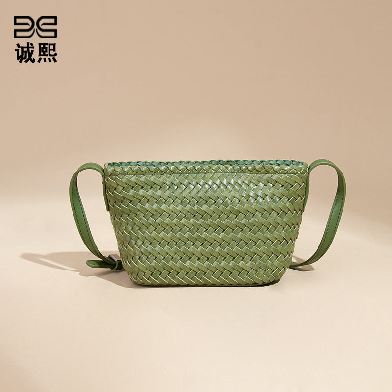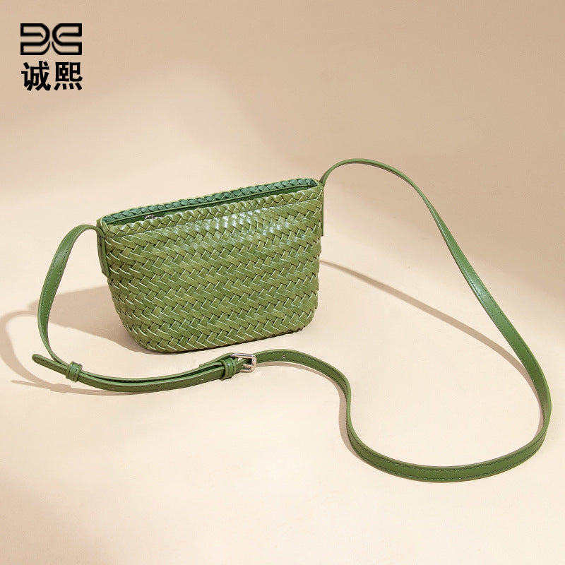 夏季新款百搭小众编织女包清新时尚单肩斜跨包休闲轻便复古小方包