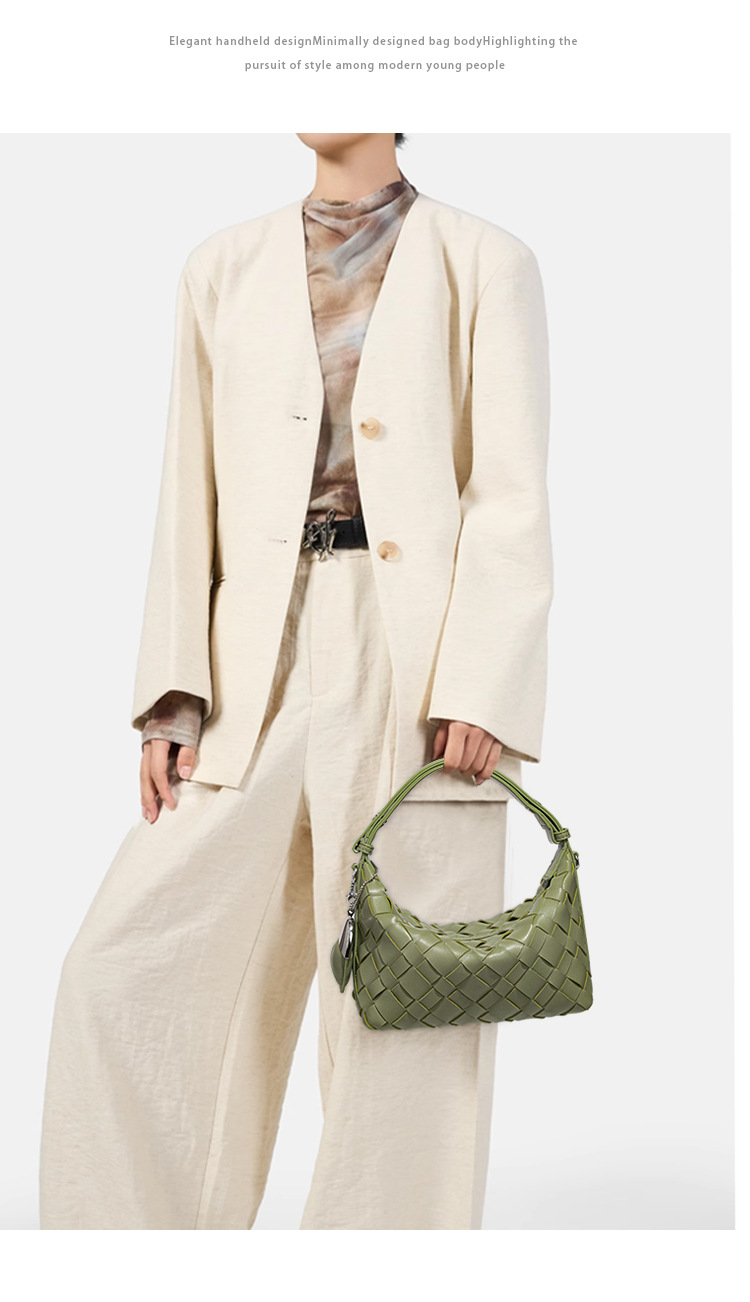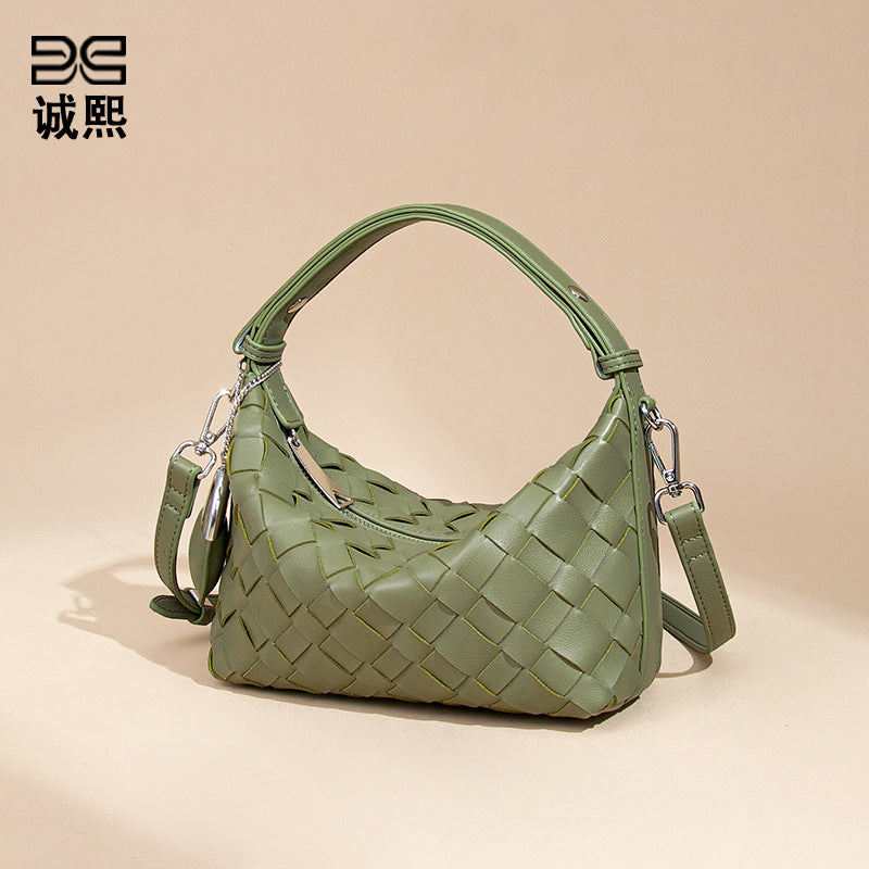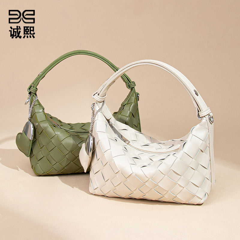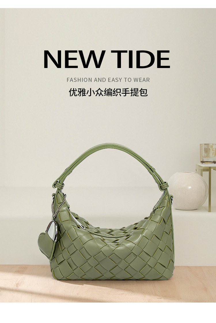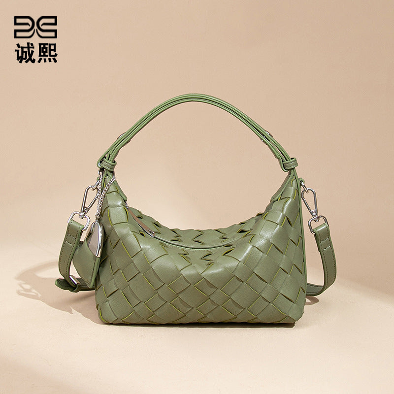 夏季百搭小清新斜跨女包软皮纯色编织包休闲手拎饭盒包单肩腋下包