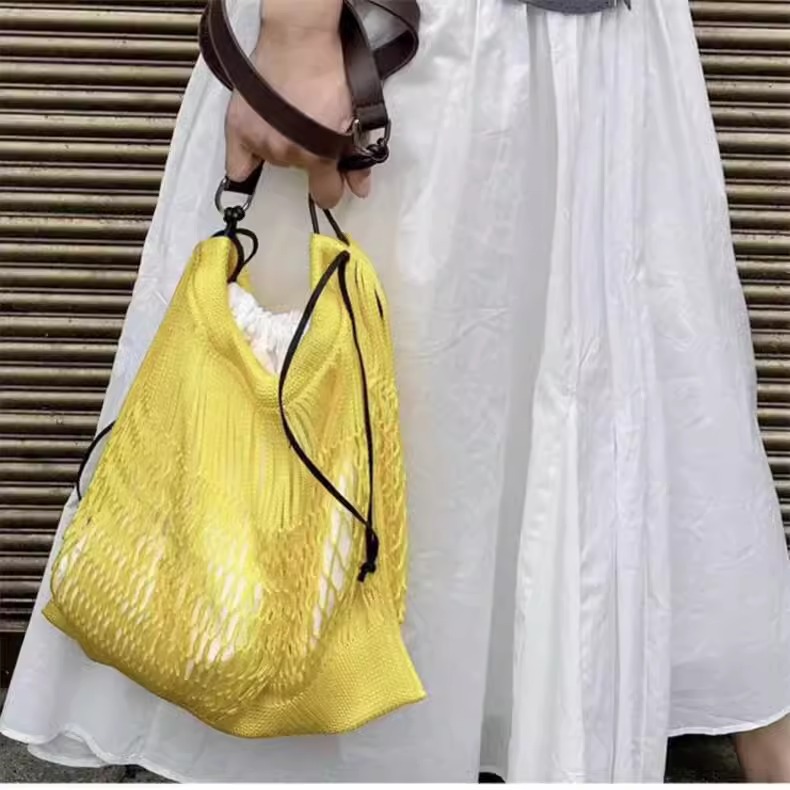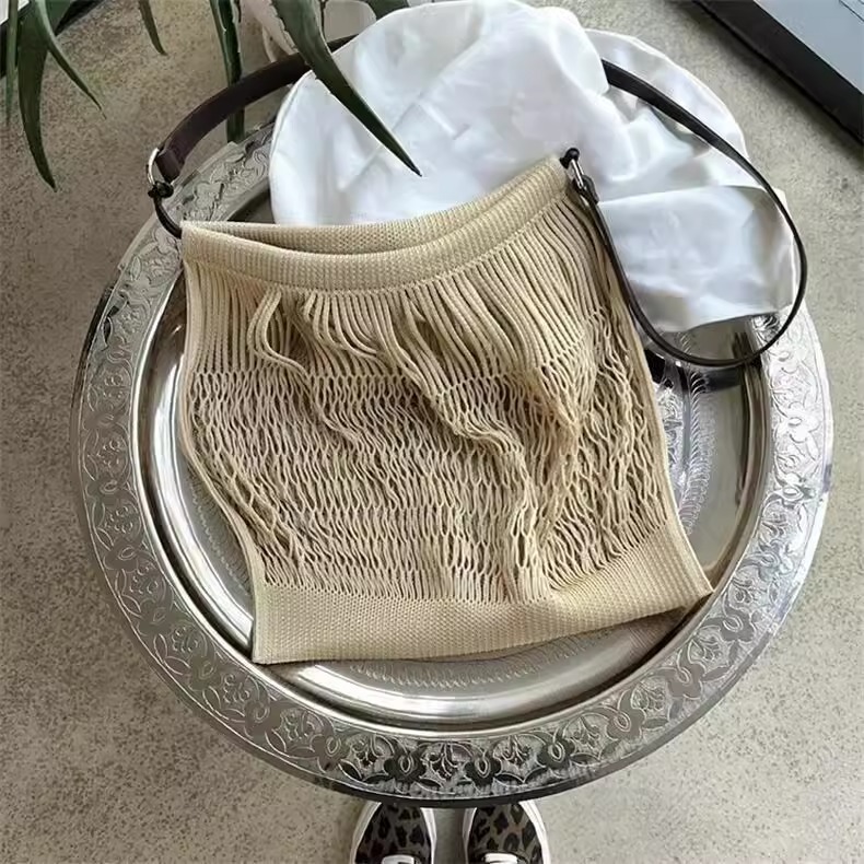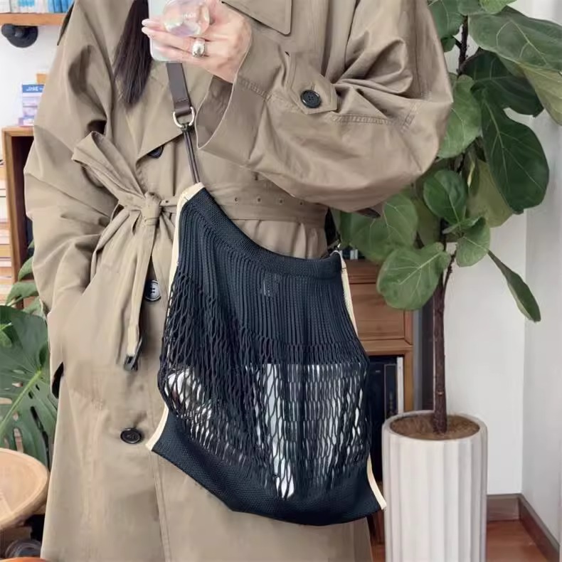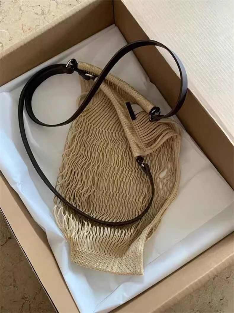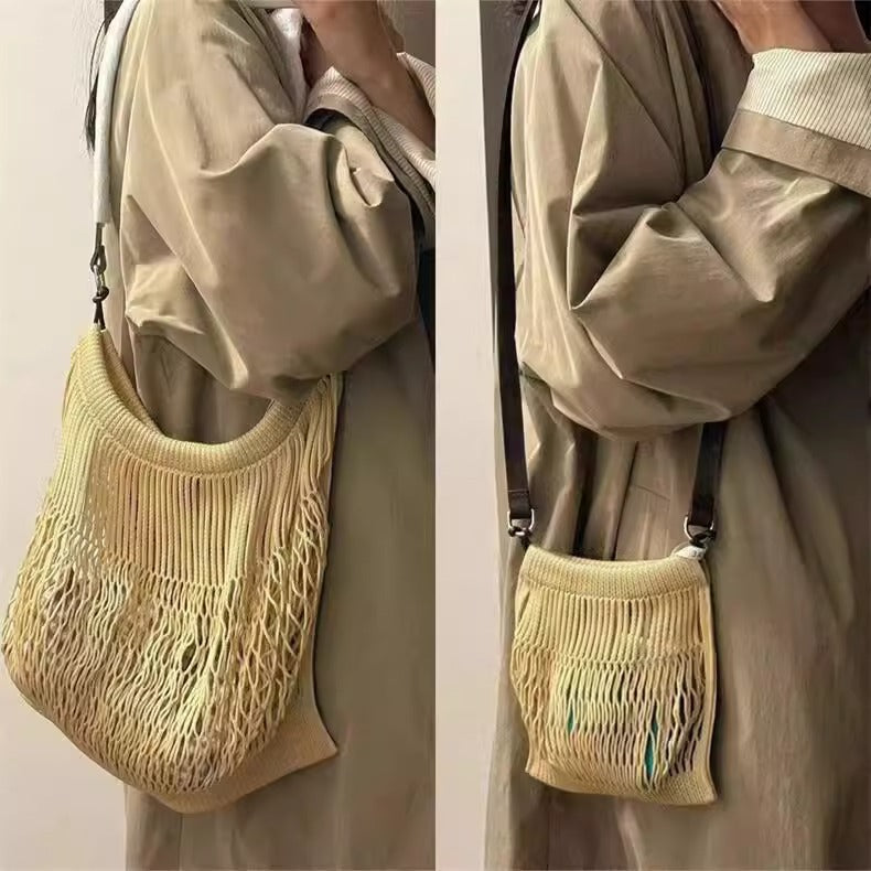 夏日沙滩包小众设计编织网兜镂空购物袋男女同款大容量单肩斜跨包