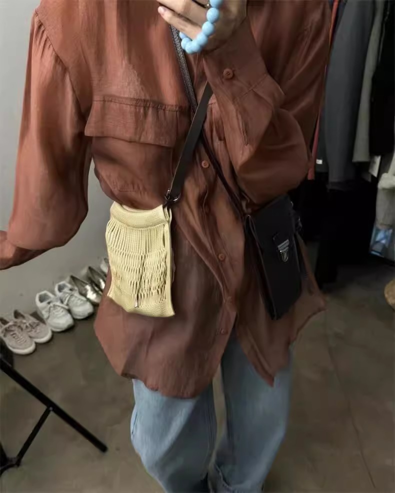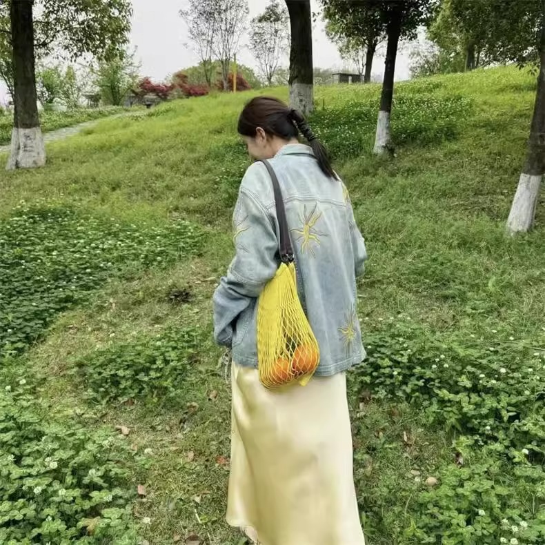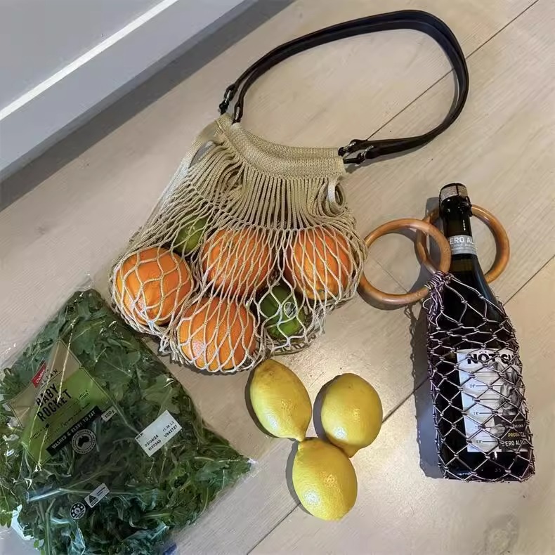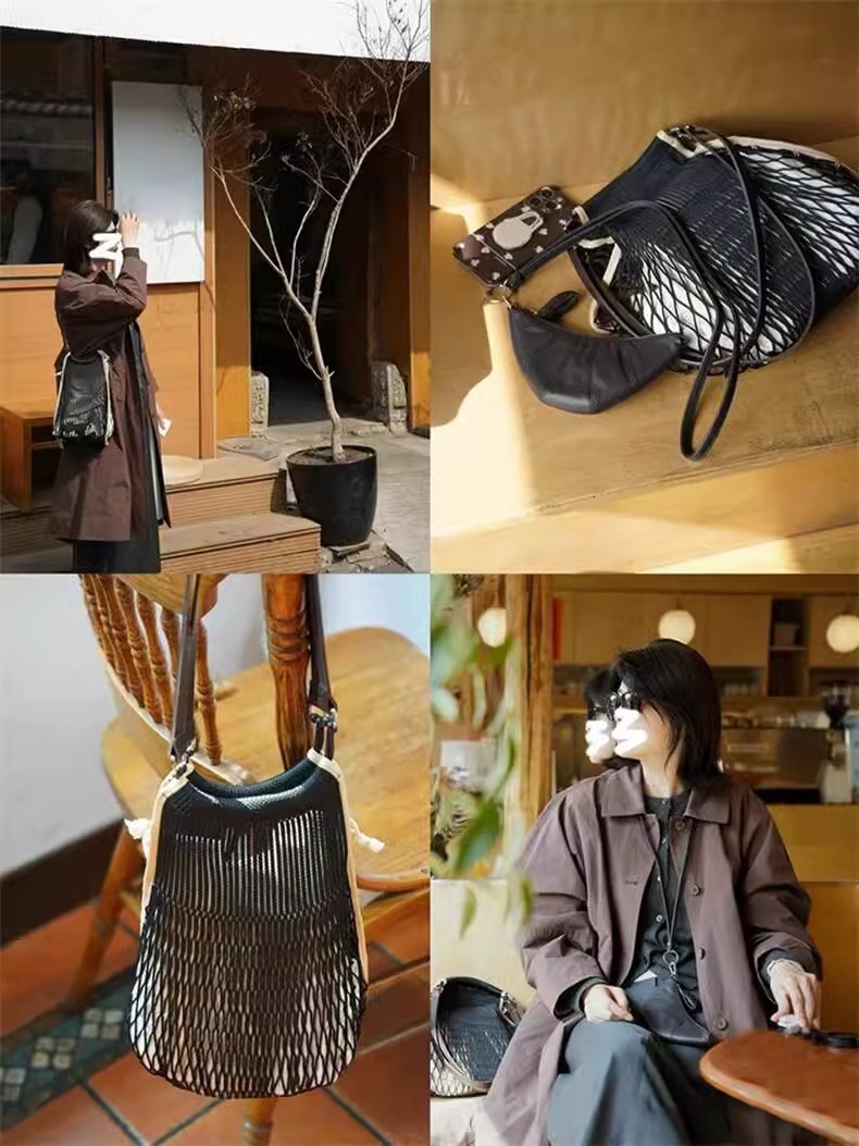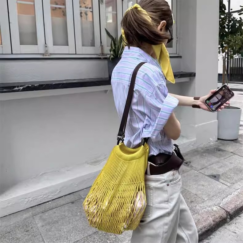 夏日沙滩包小众设计编织网兜镂空购物袋男女同款大容量单肩斜跨包