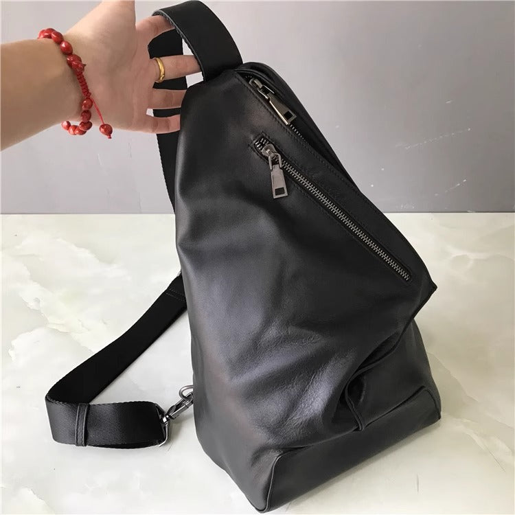 外贸亚马逊头层牛皮男女胸包通勤百搭斜挎包休闲真皮包一件代发