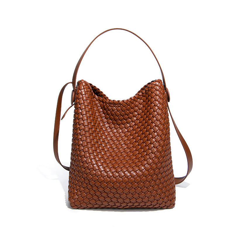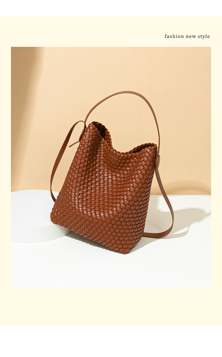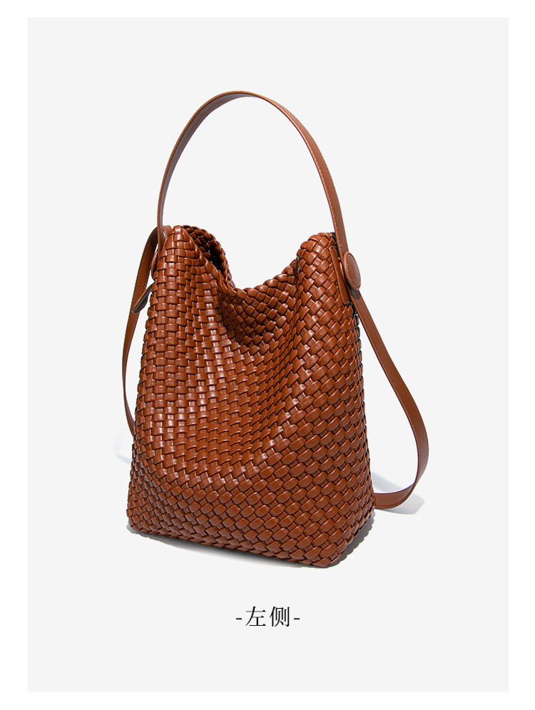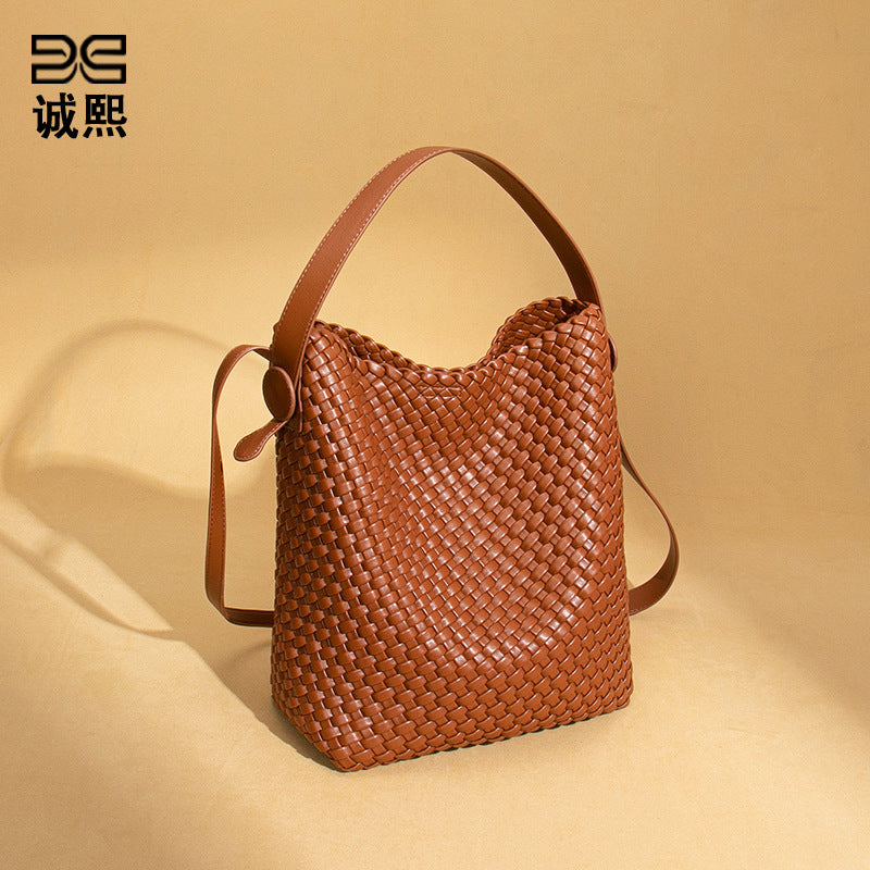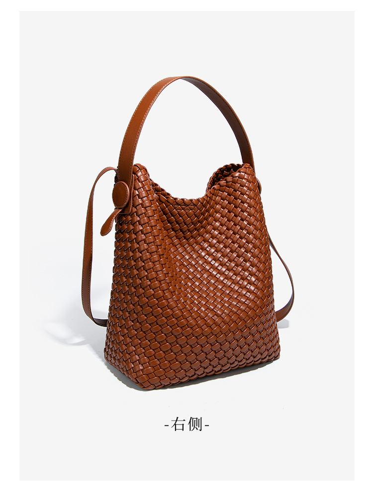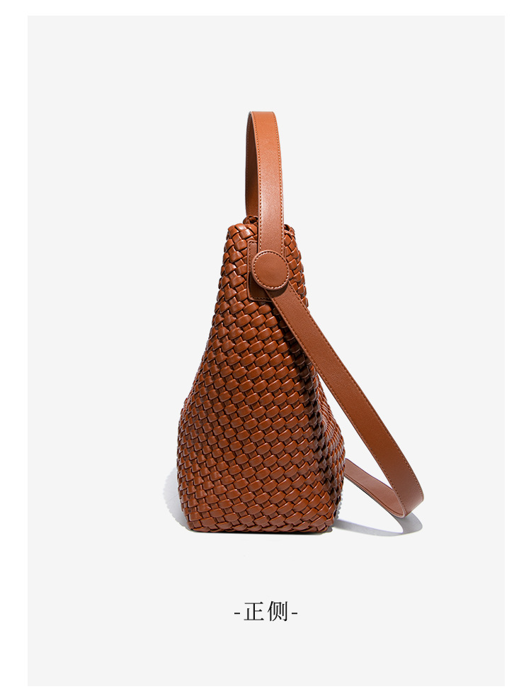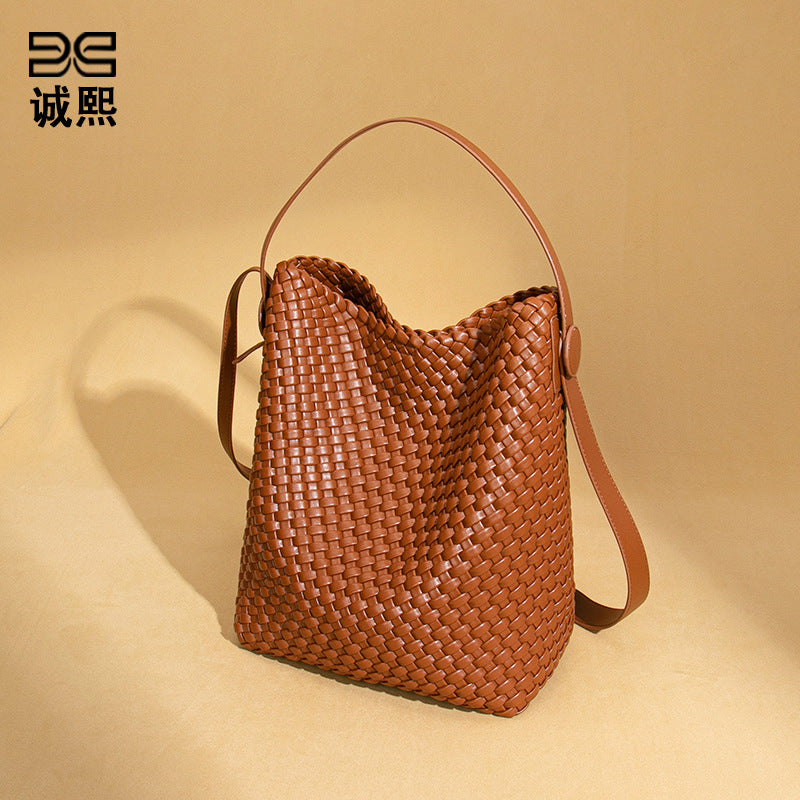 外贸复古大容量水桶包真皮单肩腋下时尚编织女包高级感手提子母包