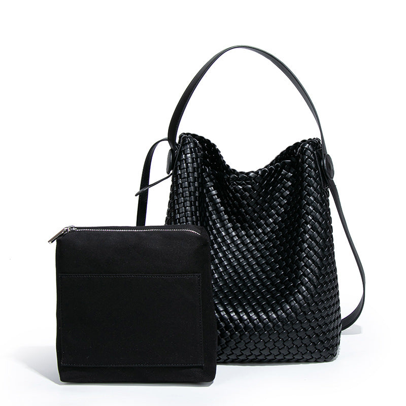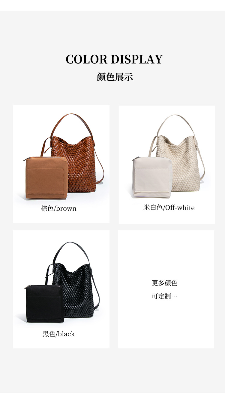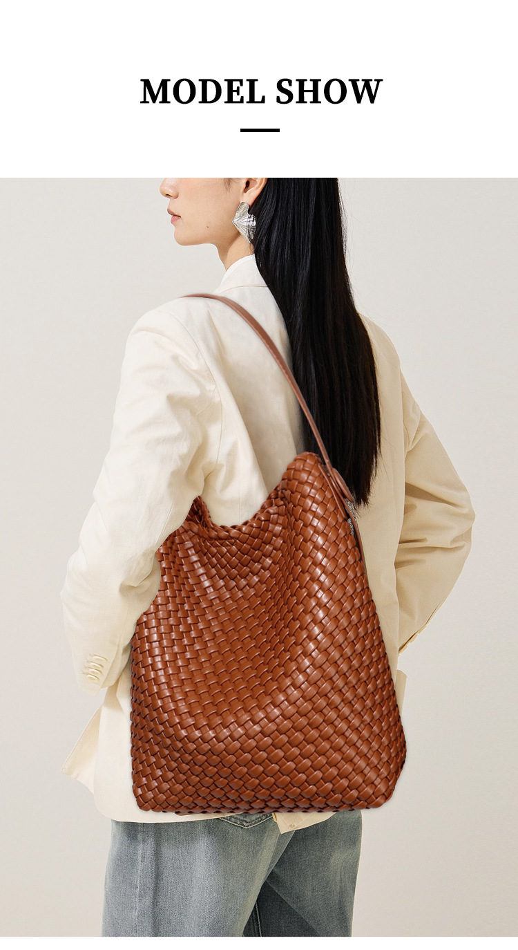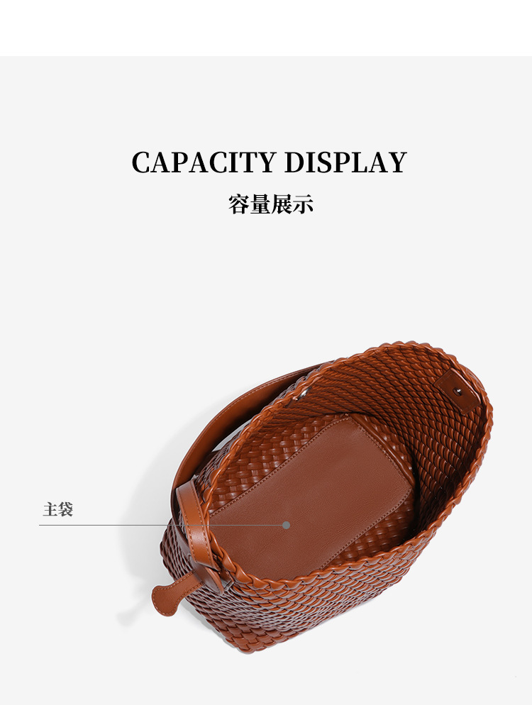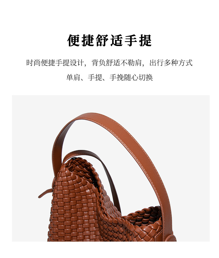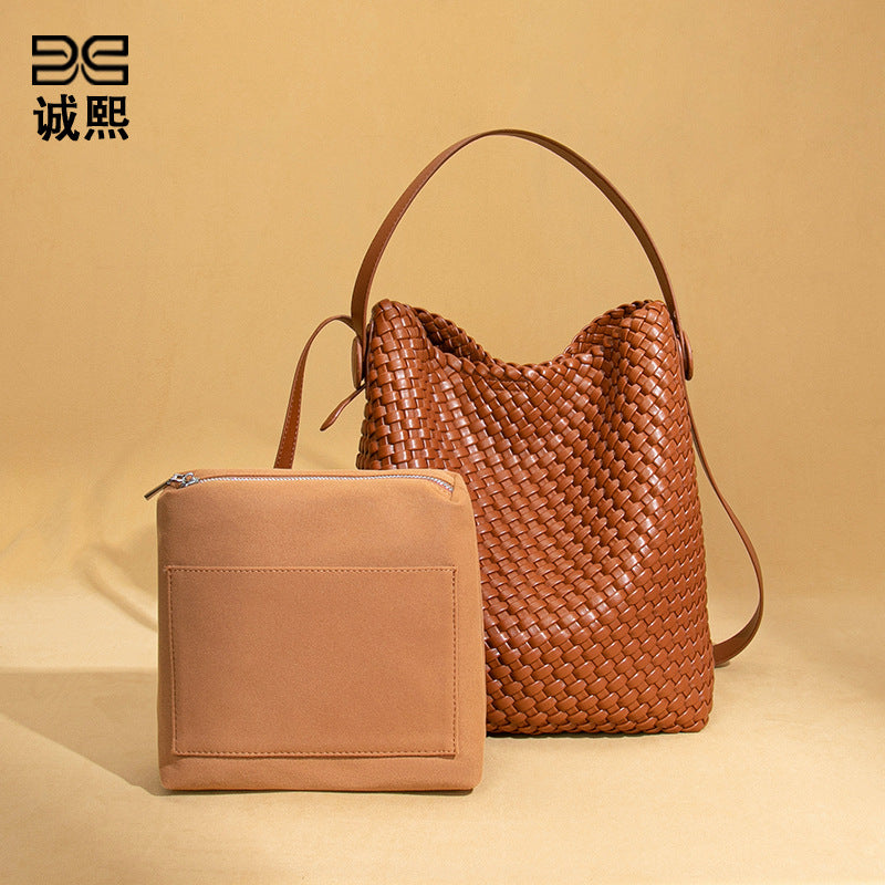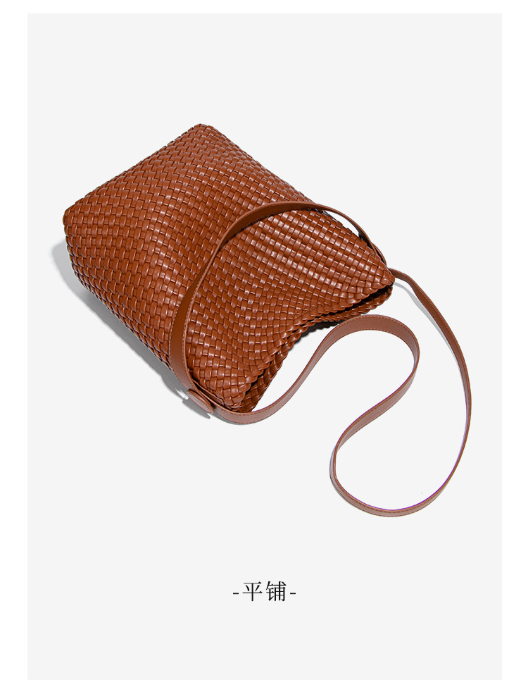 外贸复古大容量水桶包真皮单肩腋下时尚编织女包高级感手提子母包