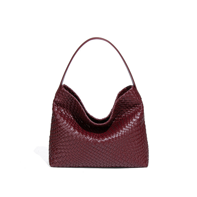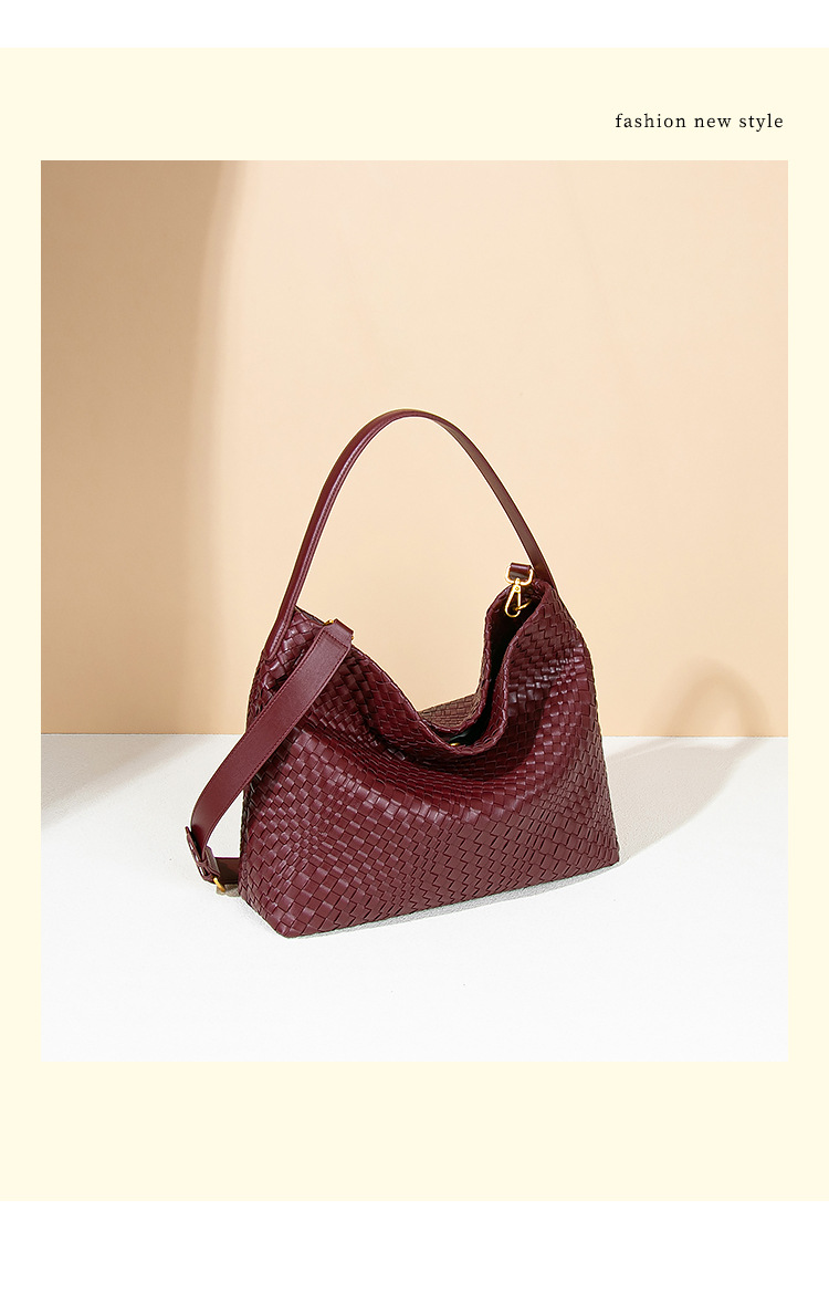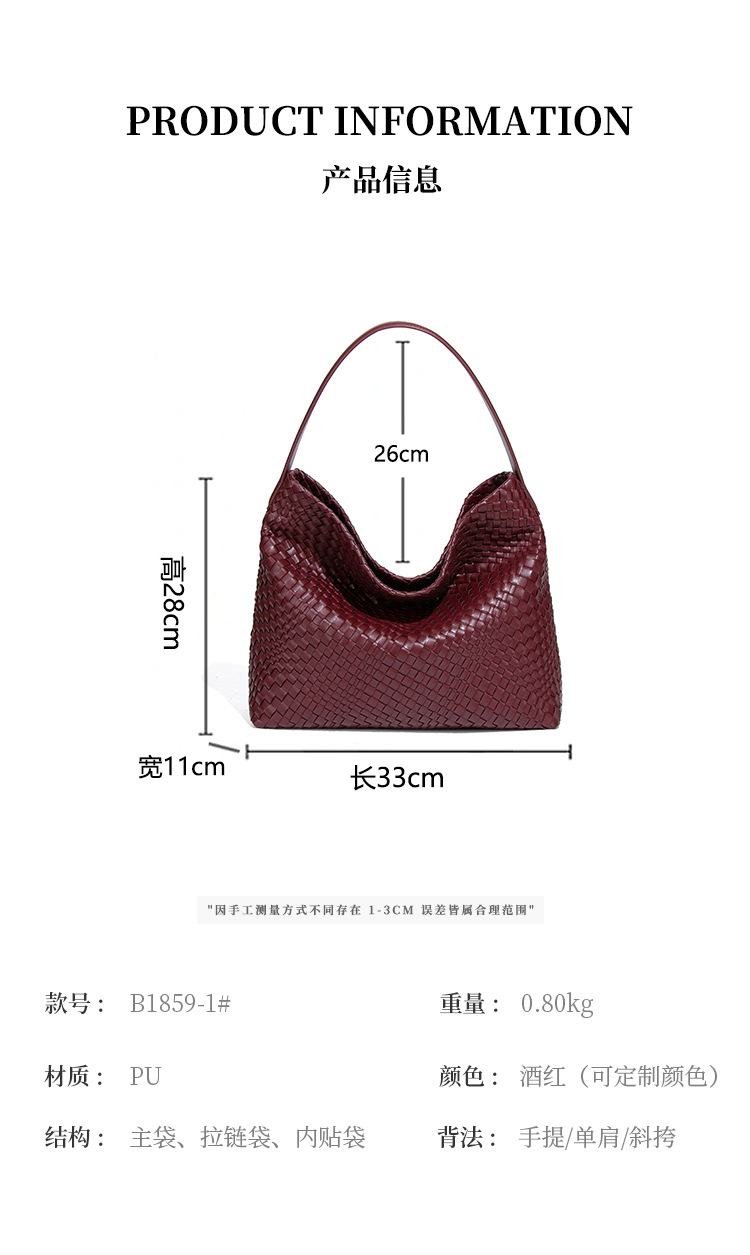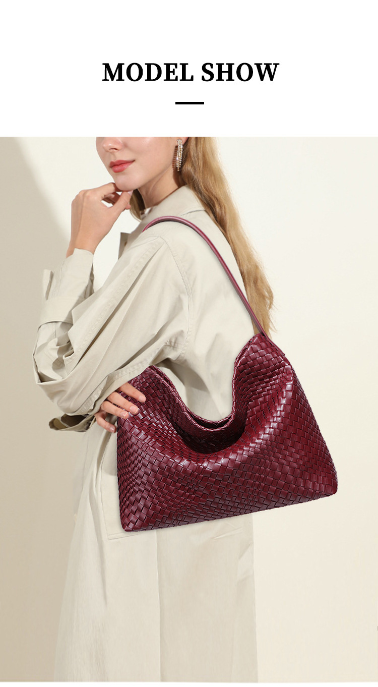 外贸定制手工编织包包大容量单肩腋下女包纯色百搭斜跨手提托特包