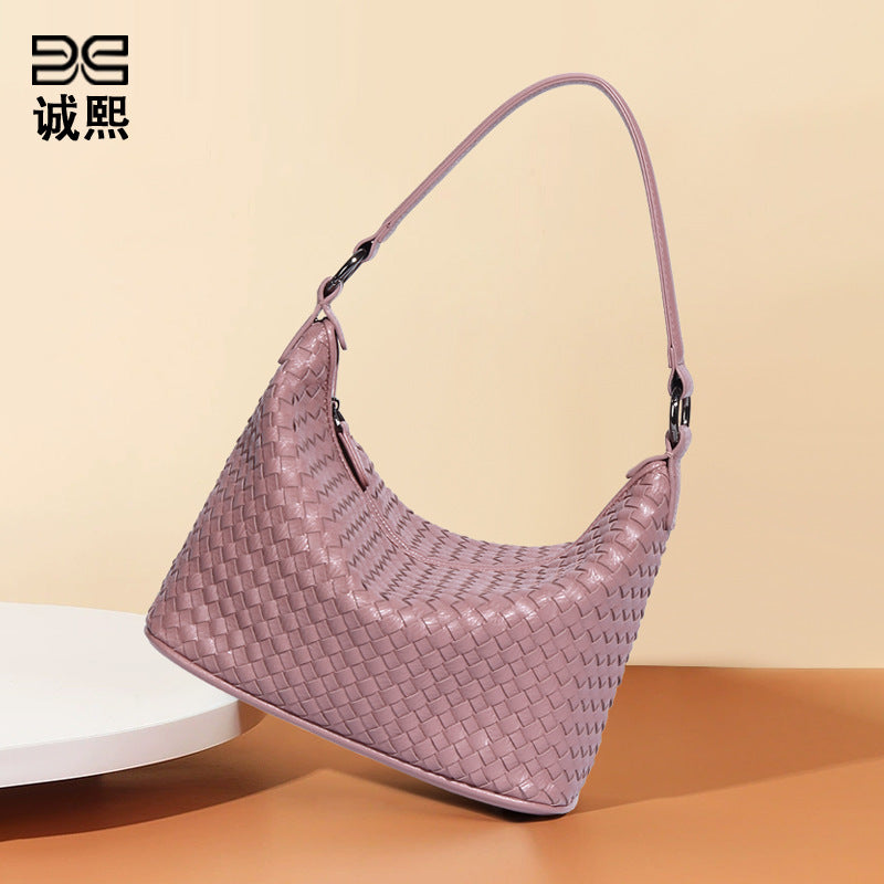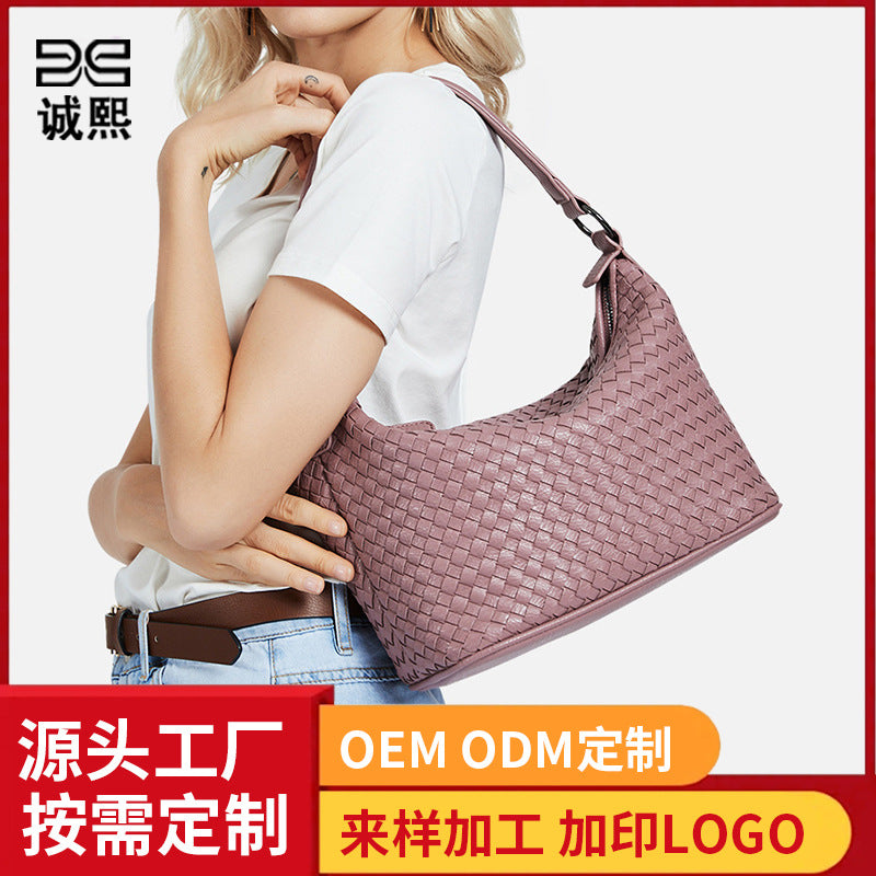 外贸手工编织斜挎包定制质感软皮女包休闲单肩腋下包大容量潮包包