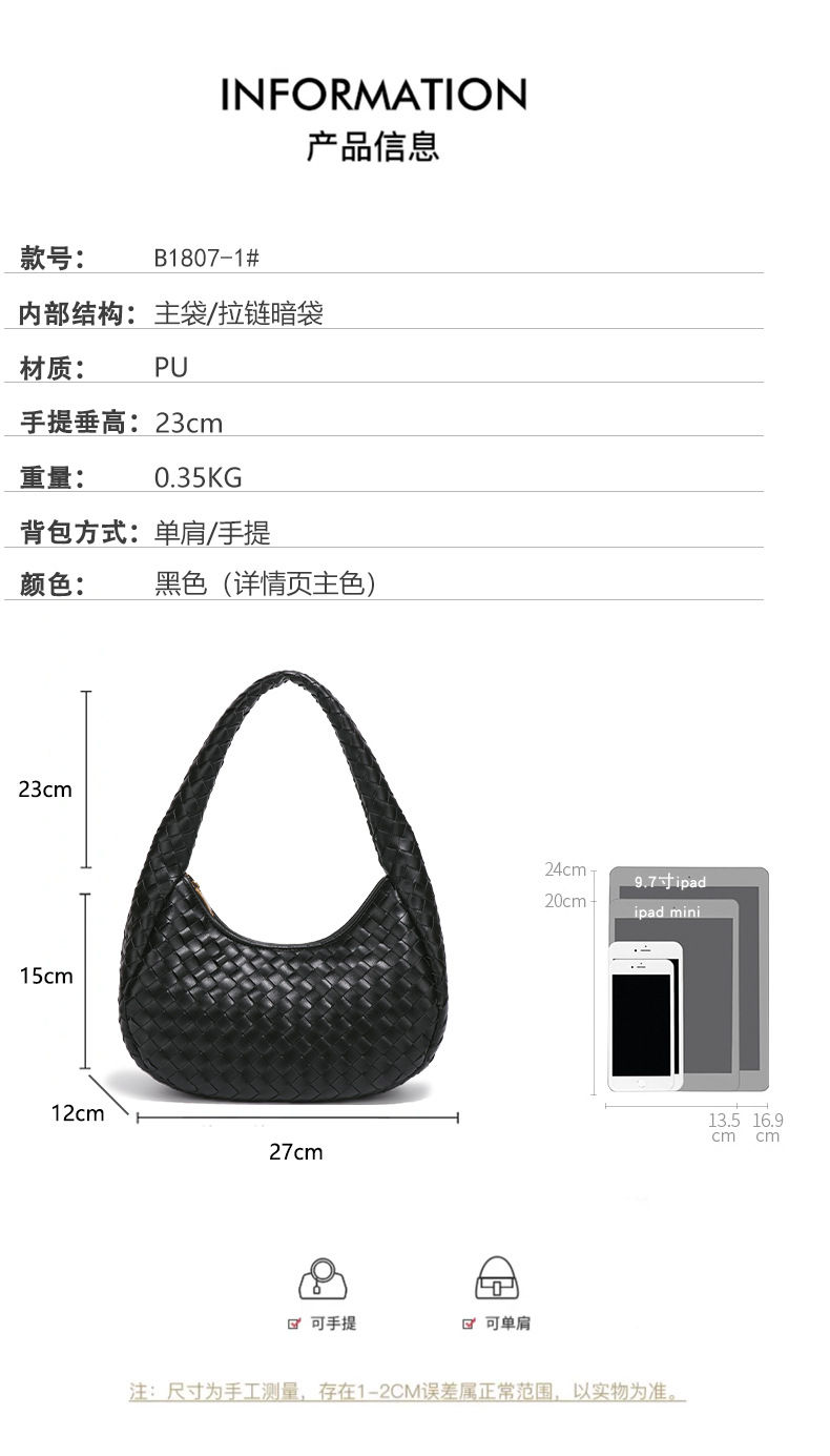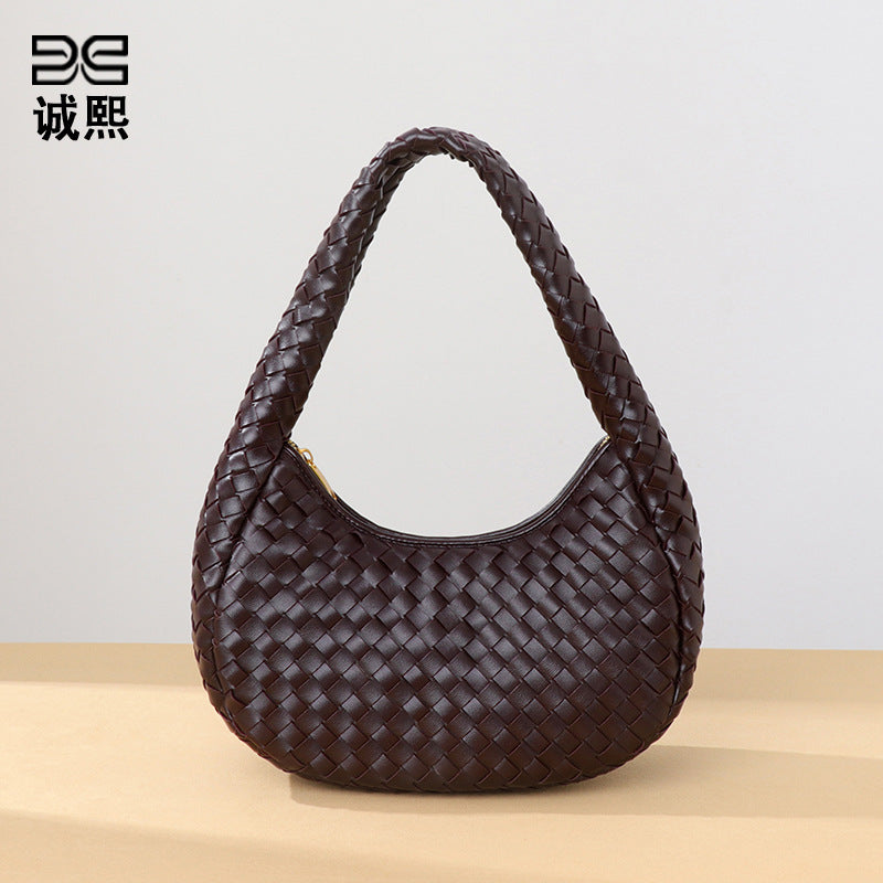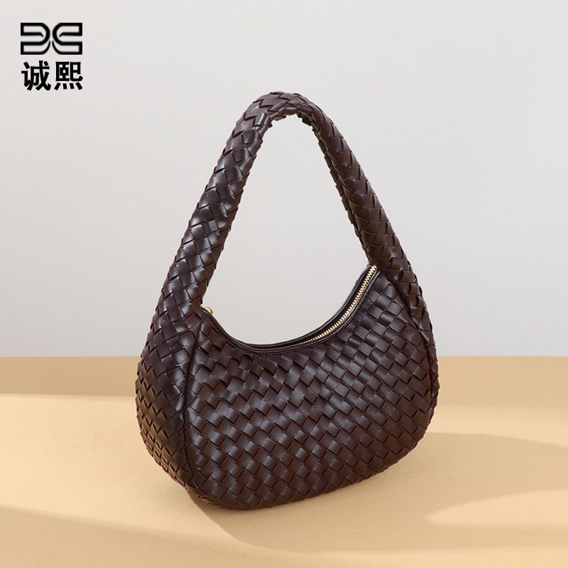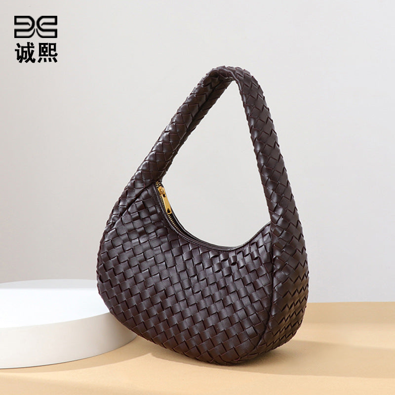外贸批发小众时尚编织饺子包单肩简约百搭手拎女包质感休闲腋下包