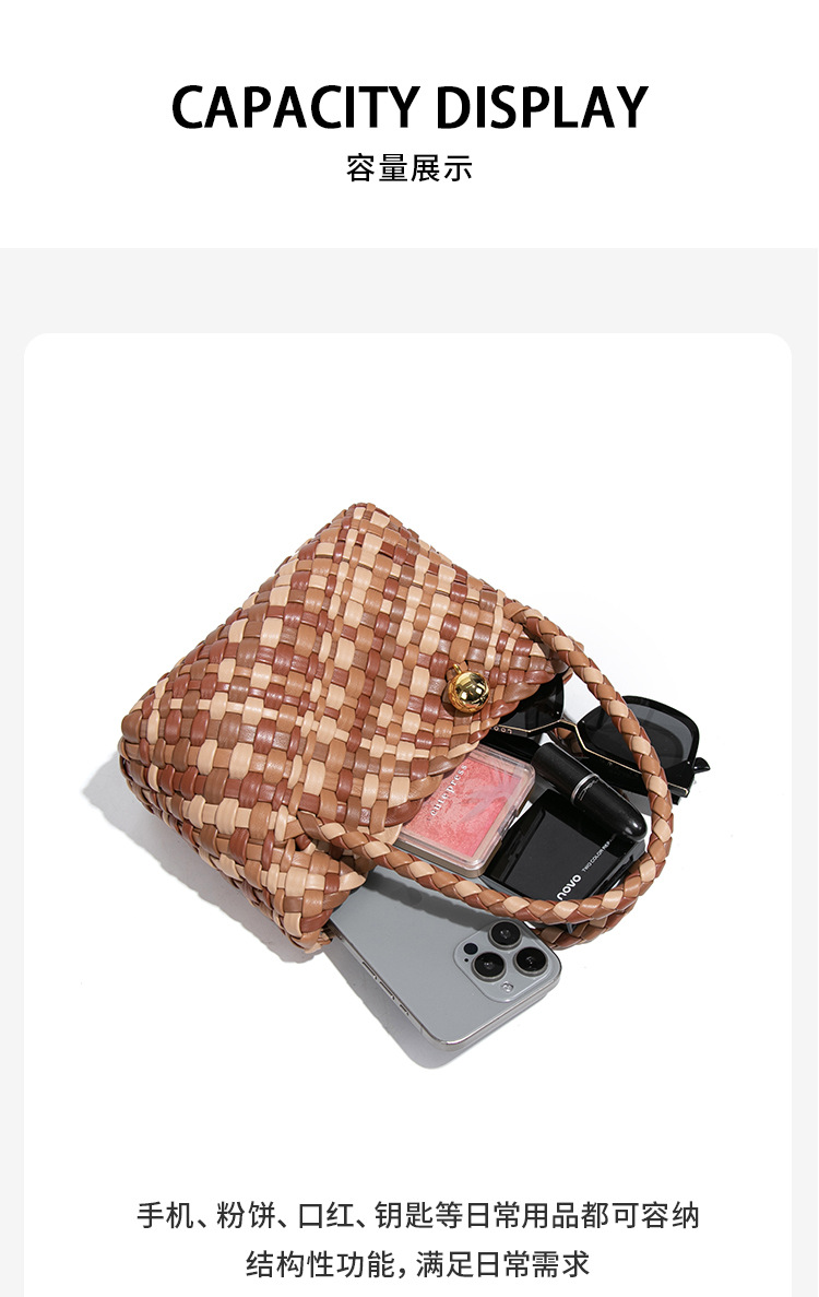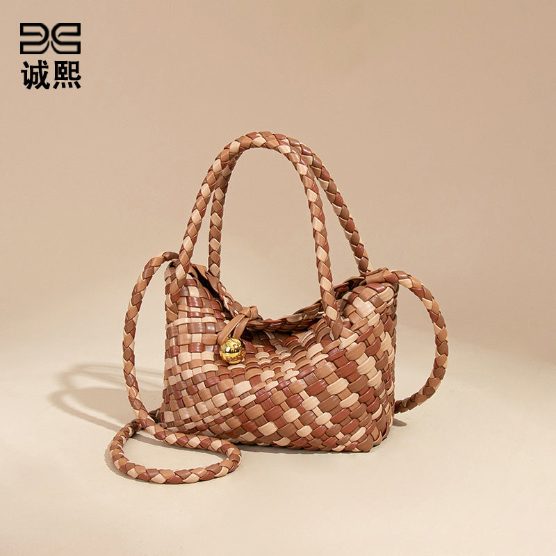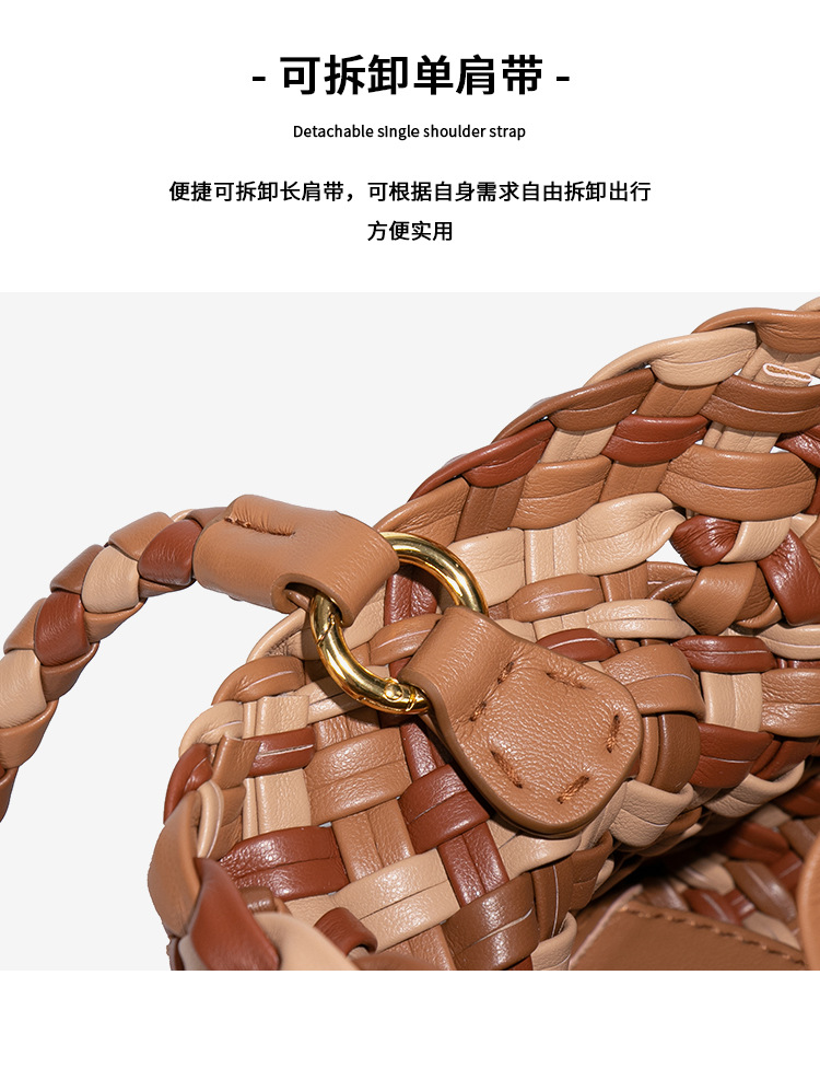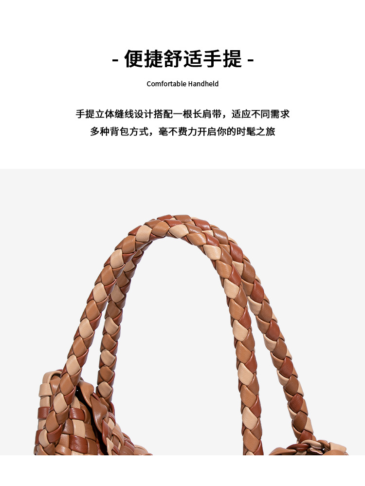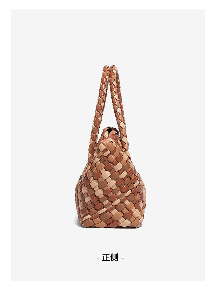 外贸新款彩色手工编织包小众菜篮手提女包休闲百搭子母单肩斜跨包