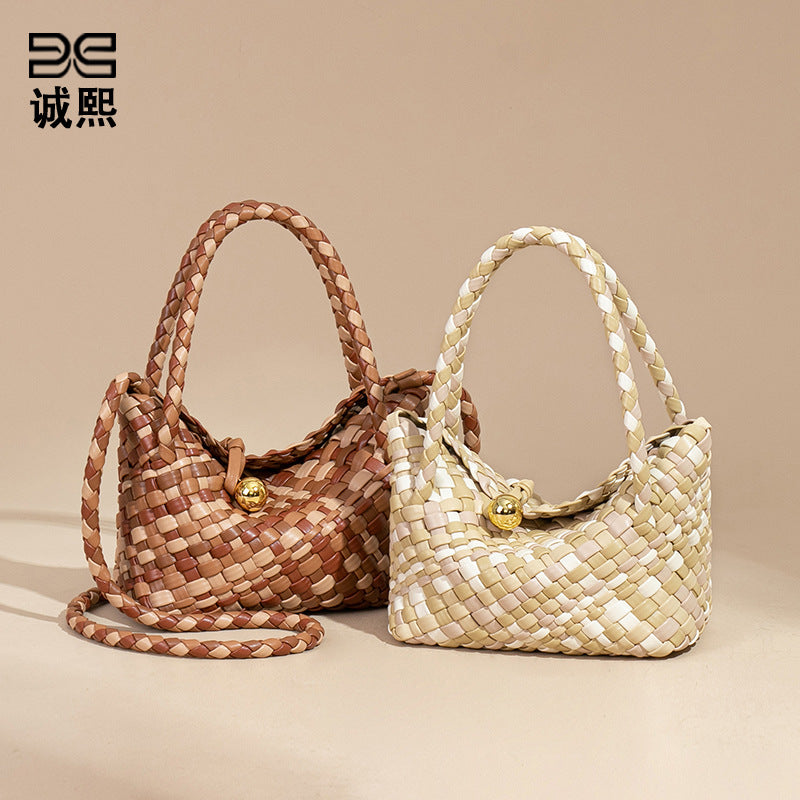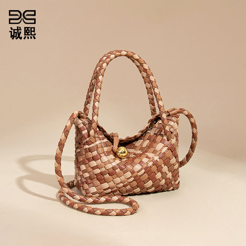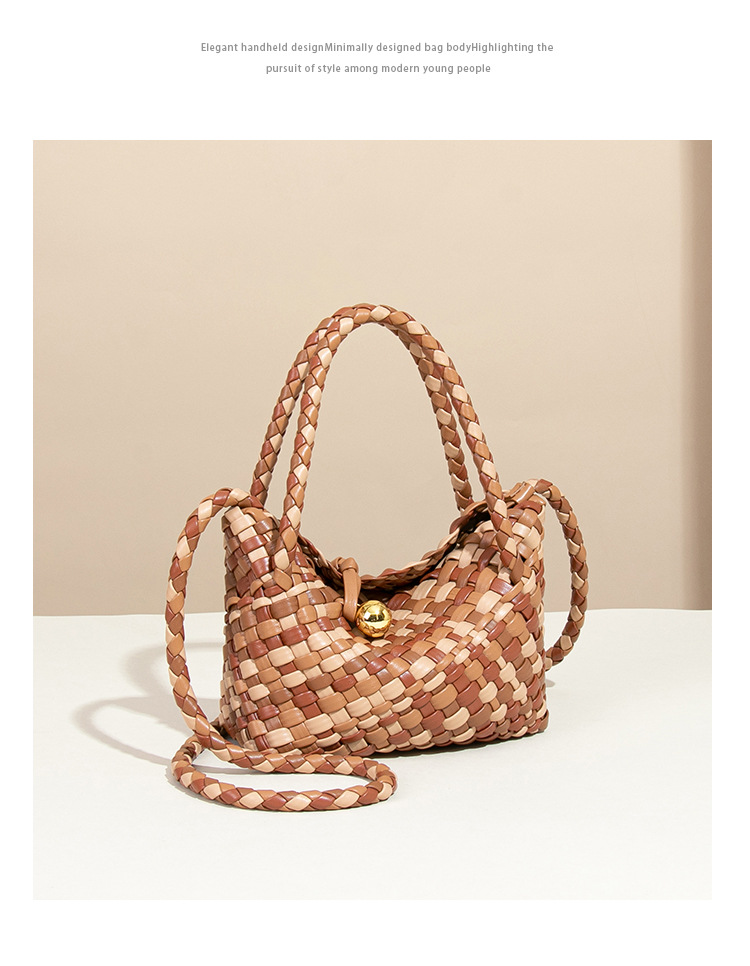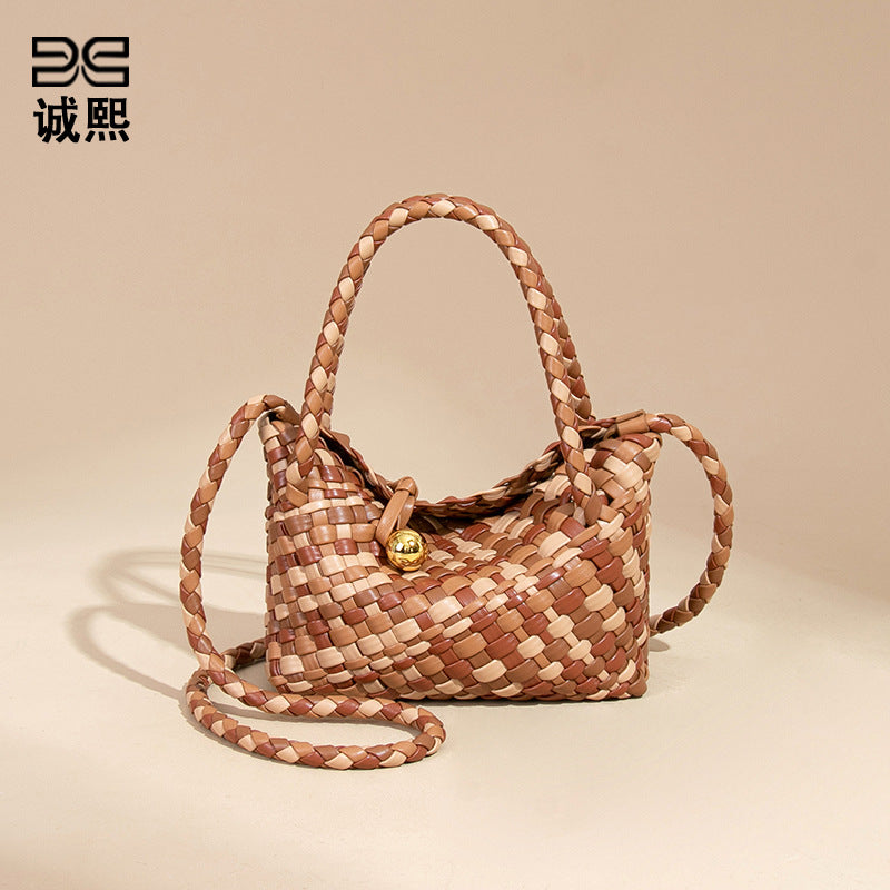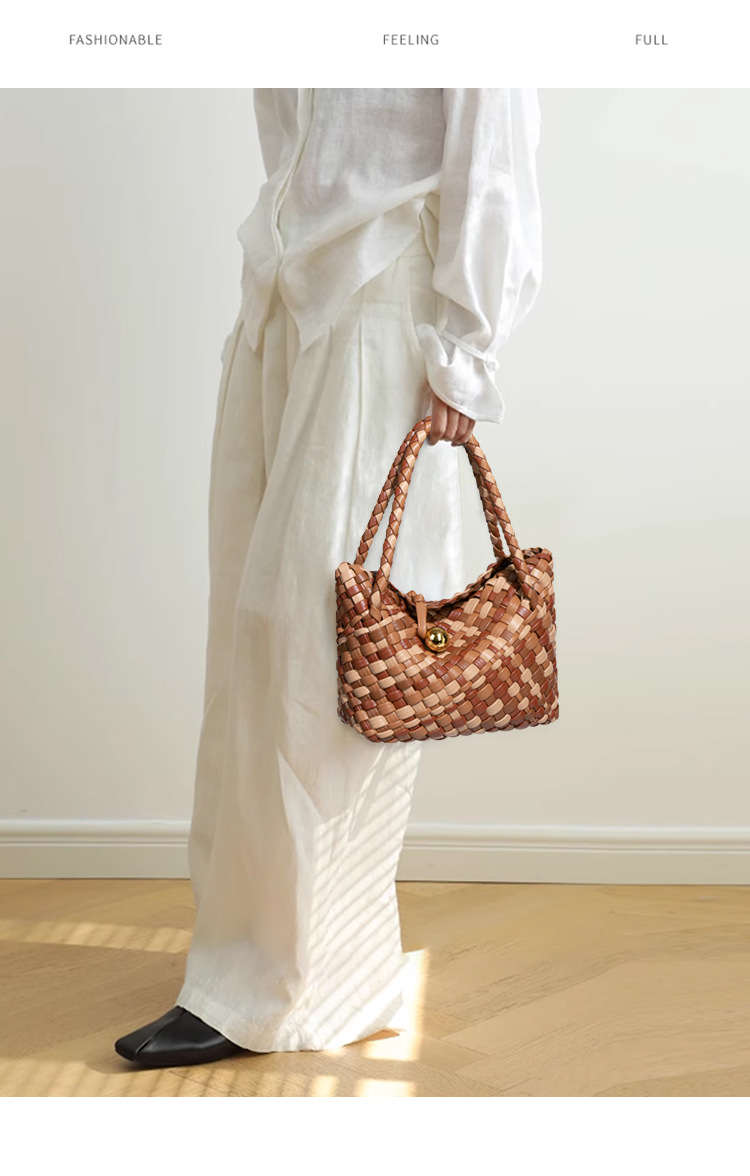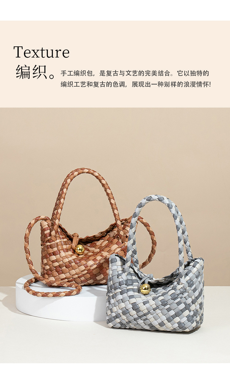 外贸新款彩色手工编织包小众菜篮手提女包休闲百搭子母单肩斜跨包