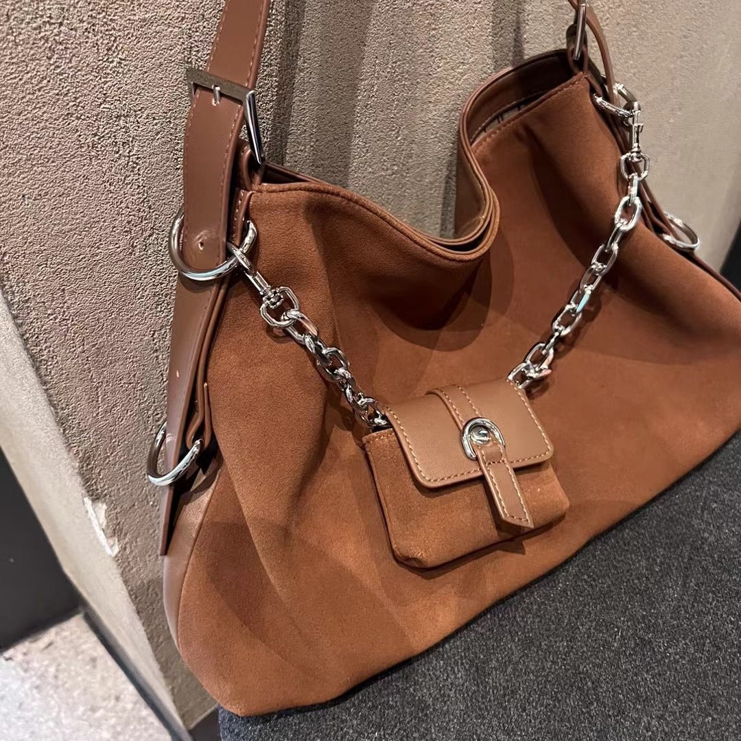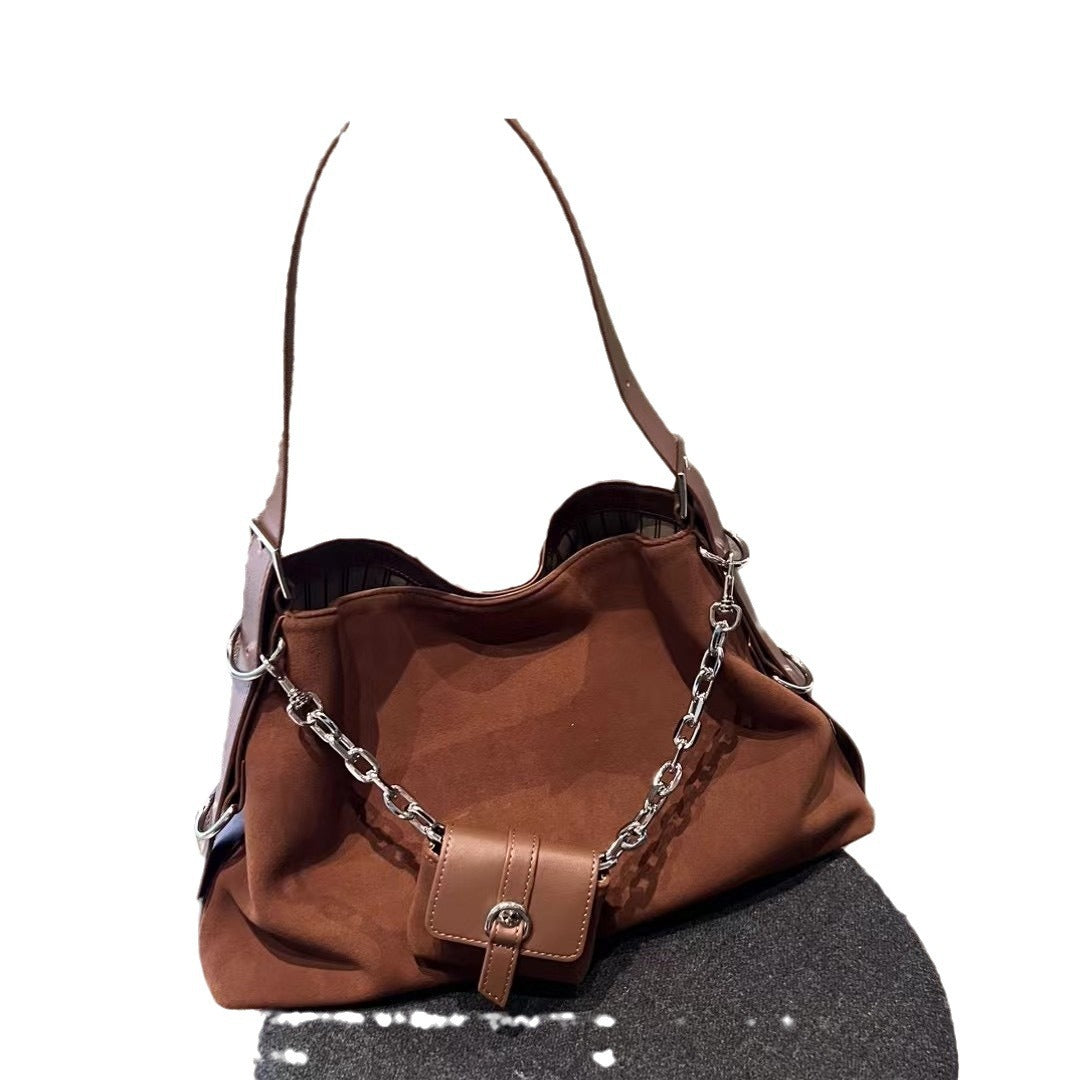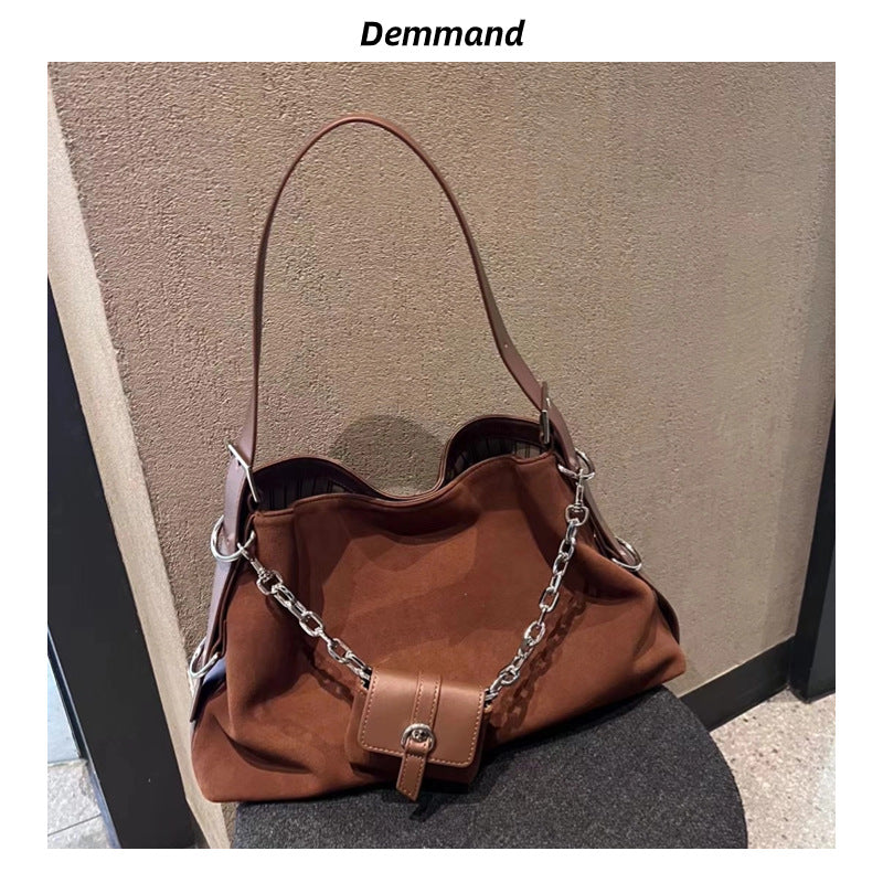 大容量包包女秋季百搭2023新款时尚单肩斜挎包复古磨砂通勤托特包