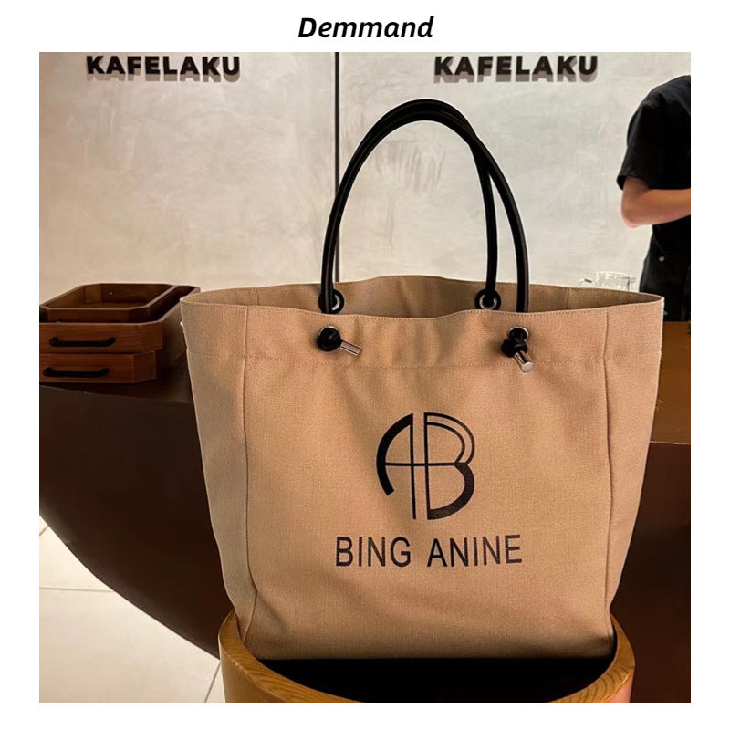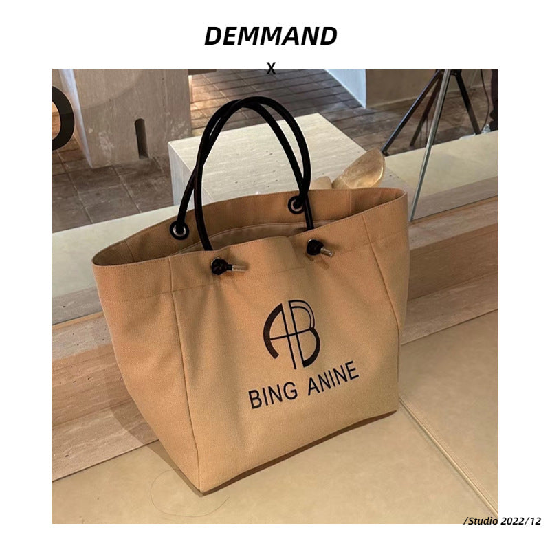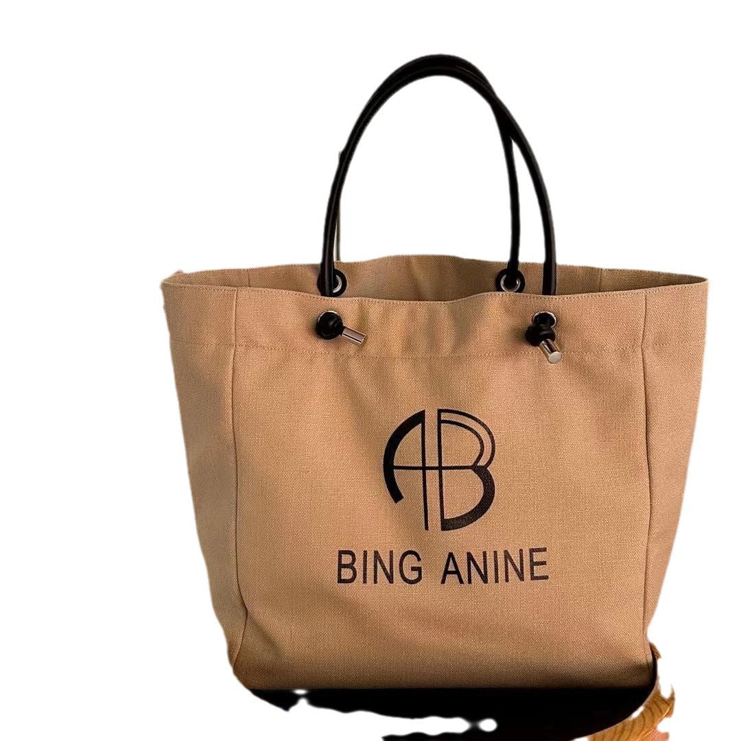 大容量托特包高品质子母印花棉麻帆布真皮手拎袋度假帆布袋文艺包