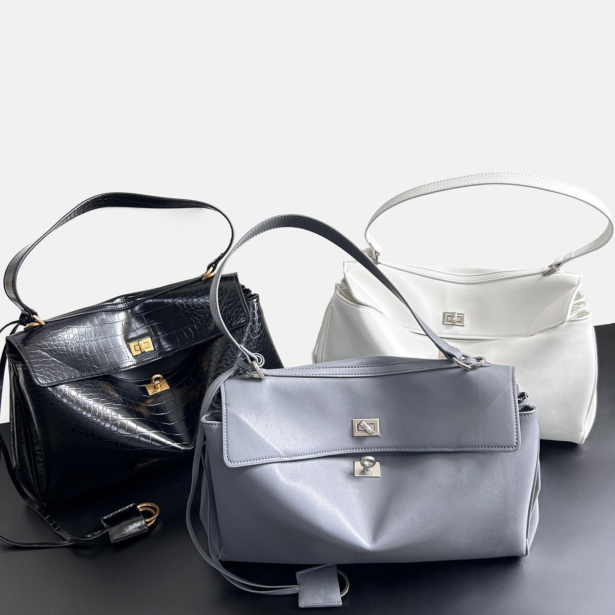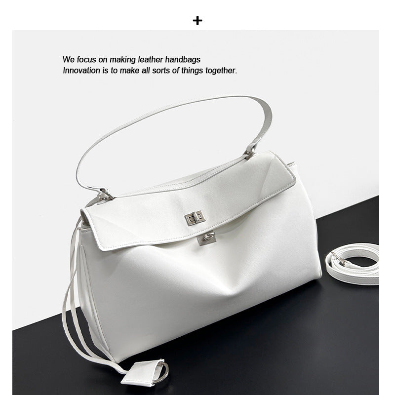 大气时尚锁扣牛皮女包2024新款链条轻便质感洋气真皮软皮斜挎包包