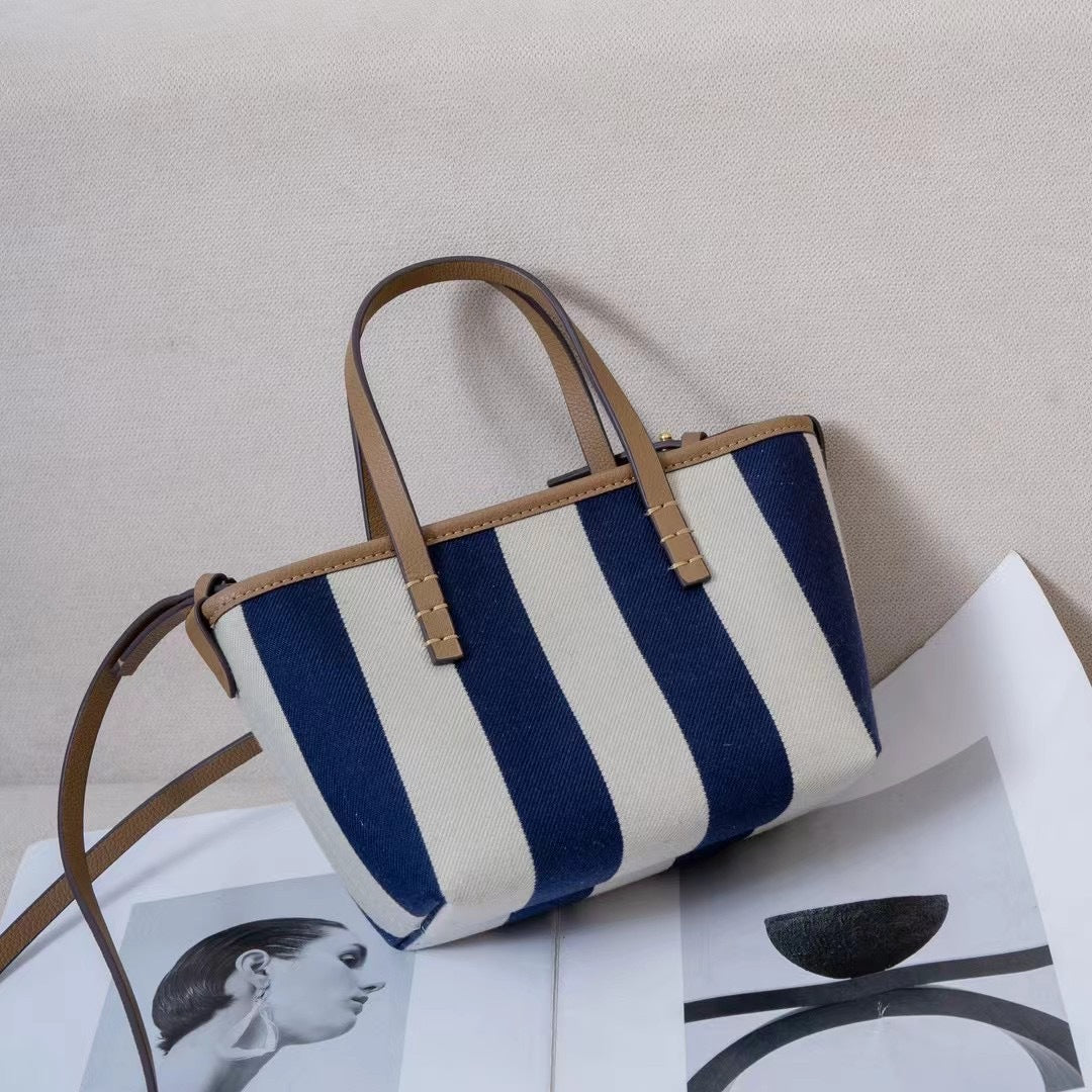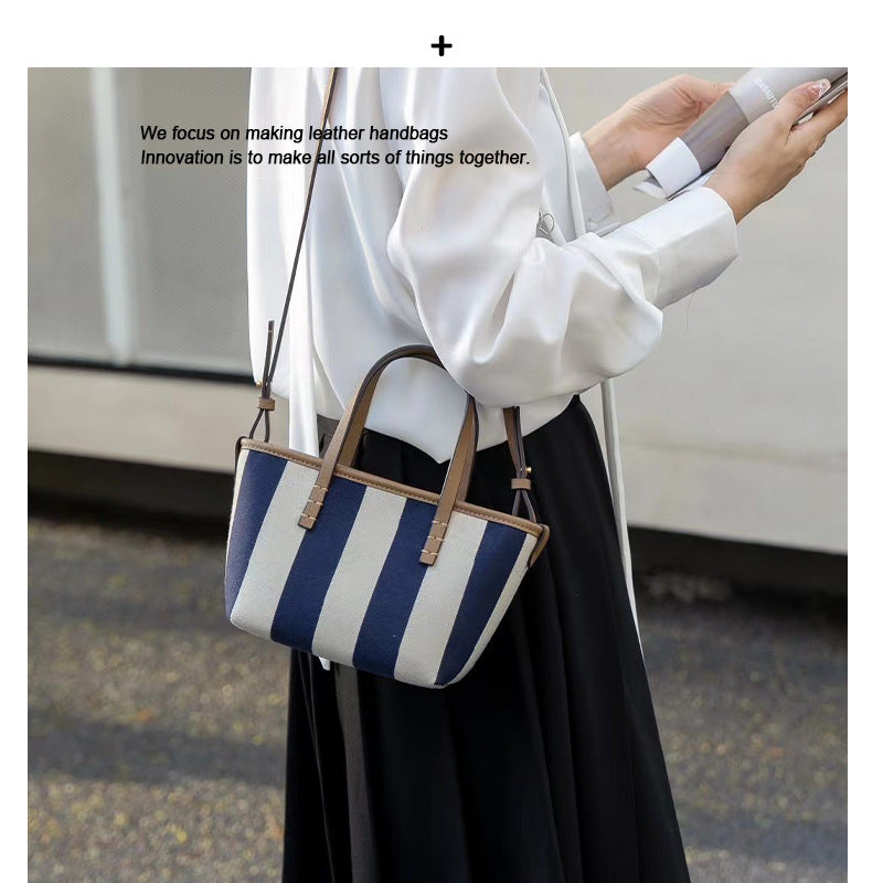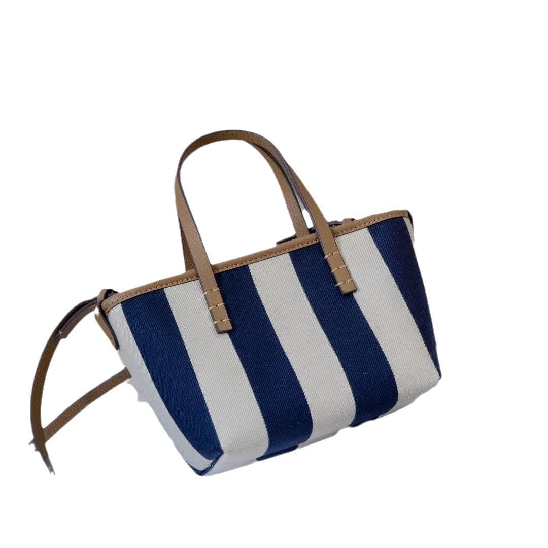大牌包包女2024新款百搭大容量托特包条纹帆布通勤单肩手提购物袋