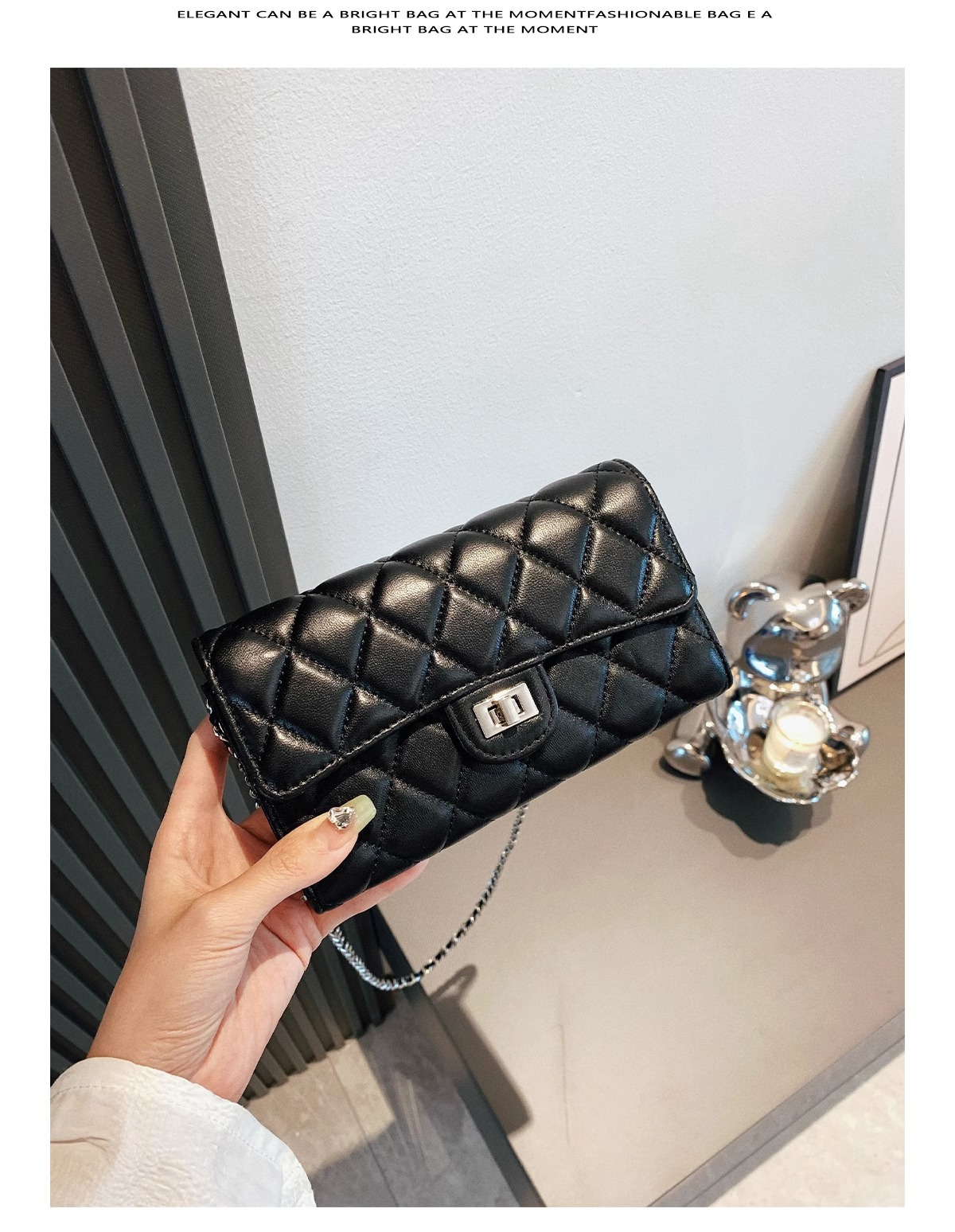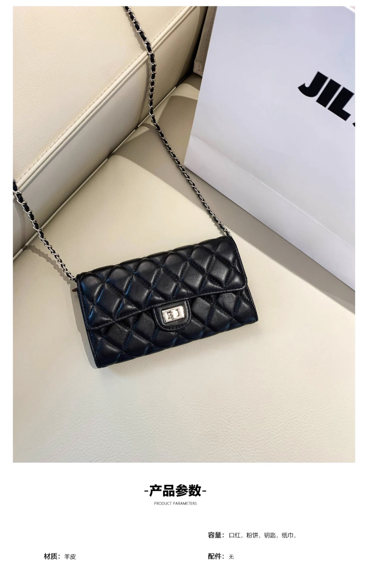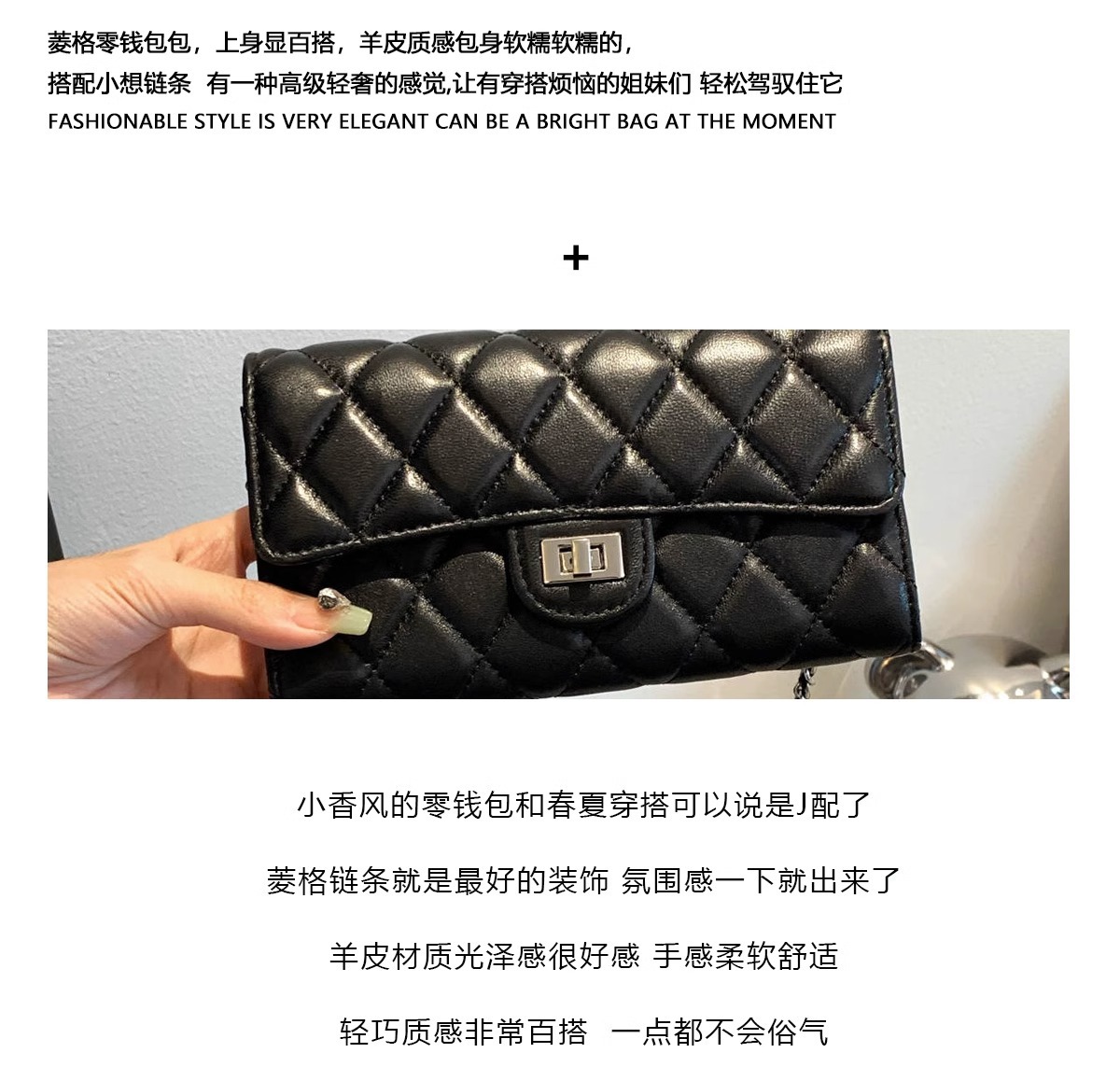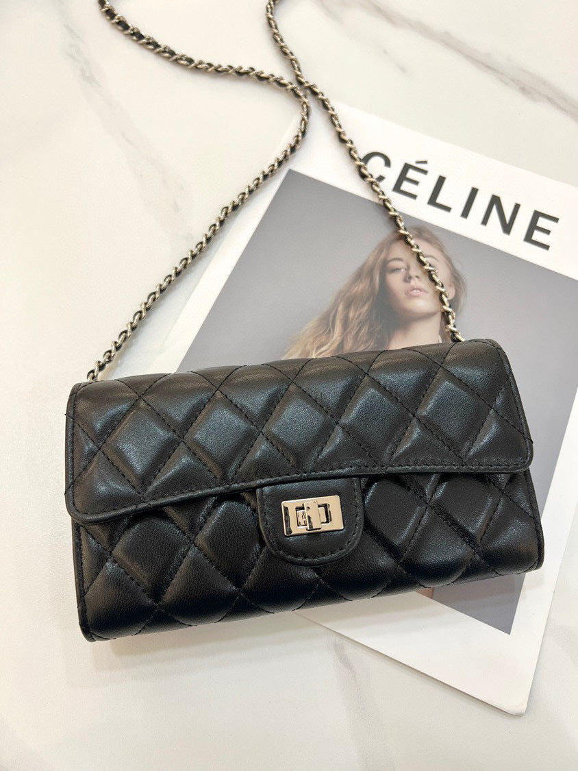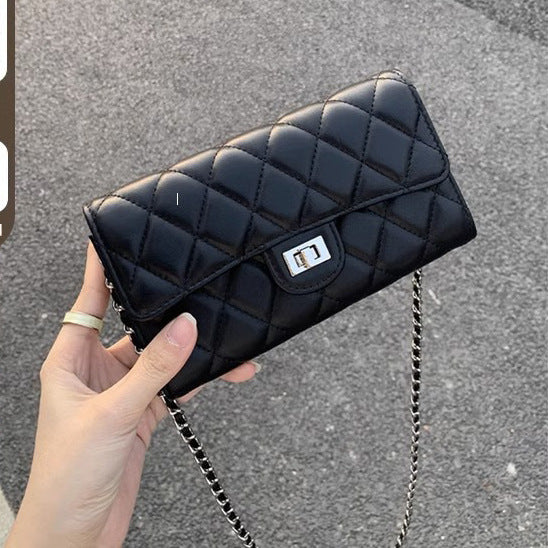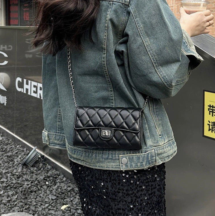 大牌品牌 小香风零钱包迷你小方包黑色手机包单肩斜挎菱格链条包
