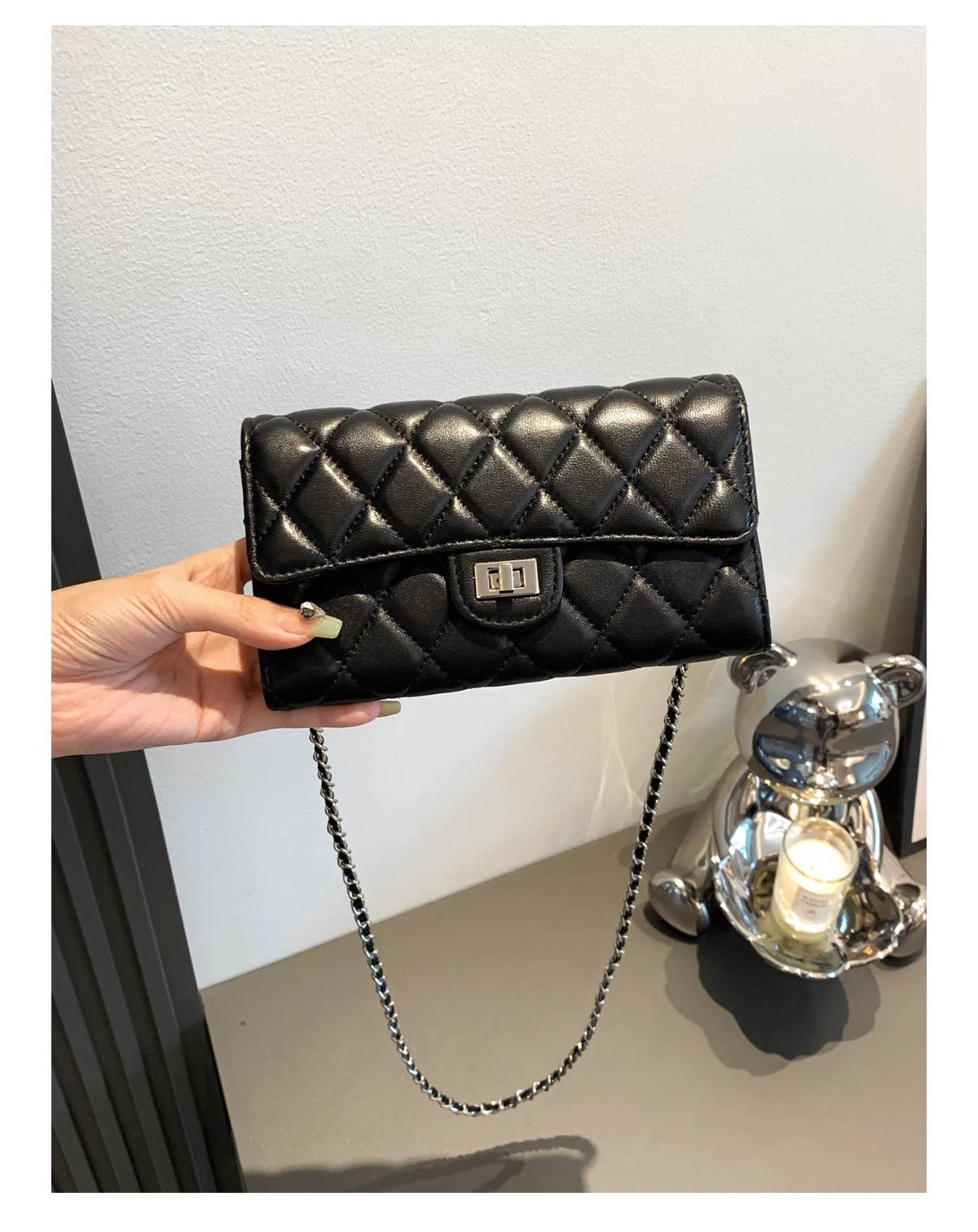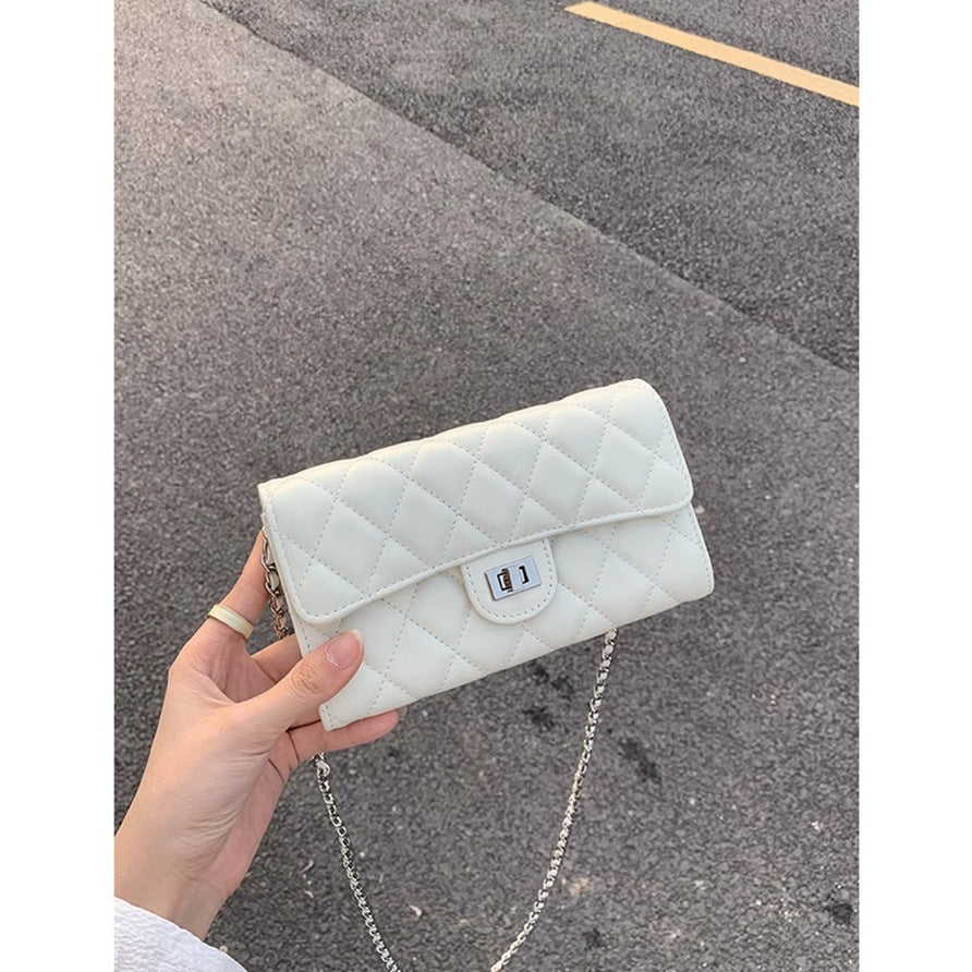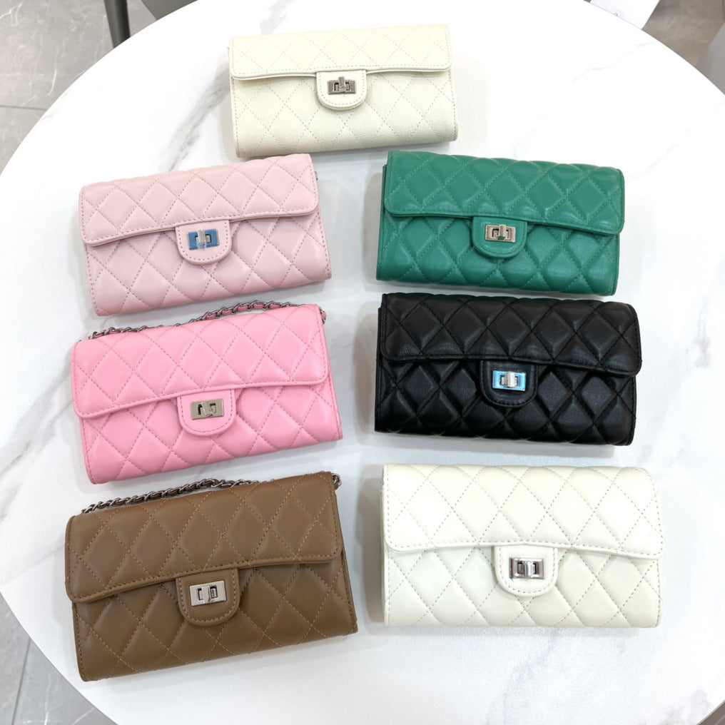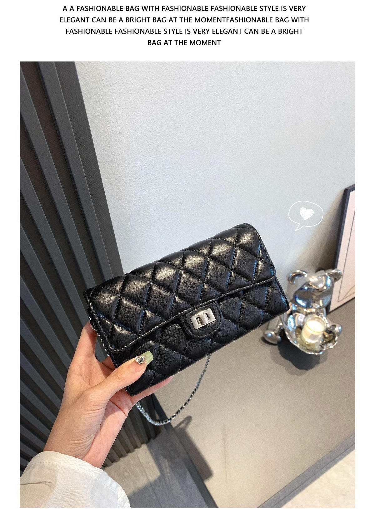 大牌品牌 小香风零钱包迷你小方包黑色手机包单肩斜挎菱格链条包