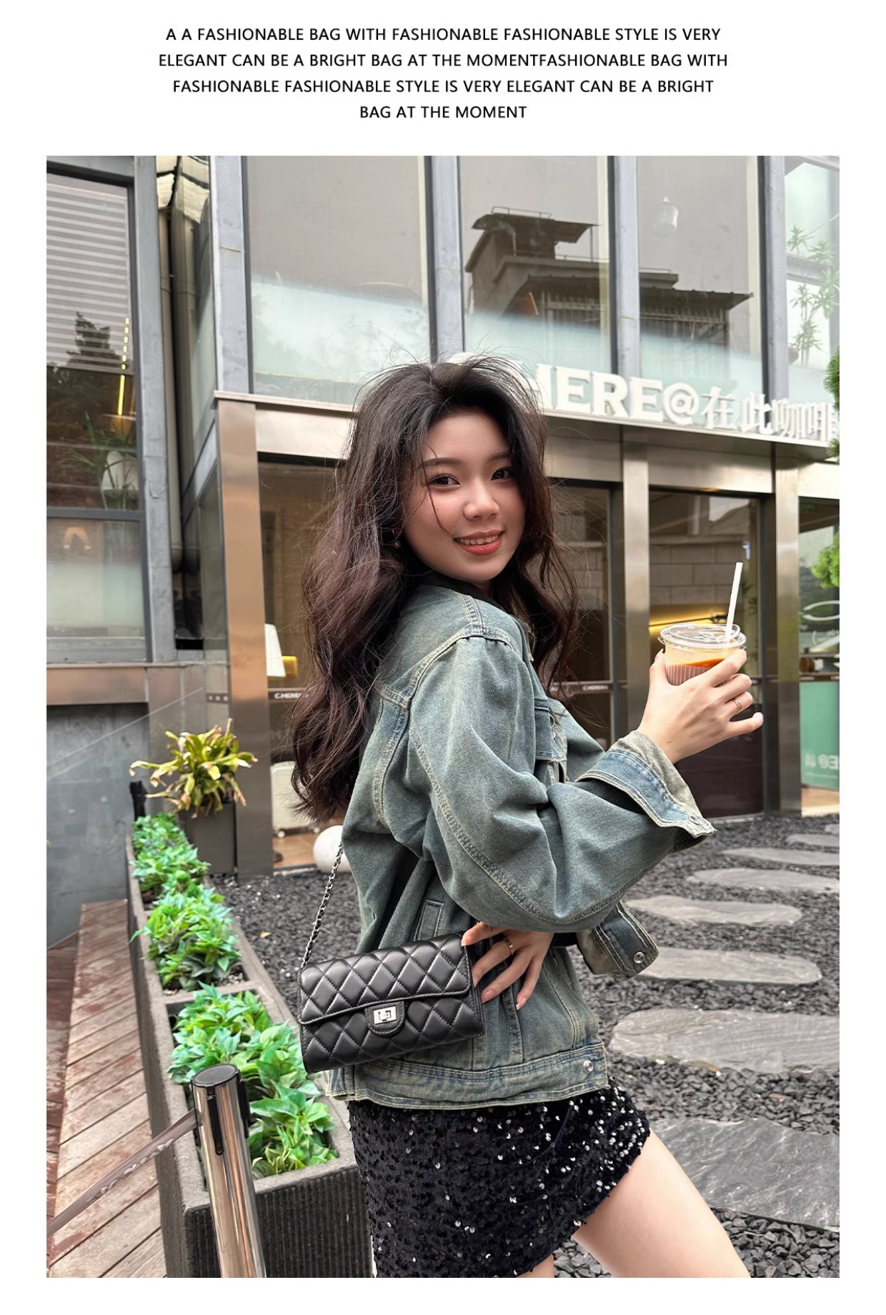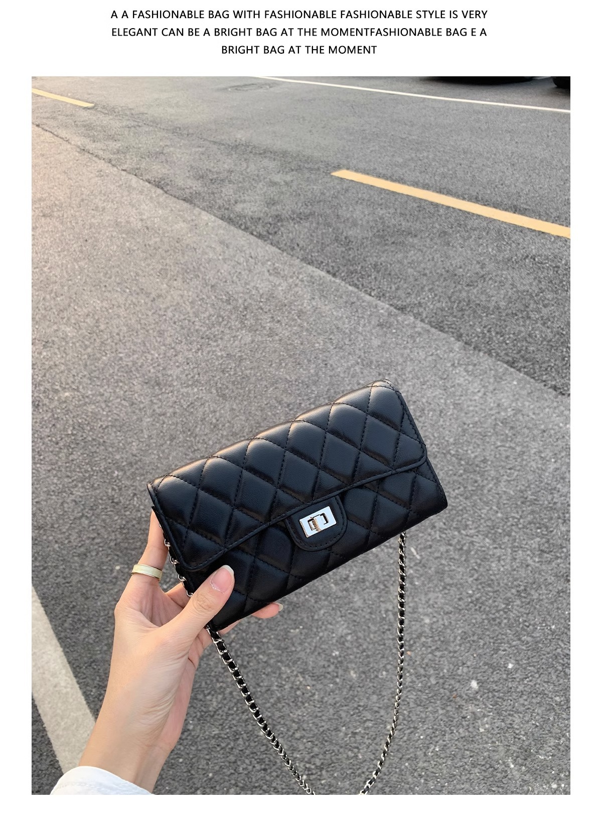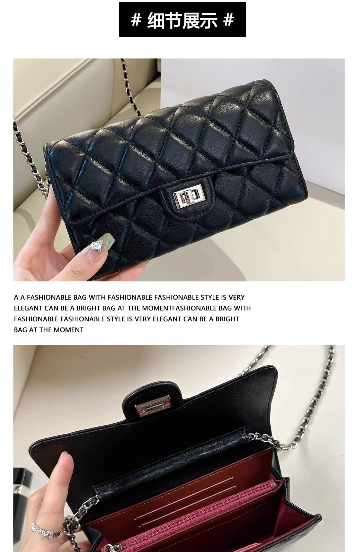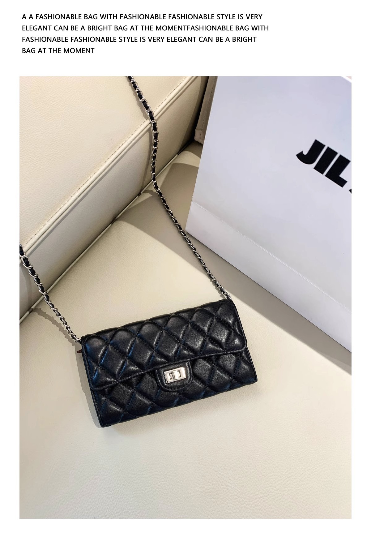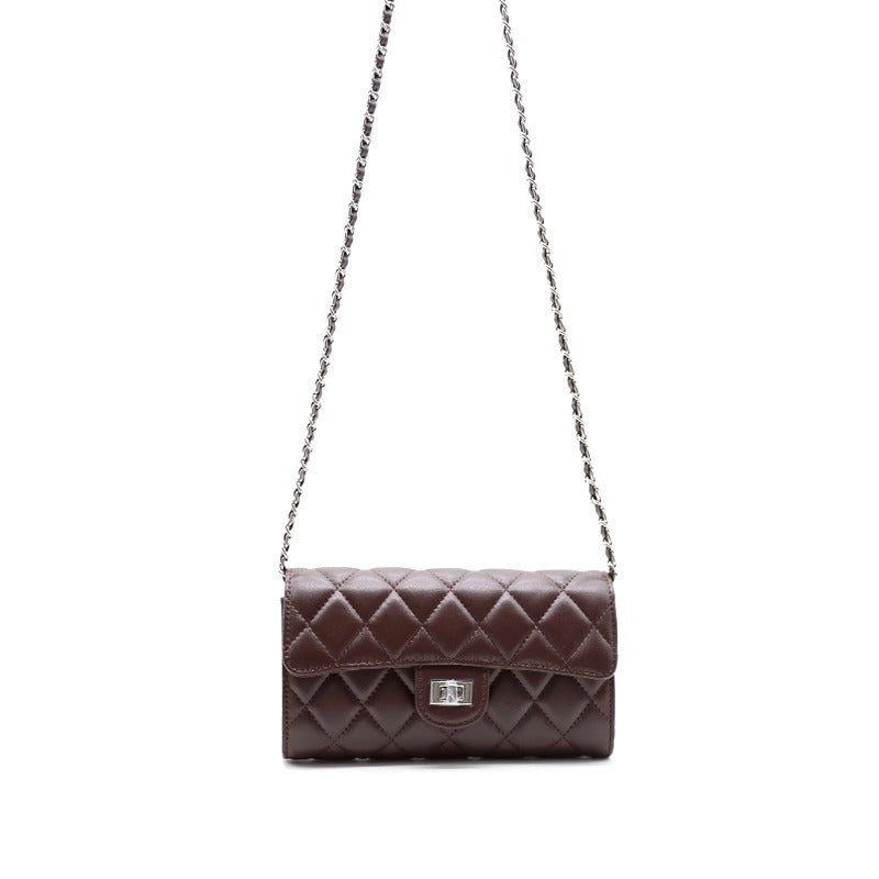 大牌品牌 小香风零钱包迷你小方包黑色手机包单肩斜挎菱格链条包